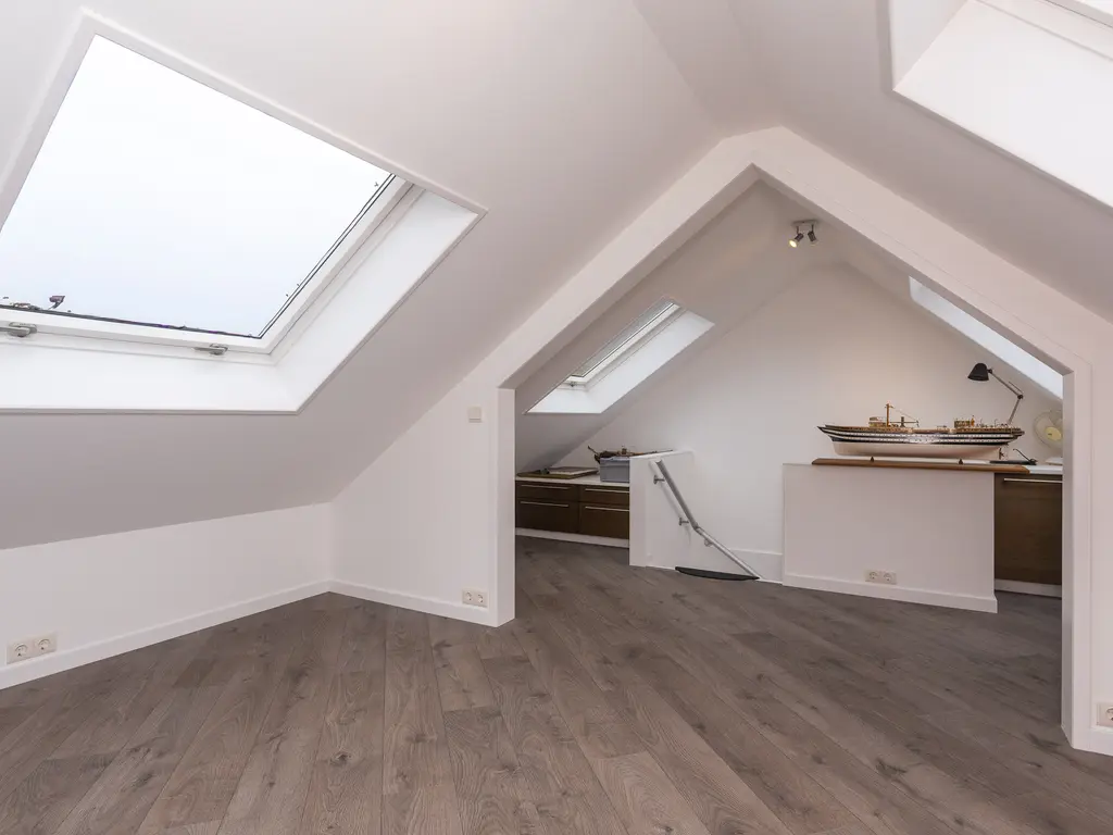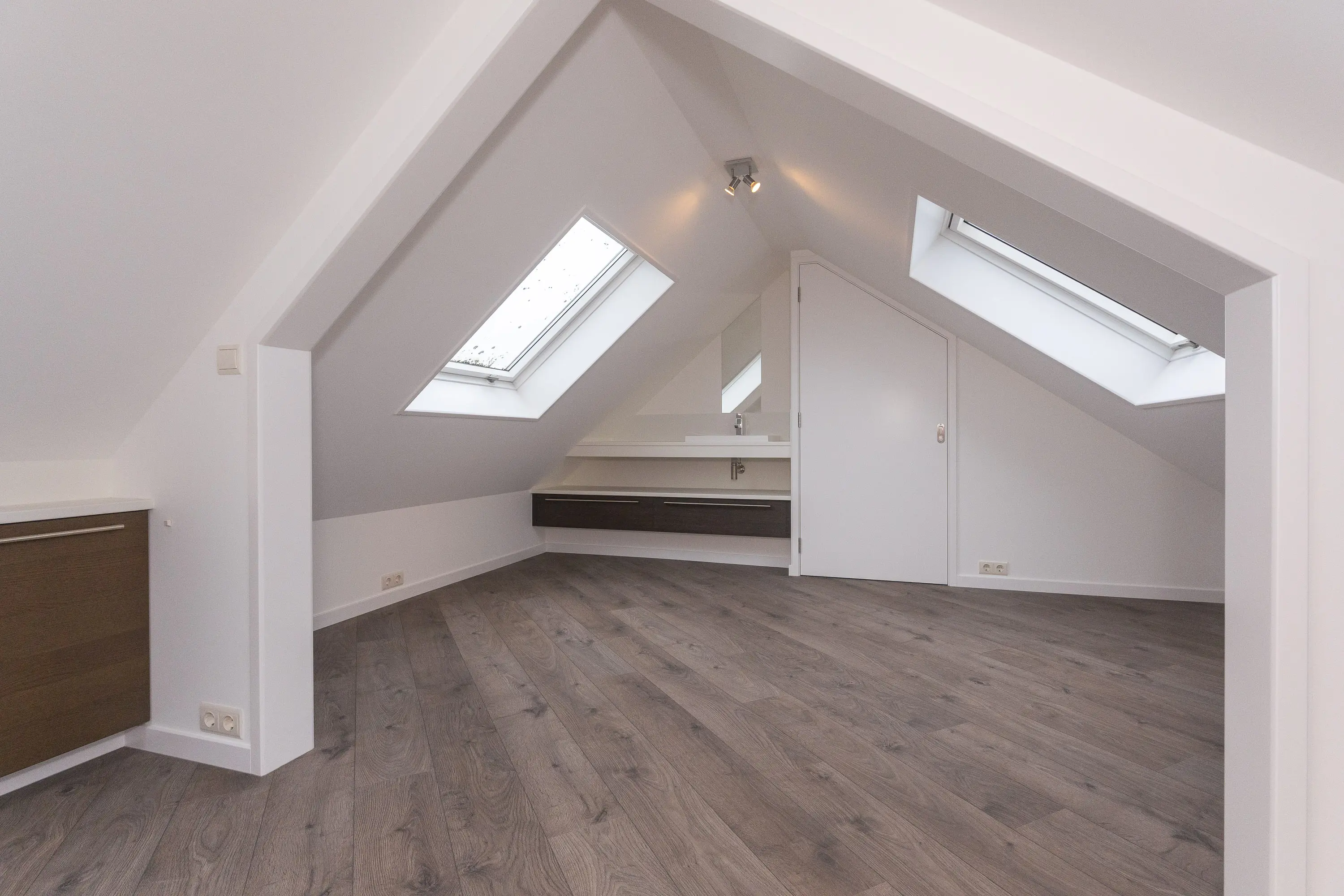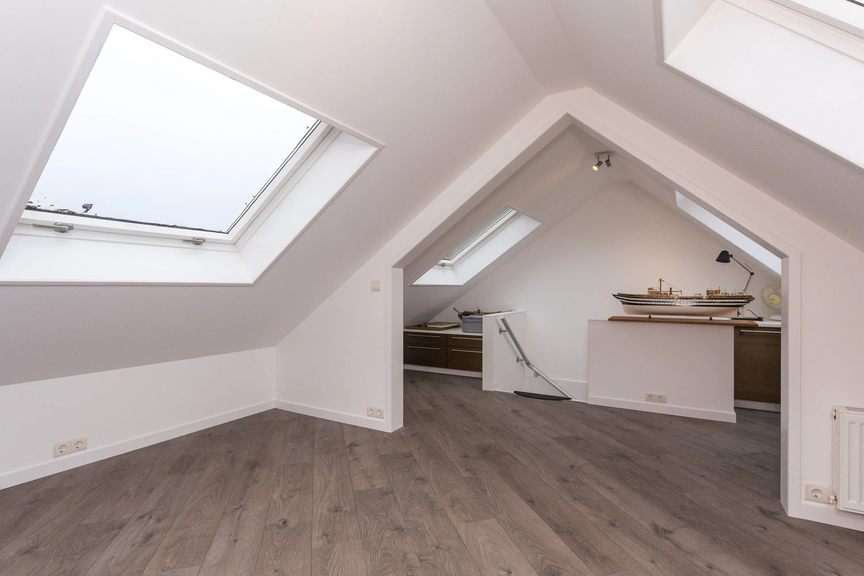Een vaste trap leidt naar de tweede etage, waar u een ruime en keurig afgewerkte verdieping aantreft met maar liefst vier grote dakramen en radiatoren. Het dak is geïsoleerd en de verdieping is voorzien van een eigen wastafel. De cv-installatie is netjes weggewerkt in een wandkast, waardoor de ruimte optimaal benut wordt. Deze verdieping biedt tal van mogelijkheden, zoals een extra slaapkamer, werkkamer of hobbyruimte.