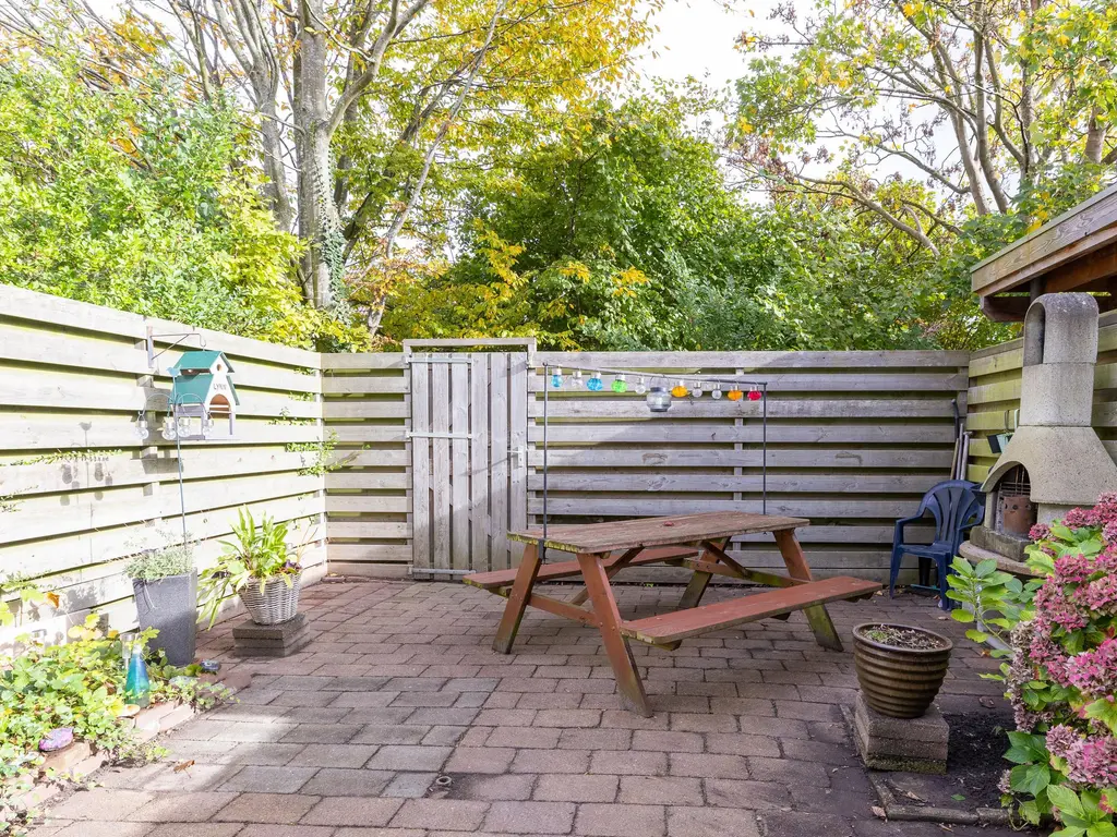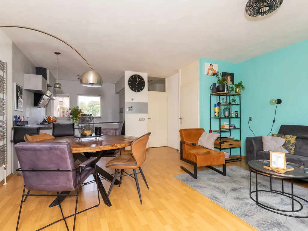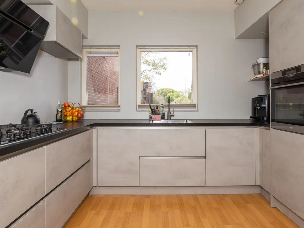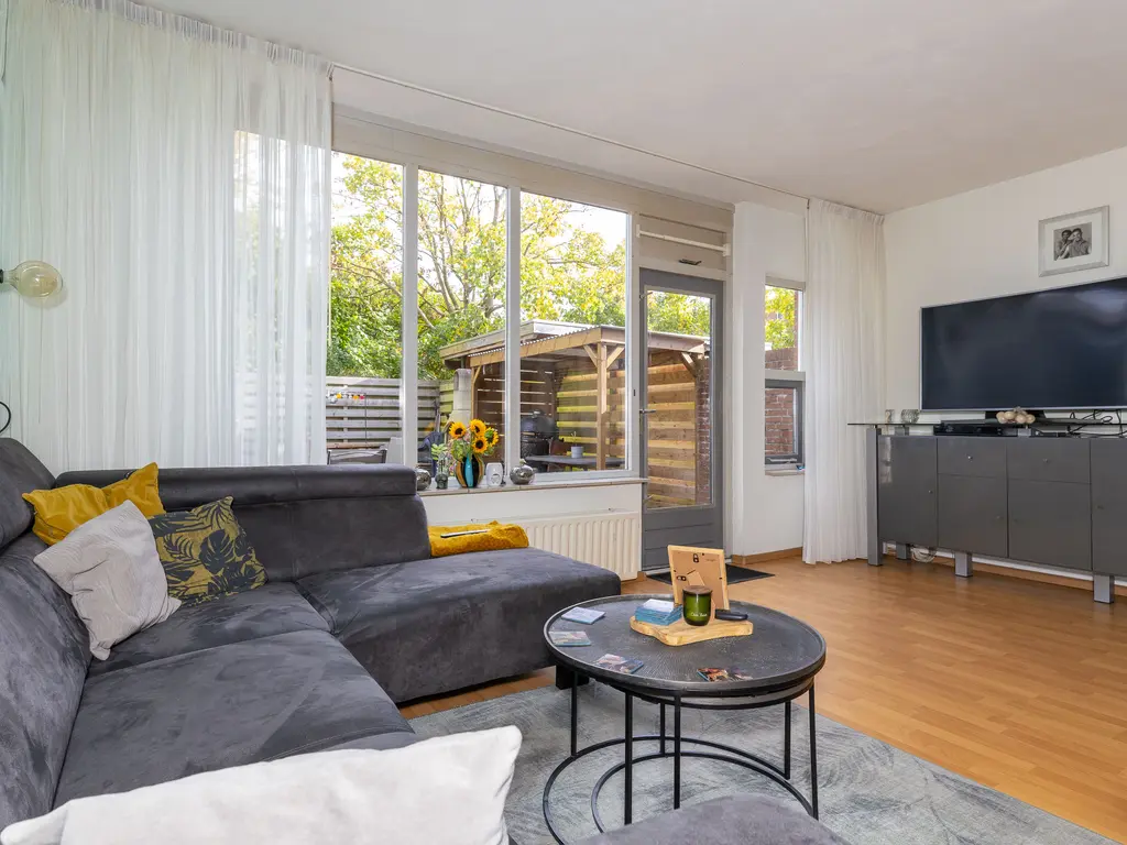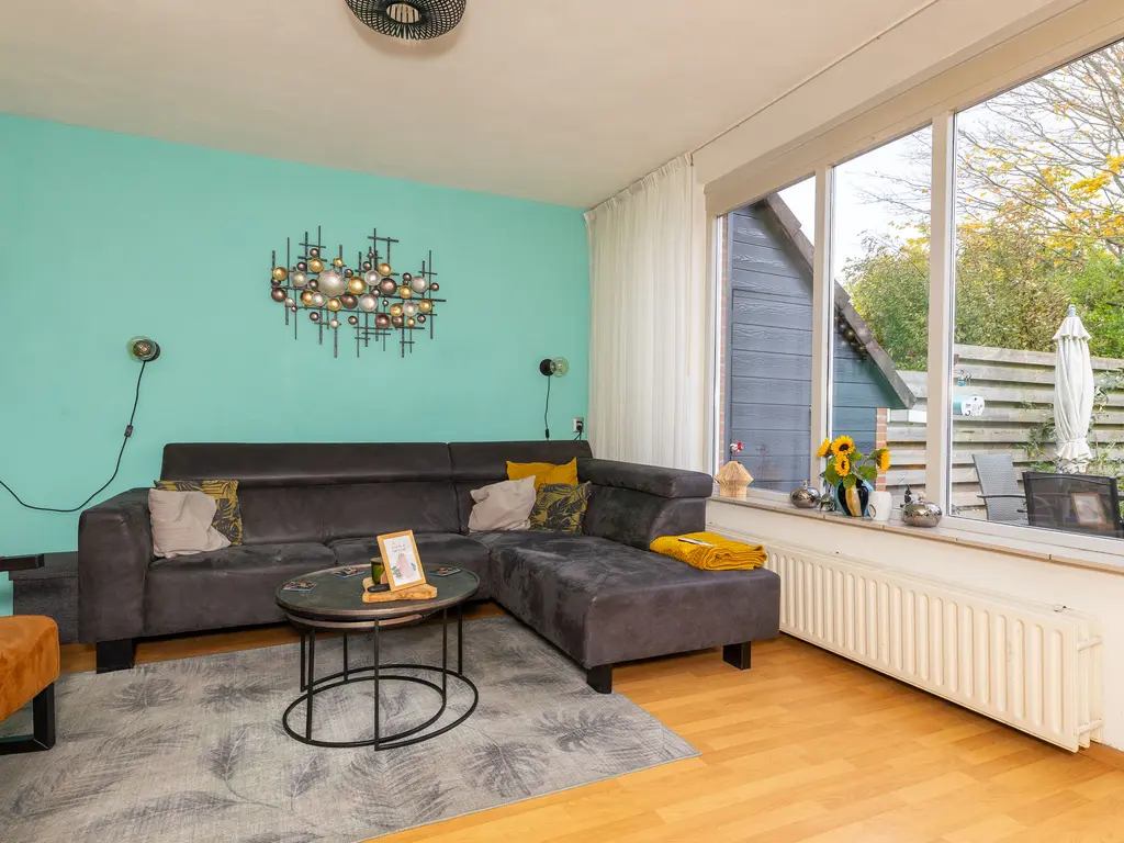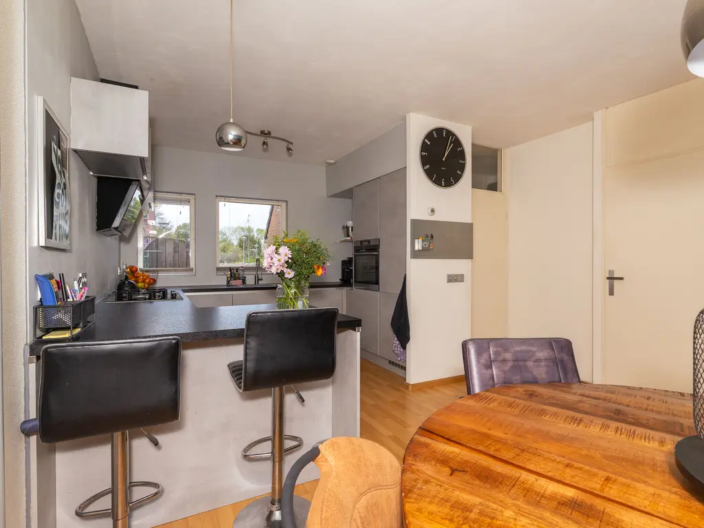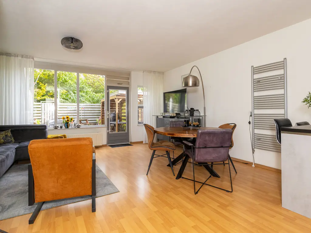 Indeling Begane grond: entree/hal met meterkast, toiletruimte en de vaste trap naar de eerste verdieping, ruime, tuingerichte woonkamer met grote raampartijen en de aangebouwde stenen berging. De open keuken in U-vormige opstelling bevindt zich aan de voorzijde van de woningen is voorzien van diverse inbouw apparatuur. Via de achterdeur of de poort aan de achterkant van de woning is de grote en onderhoudsvriendelijke tuin te bereiken.