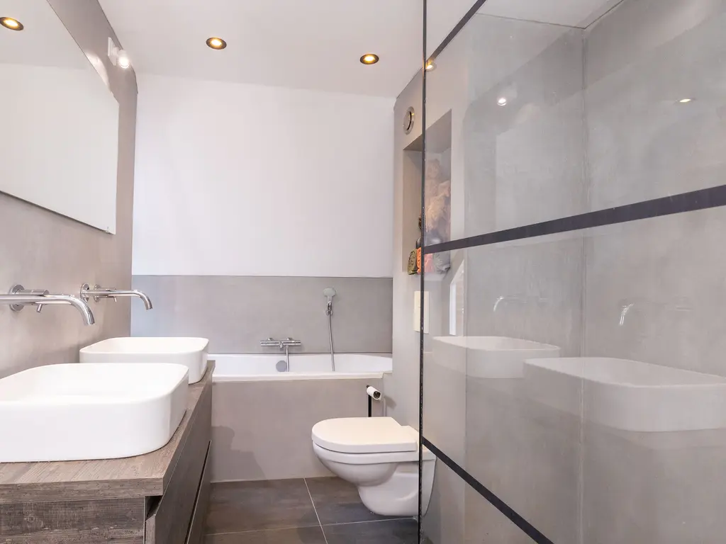 1e verdieping: via de overloop bereikt u een tweetal royale slaapkamers, en de prachtige badkamer welke veel mogelijkheden biedt. De badkamer is voorzien van toilet, dubbele wastafel met meubel, inloopdouche en ligbad, tevens beschikt de badkamer over vloerverwarming.