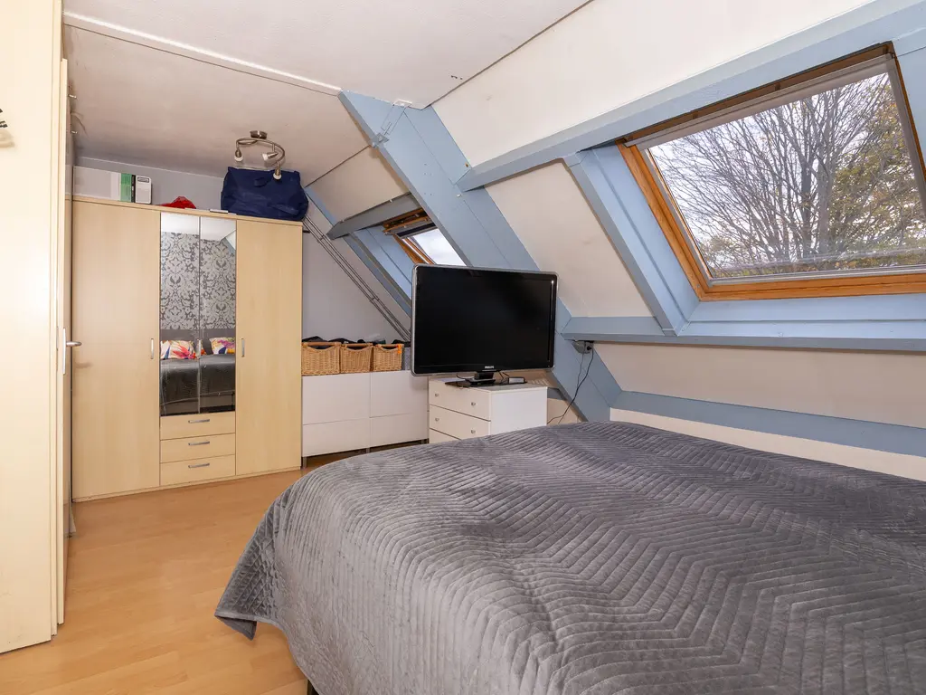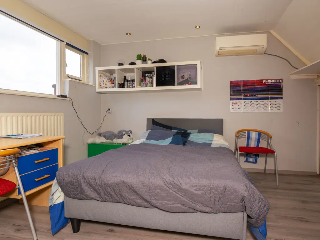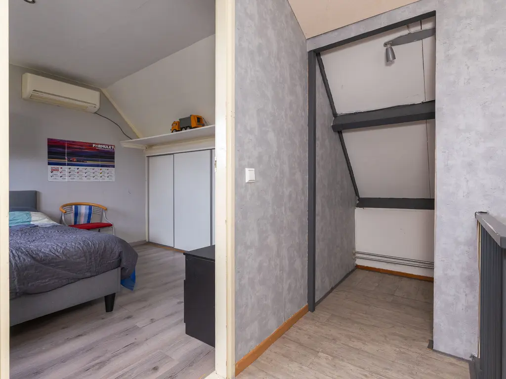 2e verdieping: via een vaste trap bereikbaar, deze is in tweeën opgedeeld, op de voorzolder treft u de CV installatie en de aansluitingen voor de wasmachine en droger. Op deze verdieping is een royale slaapkamer gerealiseerd met airconditioning.