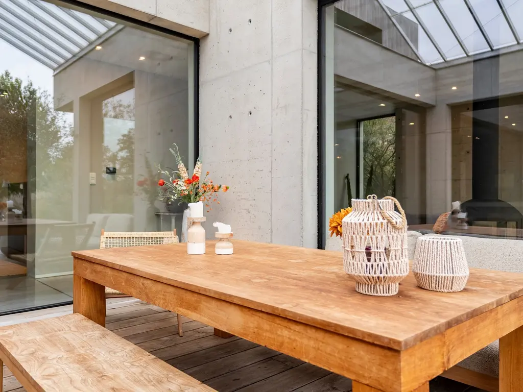 Pure materialen zoals zichtbeton, en hardhout staan centraal.