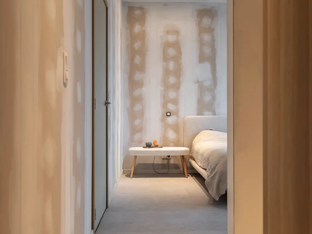 De hal leidt verder tot het privé-gedeelte (woonkamer, keuken, etc.).