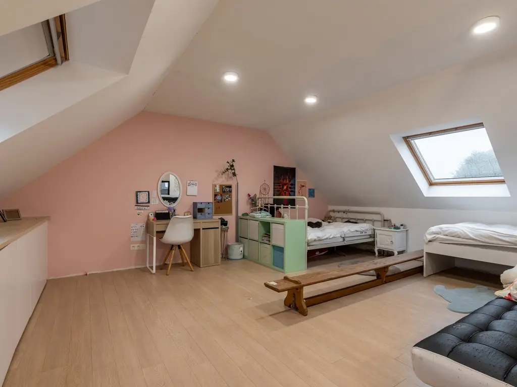 De ingerichte zolderverdieping doet thans dienst als 4e slaapkamer maar kan perfect worden opgedeeld of worden gebruikt als multifunctionele ruimte (bv. hobbykamer).
