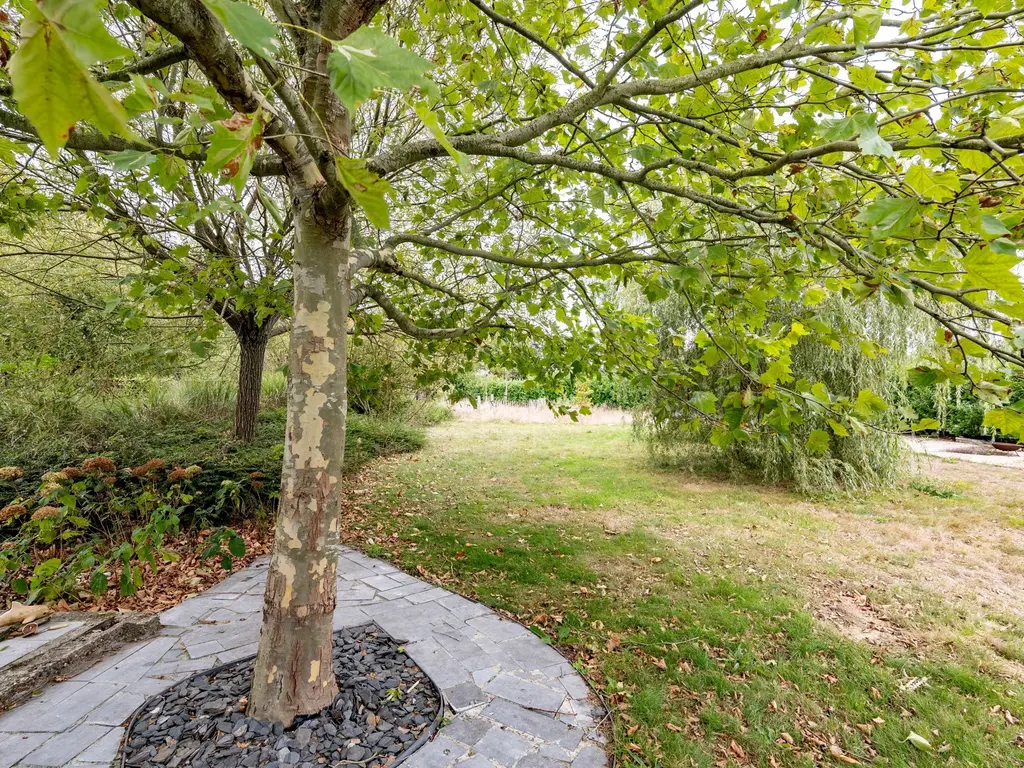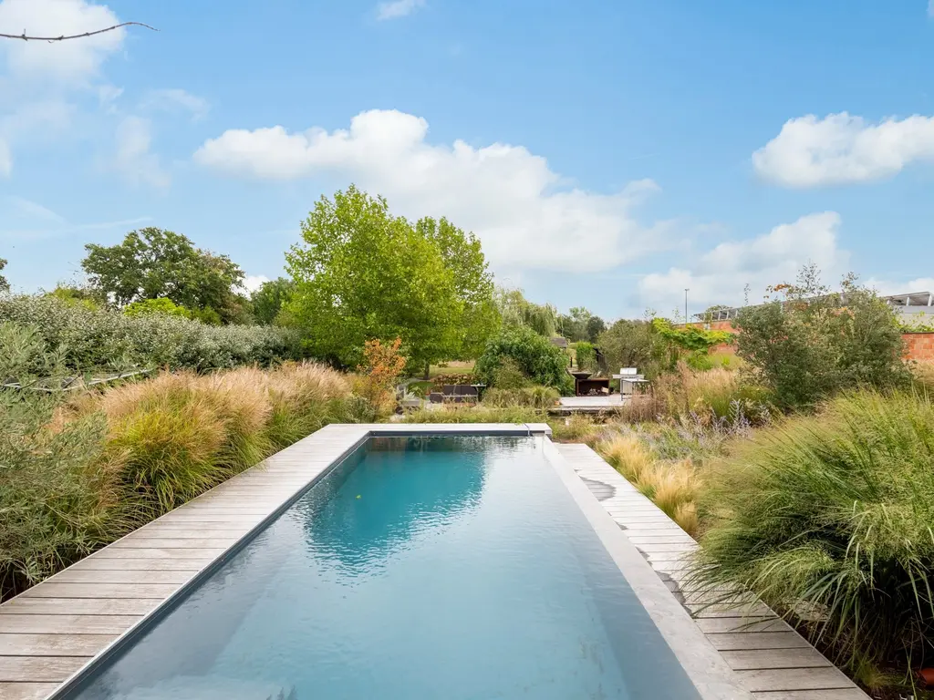 U vindt er naast verschillende heggen, bomen, heester en een aantal fruit- en notenbomen ook een infinity-zwembad (verwarmd én jetstream / tegenstroomsysteem).