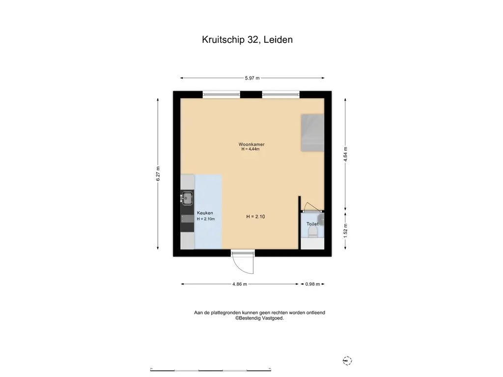 4. Eigen grond, gebruiksoppervlak 60,32 m², bruto inhoud 219 m³