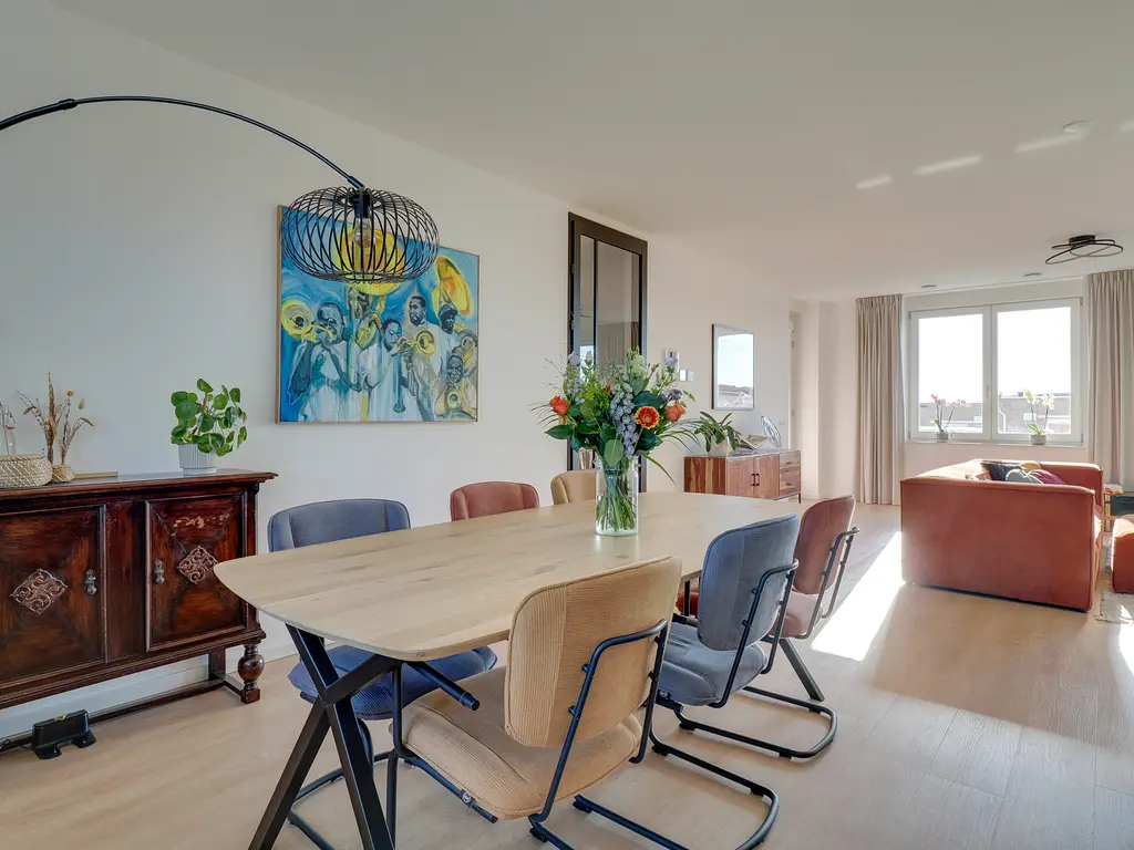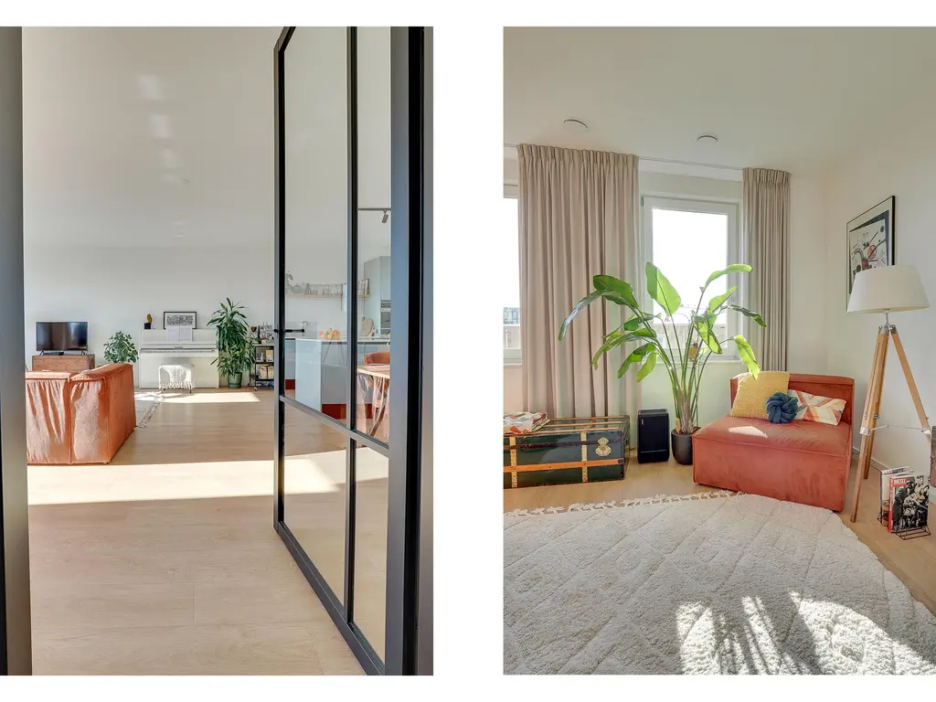 Bij binnenkomst valt meteen de hoge kwaliteit van afwerking op. De royale woonkamer van circa 52 m² vormt het hart van de woning: een heerlijke, lichte leefruimte met grote raampartijen en een open verbinding naar de keuken. De keuken is luxe uitgevoerd met hoogwaardige apparatuur, waaronder een Quooker, stoomoven en combimagnetron. Dankzij de slimme indeling is er veel werkruimte en voldoende kastruimte aanwezig. Vanuit de woonkamer stap je via een deur het balkon van ongeveer 7 m² op, waar je op zonnige momenten heerlijk kunt zitten en uitkijkt over de rustige omgeving.