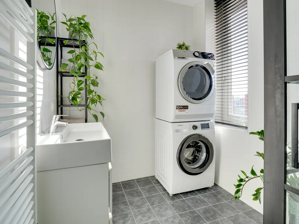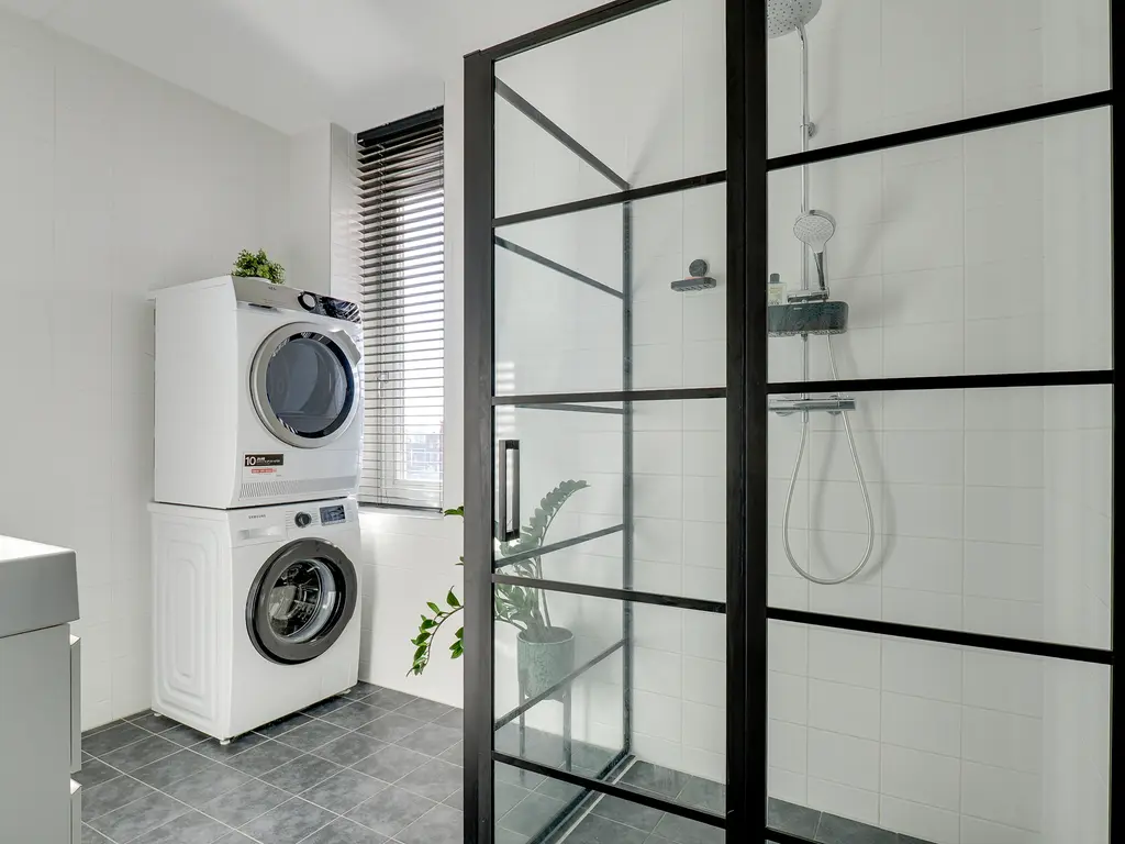 De twee slaapkamers zijn ruim en praktisch in te delen, geschikt als master bedroom, logeerkamer, thuiswerkruimte of combinatie daarvan. De moderne badkamer is stijlvol ingericht en voorzien van een inloopdouche, wastafelmeubel en aansluiting voor de wasmachine. De woning beschikt daarnaast over een eigen berging van circa 5 m² in de parkeerkelder, ideaal voor opslag van fietsen, bagage of seizoensspullen. Uiteraard hoort er een vaste parkeerplaats in de ondergelegen parkeergarage bij het appartement.