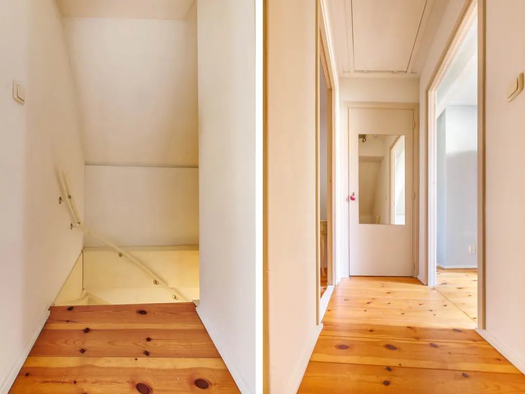 Overloop met ruime inbouwkast en toegang tot de twee sfeervolle (slaap)kamers. De zonnige kamer aan de voorzijde heeft een dakkapel en de gezellige kamer aan de achterzijde twee dakraampjes. Vanuit de overloop is er middels een vlizotrap toegang tot de zeer grote vliering met heel veel extra bergruimte.