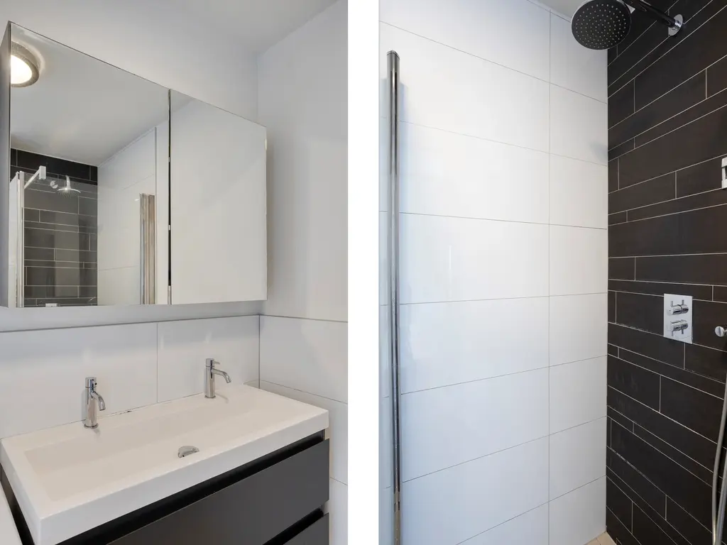 De badkamer is netjes onderhouden en uitgerust met een douche, wastafel en aansluiting voor wasmachine en/of droger. Het separate toilet is voorzien van een fontein.