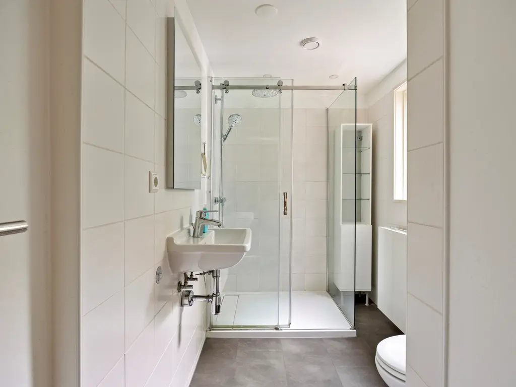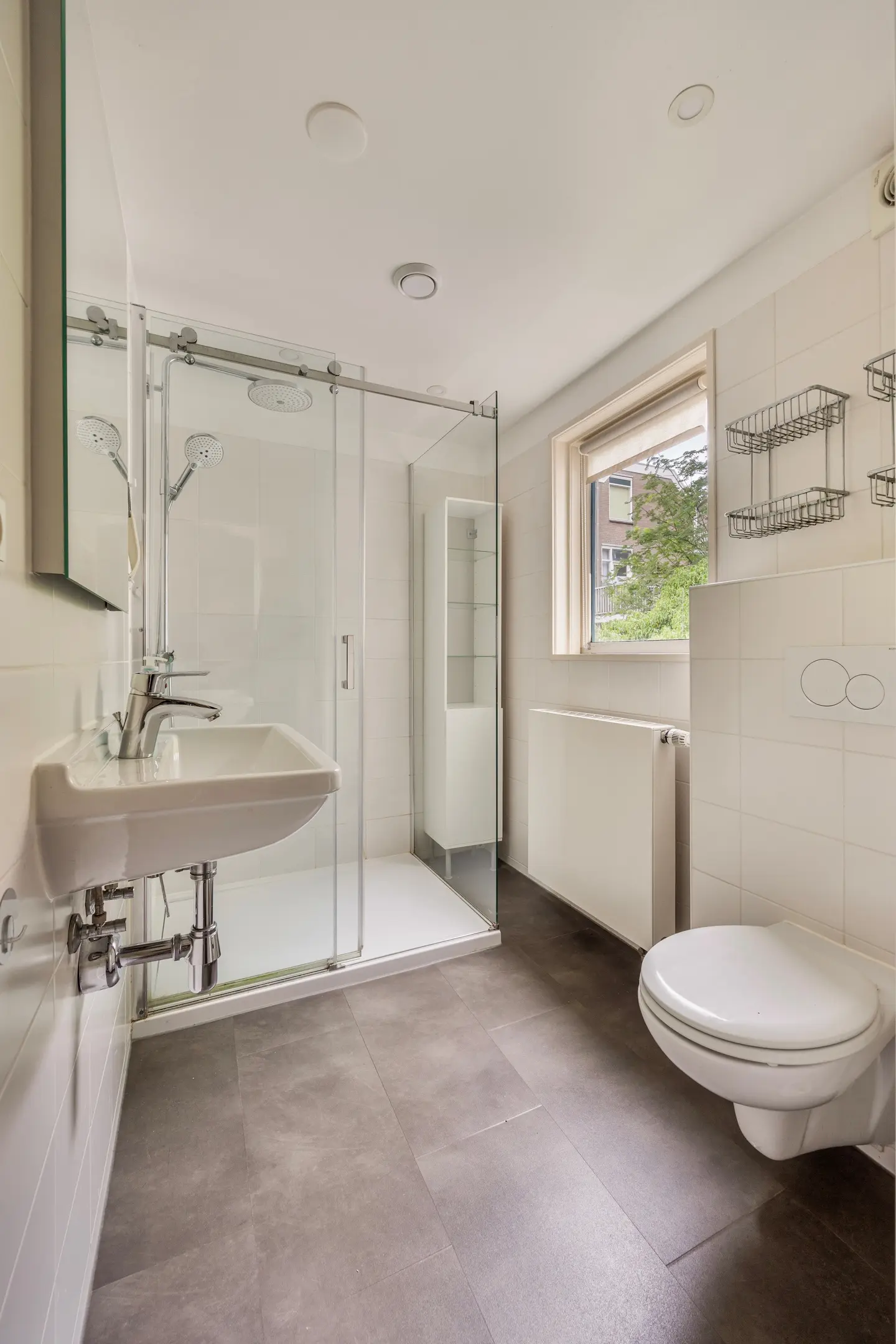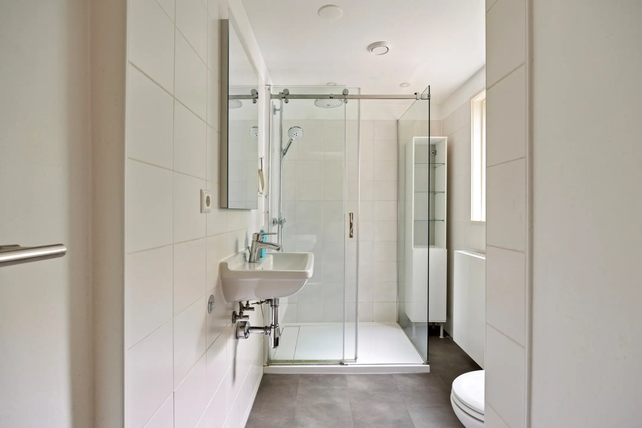 1e verdieping: Overloop met toegang tot 2 ruime slaapkamers en de badkamer. De badkamer beschikt over een aparte douche, zwevend toilet en een wastafel.