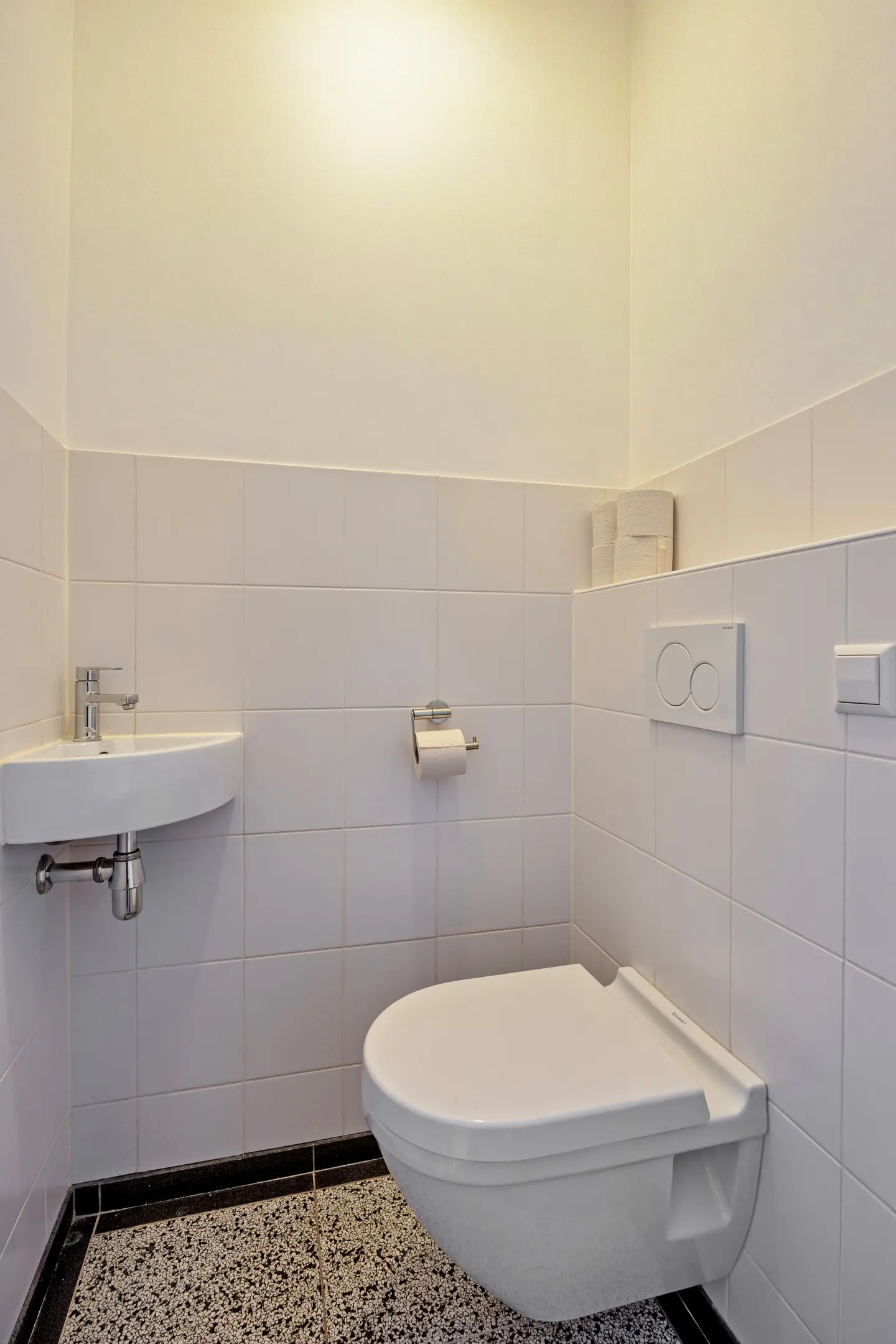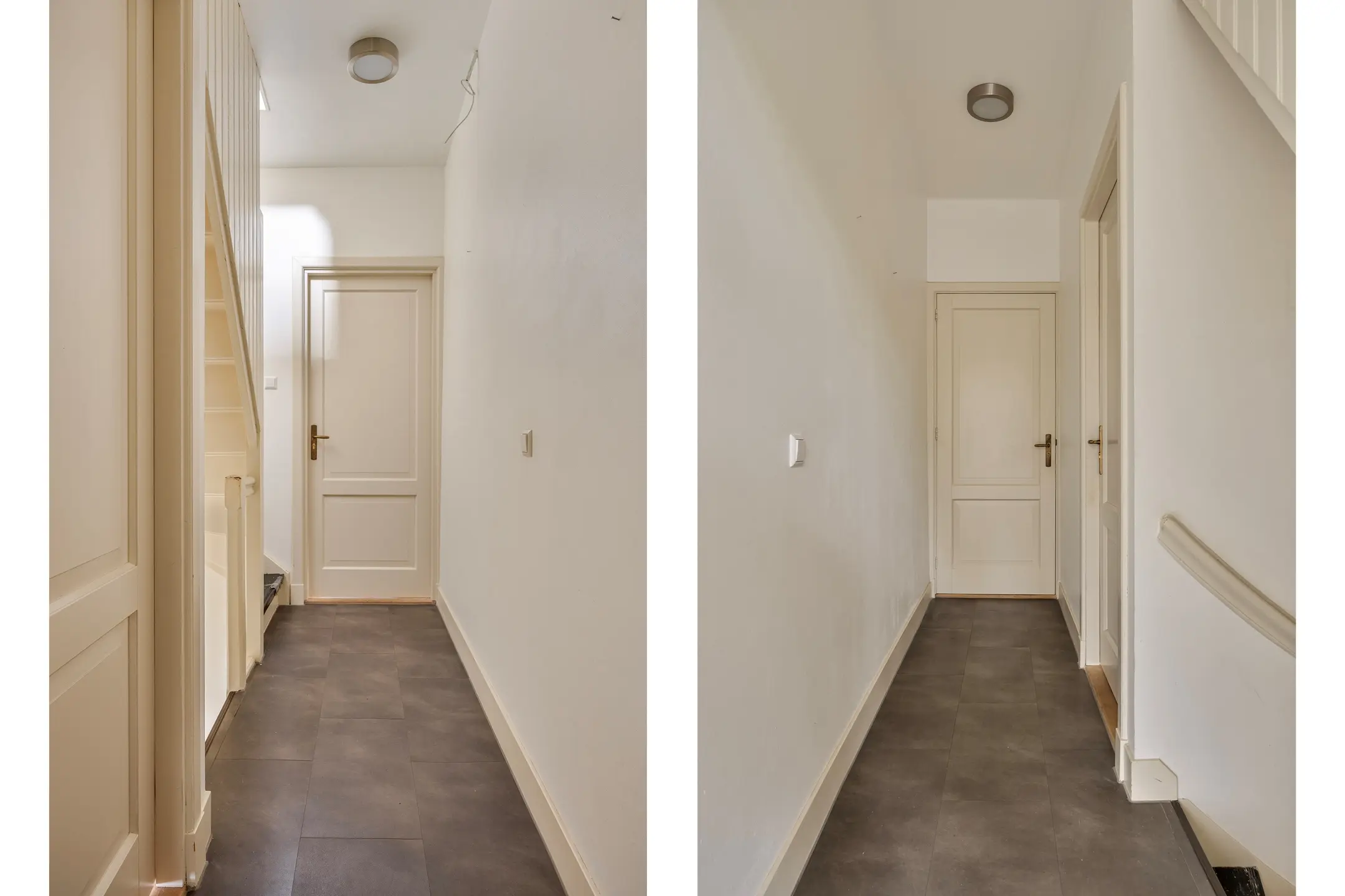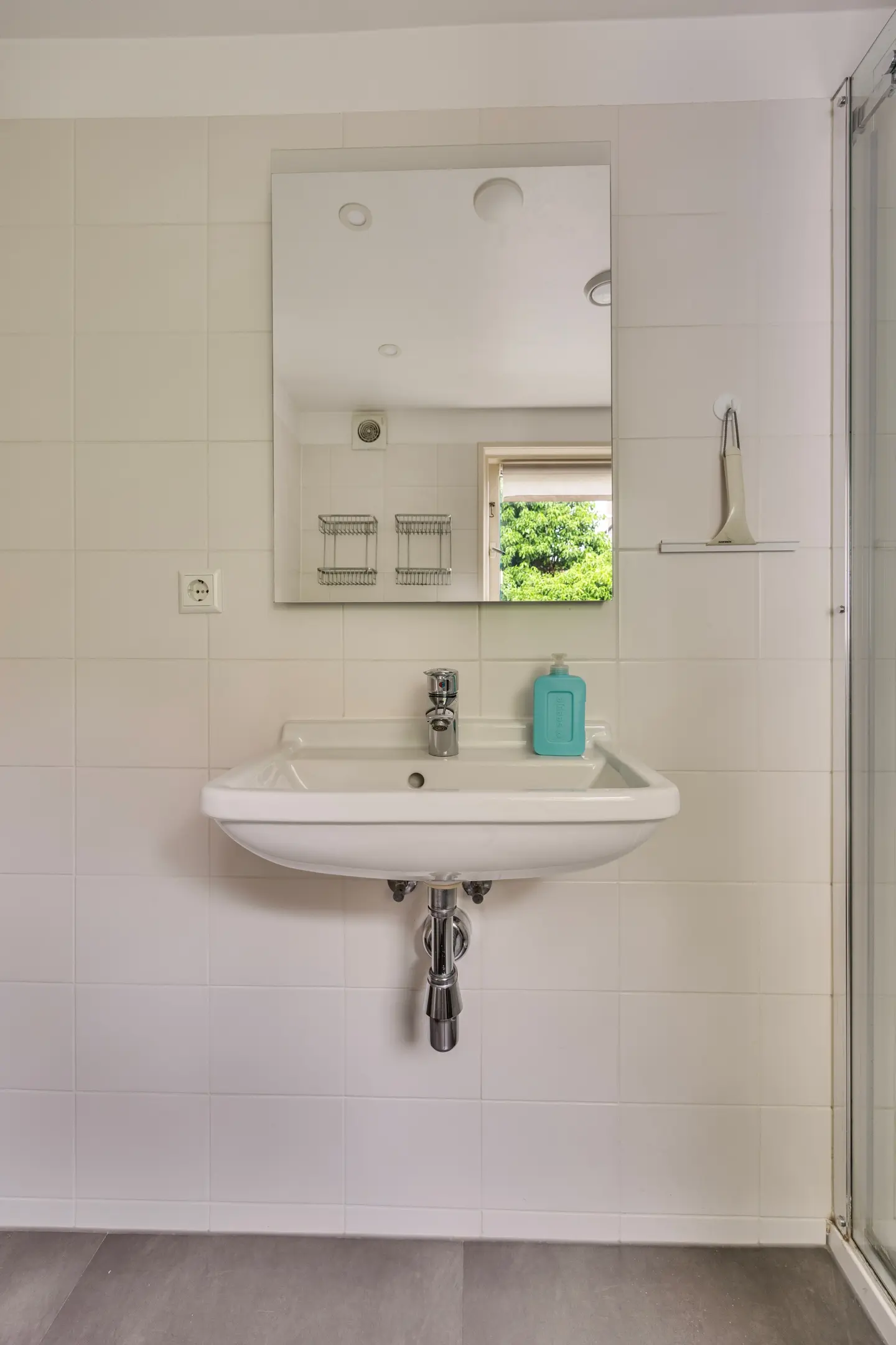 1e verdieping: Overloop met toegang tot 2 ruime slaapkamers en de badkamer. De badkamer beschikt over een aparte douche, zwevend toilet en een wastafel.