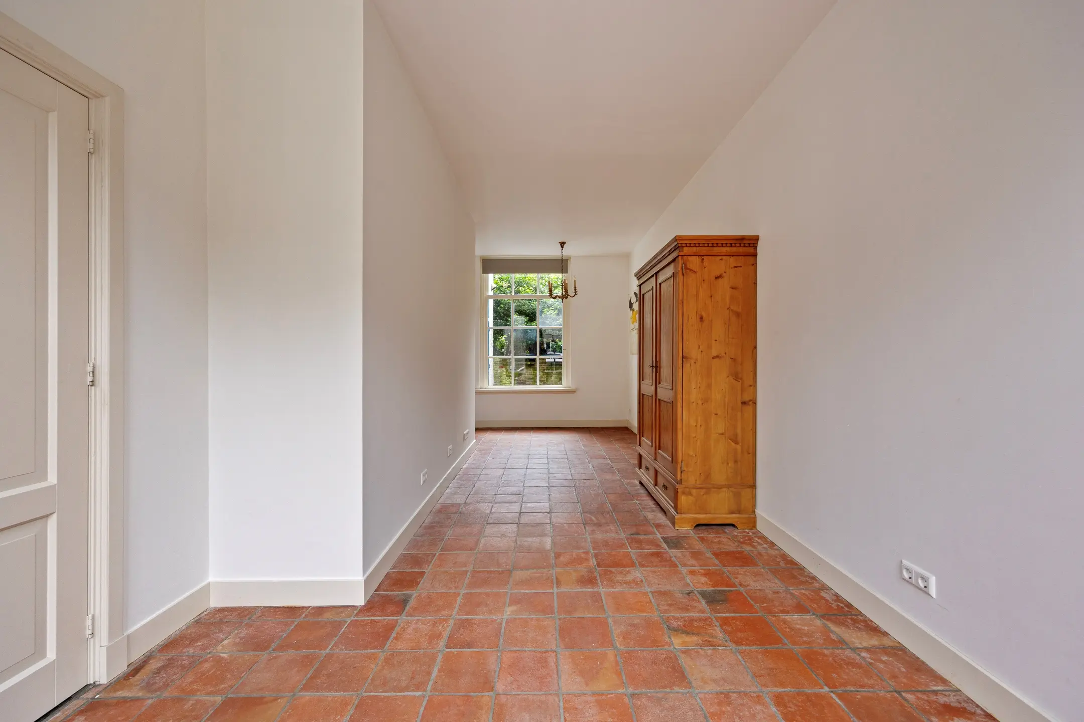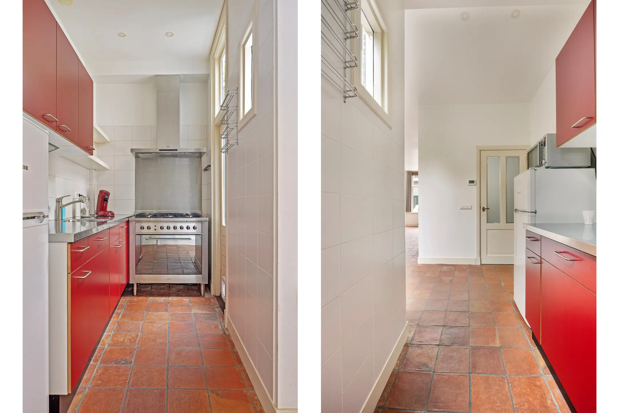 Begane grond: Entree met meterkast. Ruime hal met separaat toilet en fonteintje. Royale woonkamer met halfopen keuken voorzien van verschillende apparatuur zoals een 5-pits gasfornuis, oven, afzuigkap, vaatwasser, combi-ovenmagnetron en koel-vriescombinatie. Vanuit de keuken heeft u toegang tot de tuin van 7m2 gelegen op het westen.