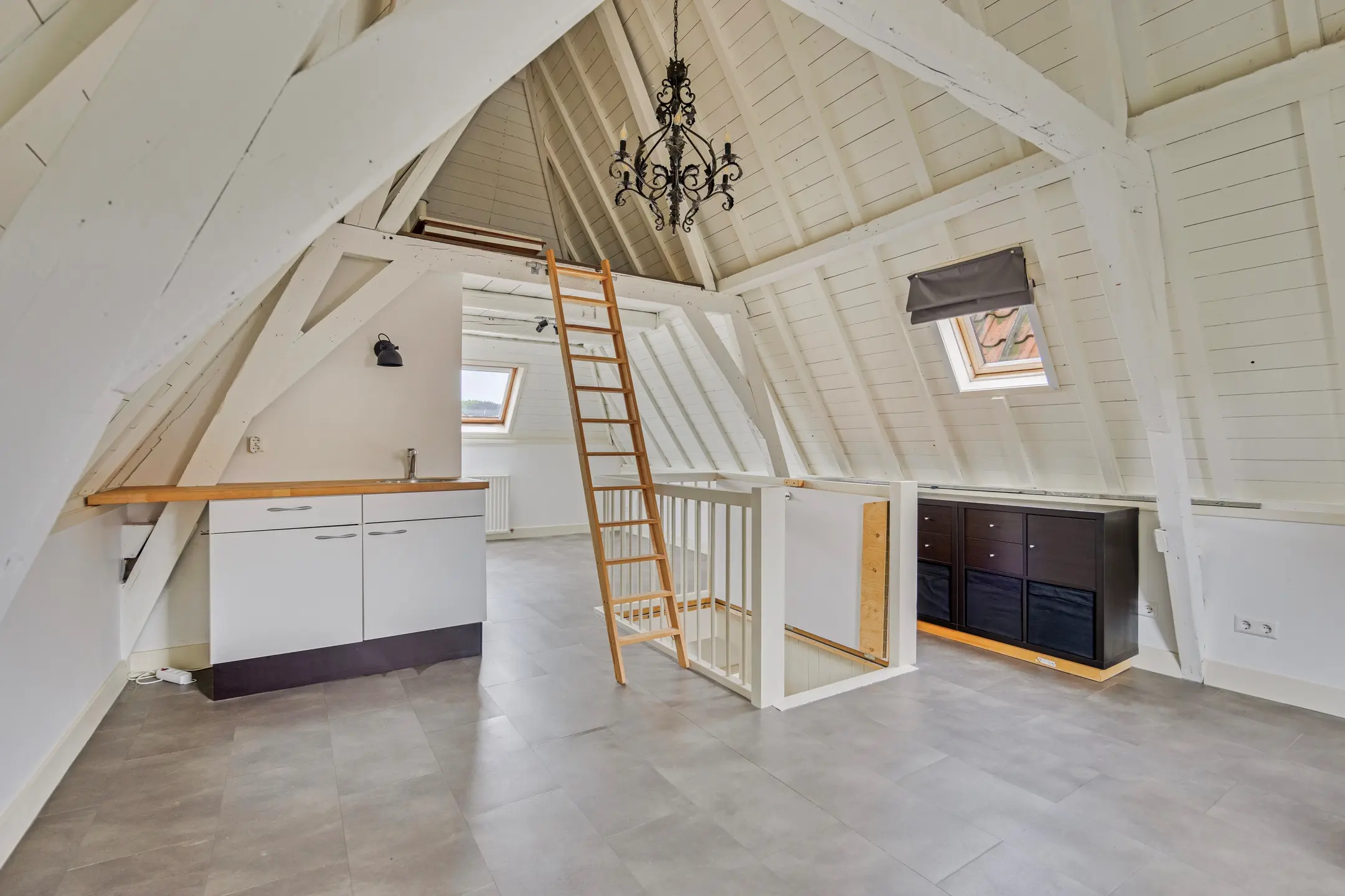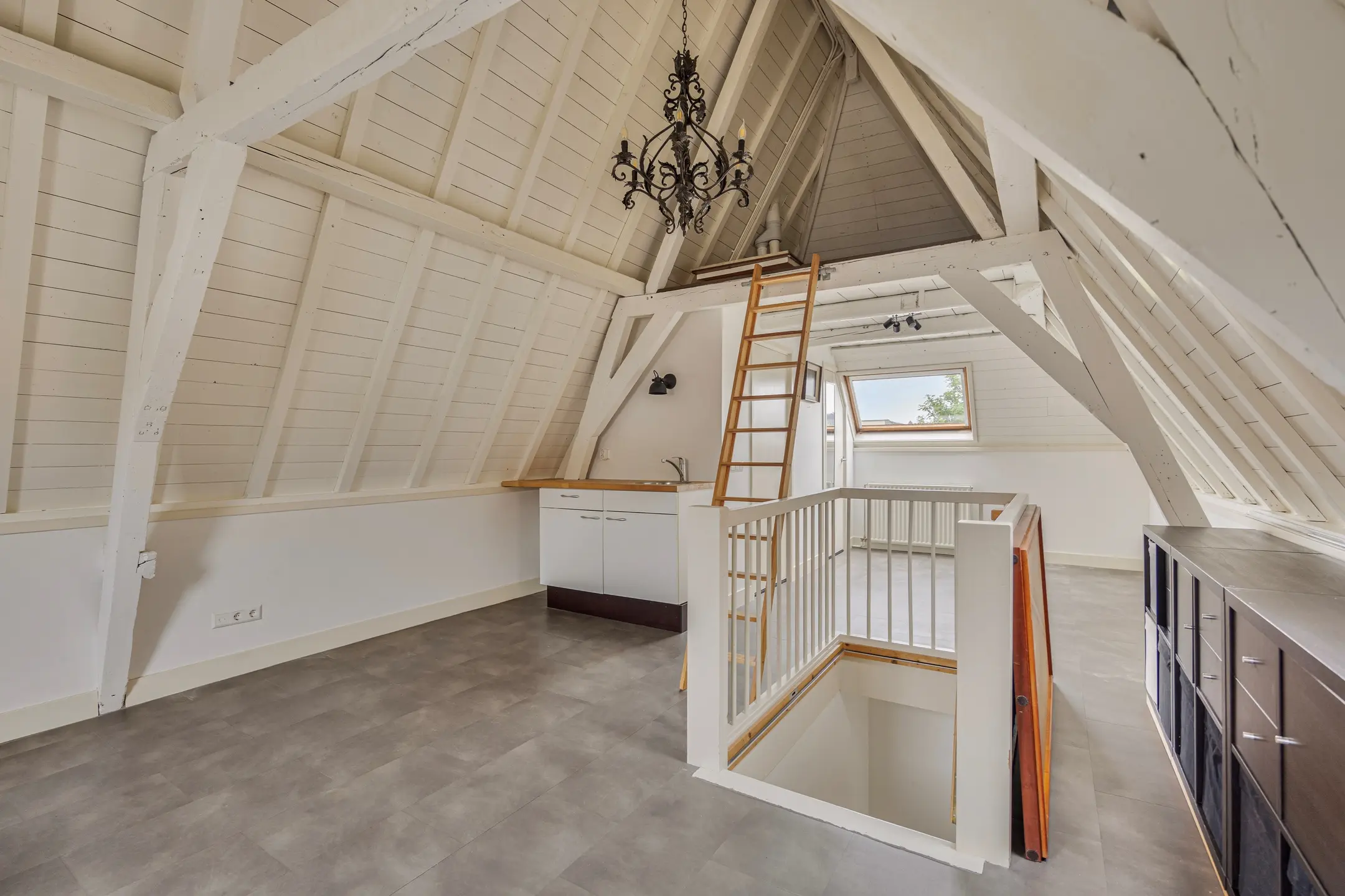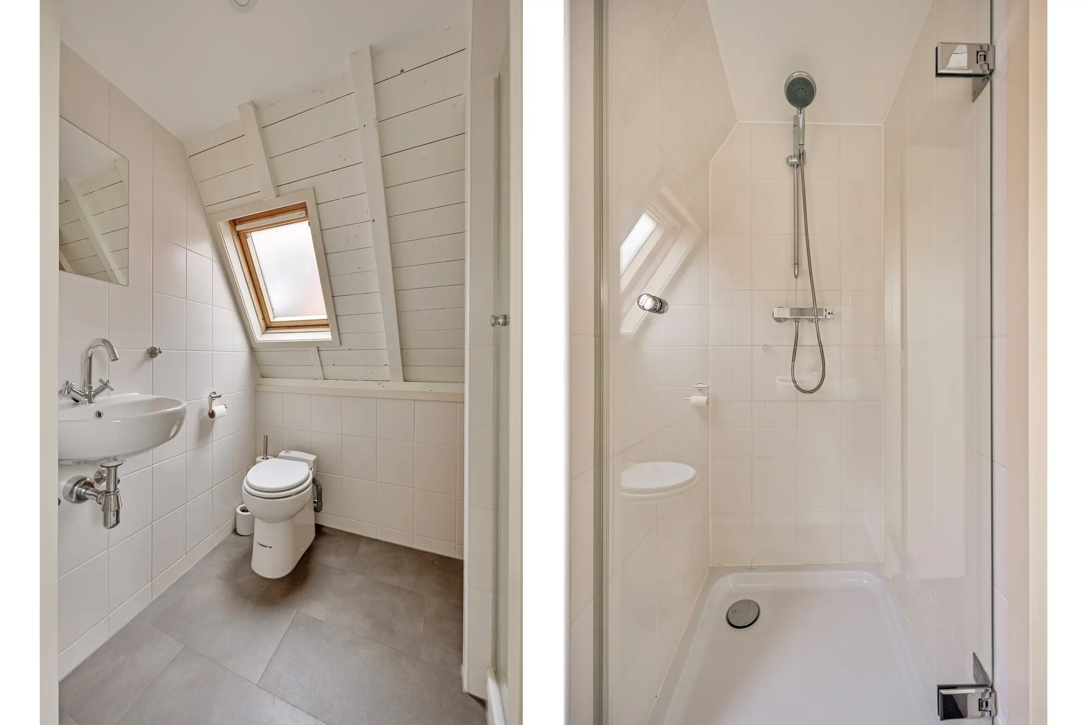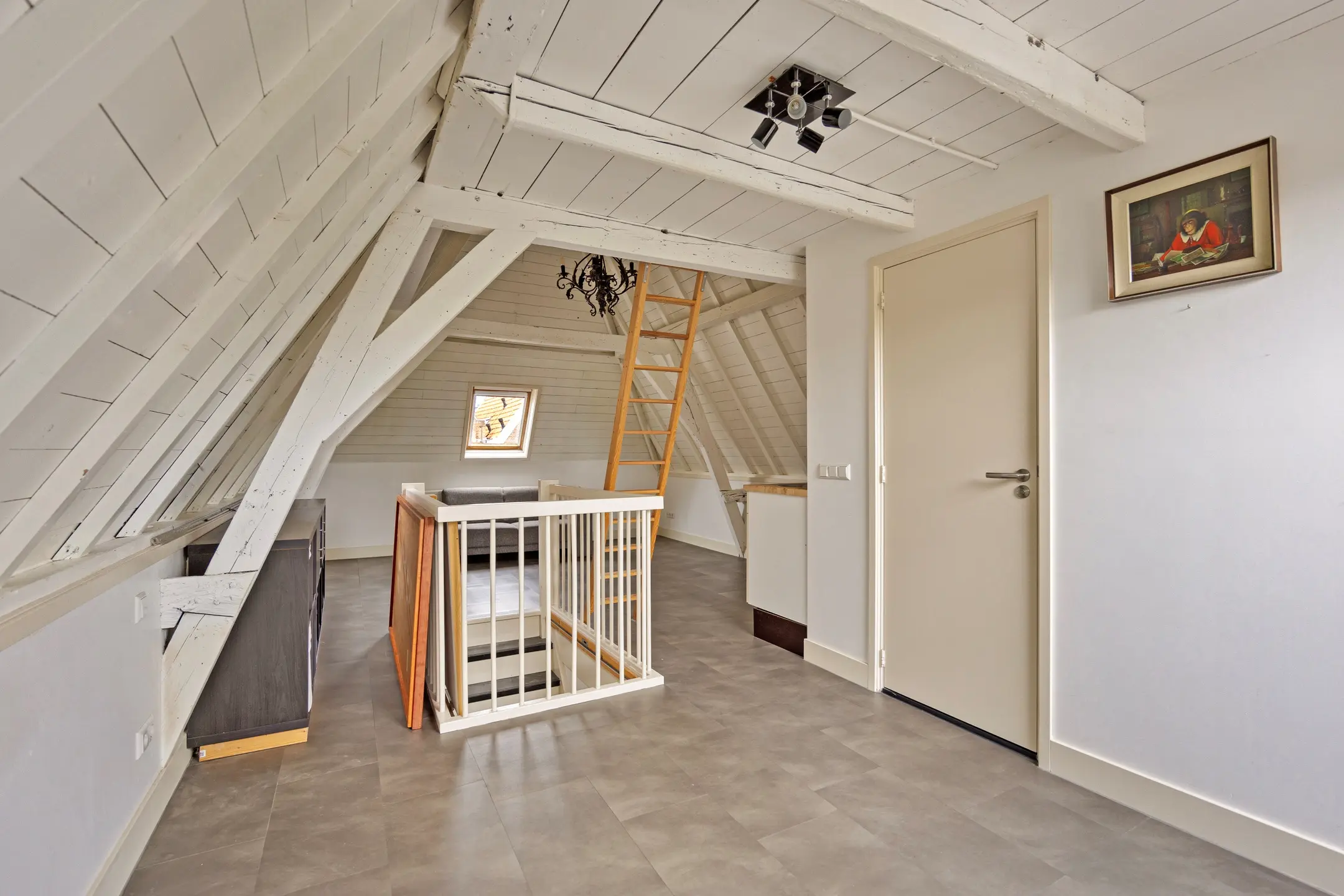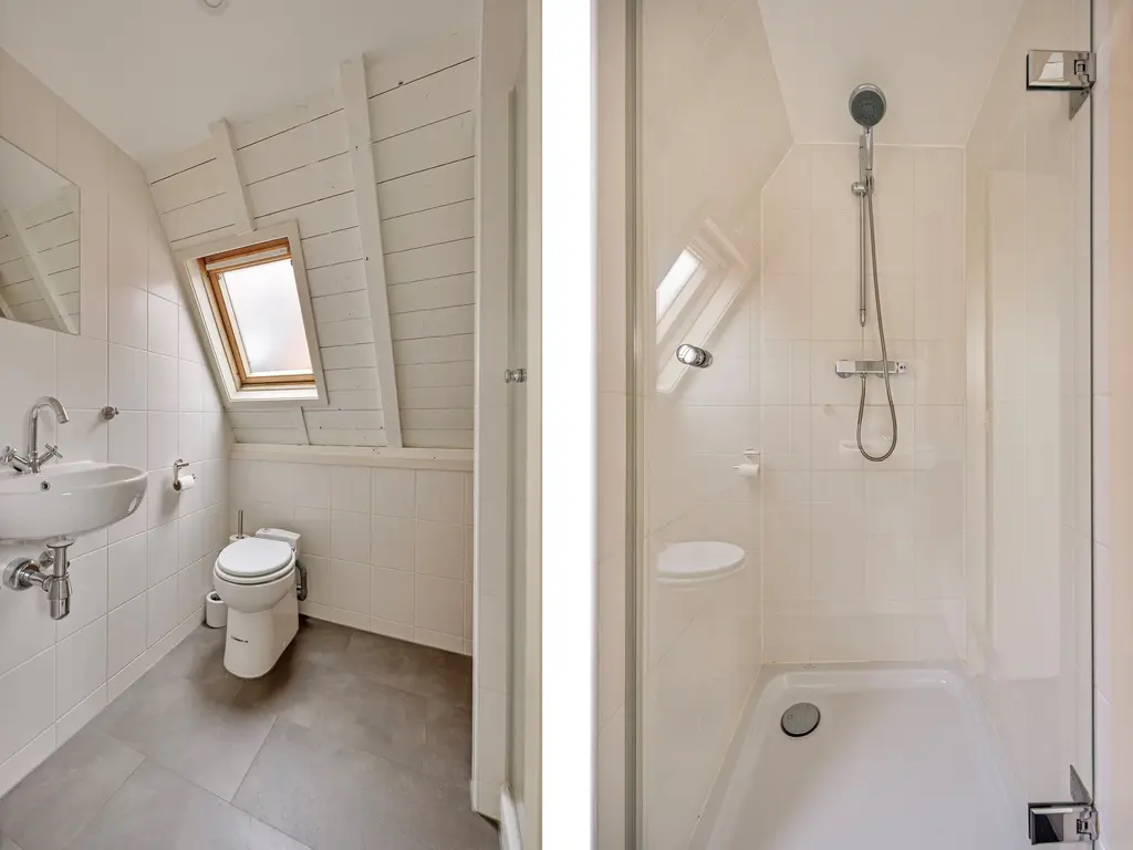 2e verdieping: Zeer ruime zolderverdieping met vide kan gebruikt worden als 3de slaapkamer. Deze verdieping is voorzien van een keukenblok met wastafel en 2de badkamer. Deze badkamer is wederom voorzien van een aparte douche, een wastafel en een toilet. Tevens bevindt zich hier de aansluiting voor de wasmachine.