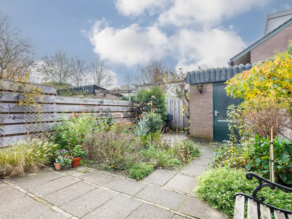 De sfeervolle, op het zuiden gelegen tuin biedt een groot terras, fraaie beplanting en een praktische achterom. Daarnaast heeft de tuin geen tot weinig inkijk van achterburen. U zit echt vrij. De berging is voorzien van elektra en biedt ruimte voor meerdere fietsen. Over de hele breedte van de woonkamer is een elektrisch zonnescherm aanwezig.