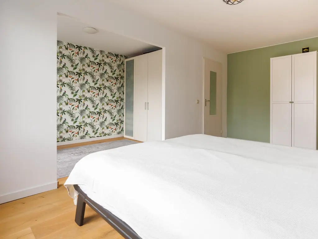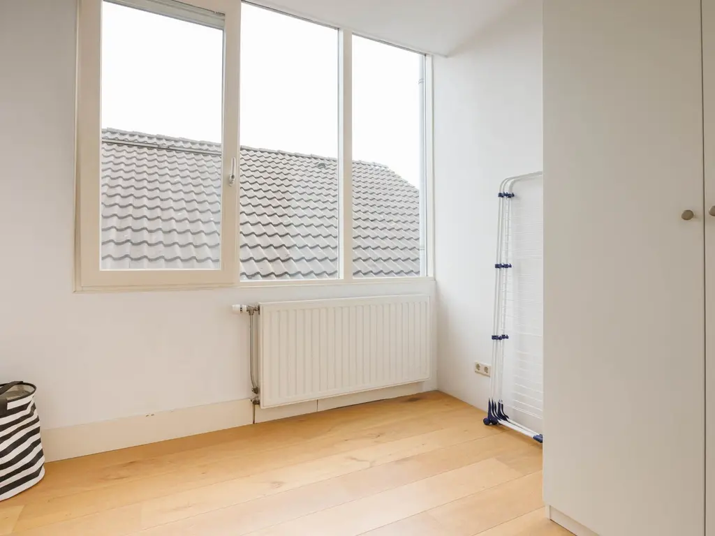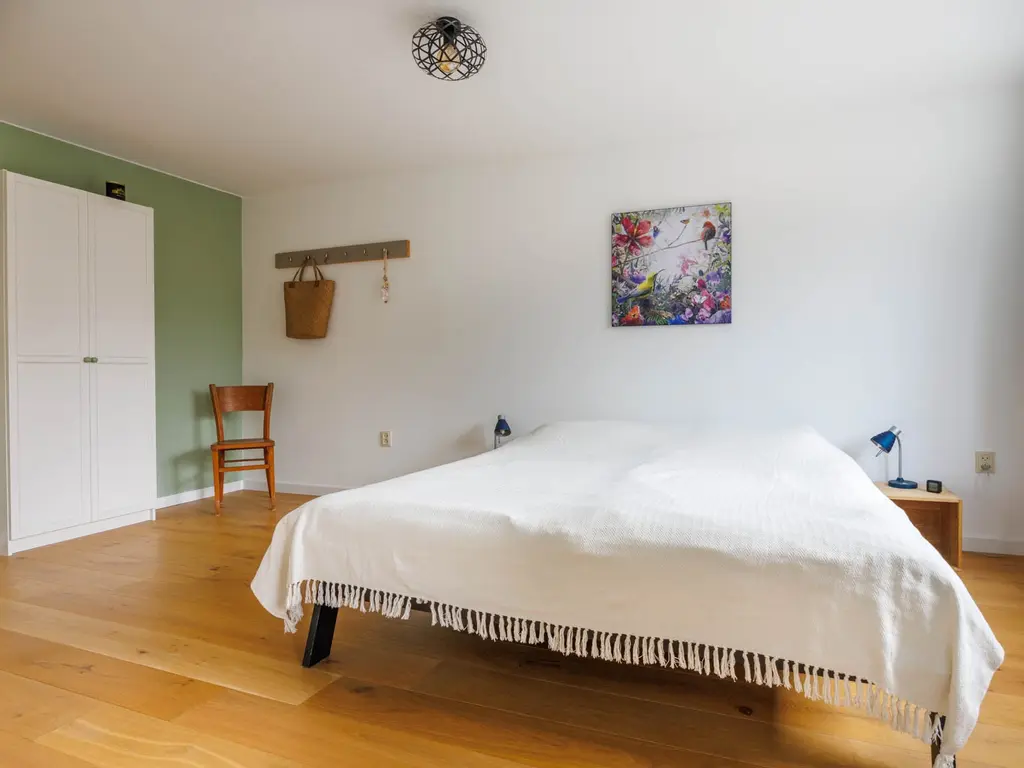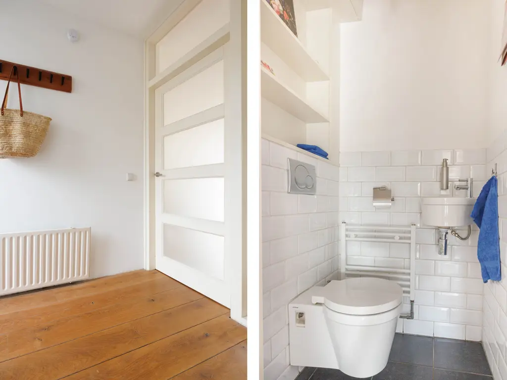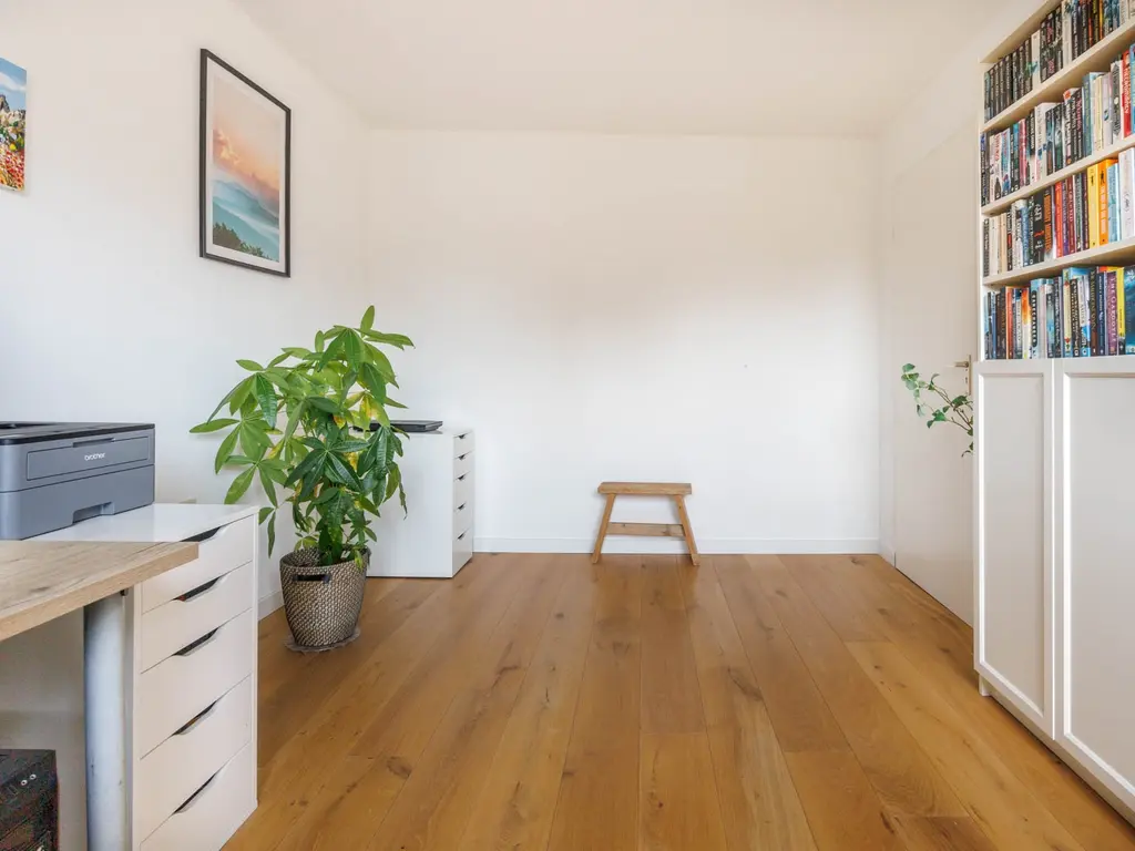 De overloop brengt de 2 ruime slaapkamers (voorheen 3 slaapkamers) samen. De doorgebroken slaapkamer wordt nu gebruikt als walk-in closet. De badkamer heeft een ligbad, wastafel, 2e toilet, wasmachine/drogeraansluiting en mechanische ventilatie. Ook biedt deze veel opbergruimte. De gehele etage is voorzien van eikenhouten lamelparket en heeft een sfeervolle en lichte uitstraling.