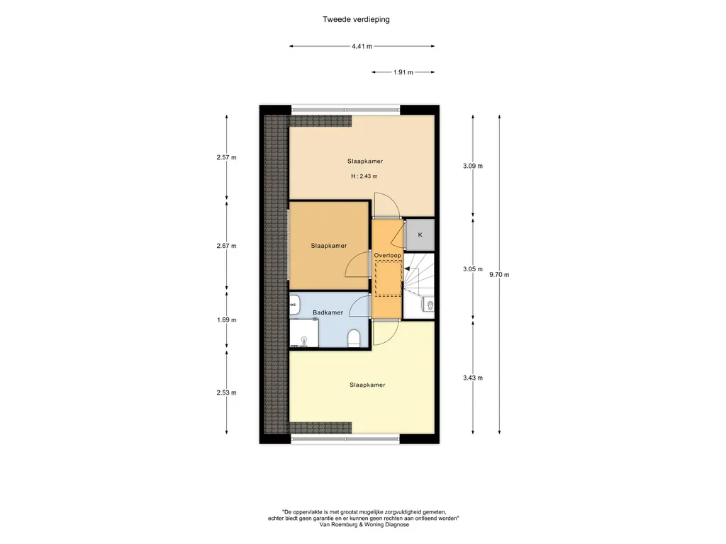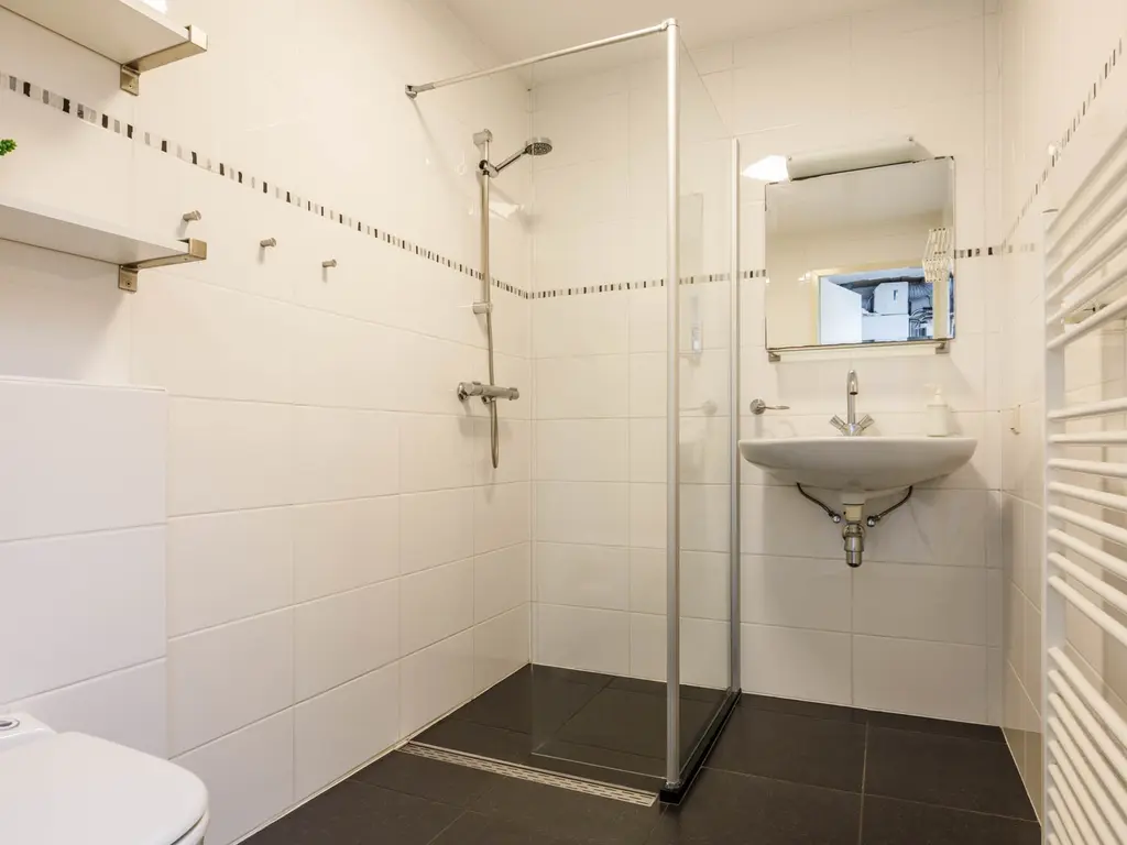 Ruime overloop met cv-opstelling, een lichtkoepel en toegang tot de drie kamers en de tweede royale badkamer. De tweede etage heeft een volledige dakuitbouw over de gehele lengte. De voor- en achterkamer zijn voorzien van een vaste kastenwand. Deze zijn tevens de ombouw voor de radiatoren. In de badkamer vindt u een inloopdouche, wastafel en 3e toilet. De gehele etage is voorzien van hetzelfde eikenhouten lamelparket.