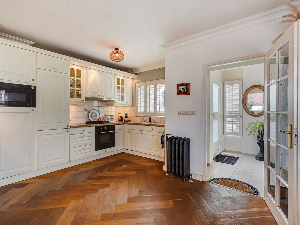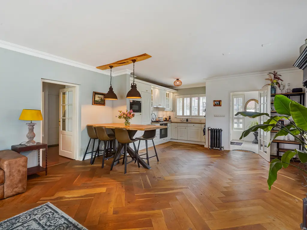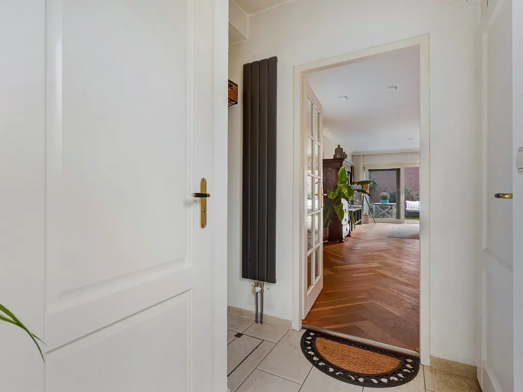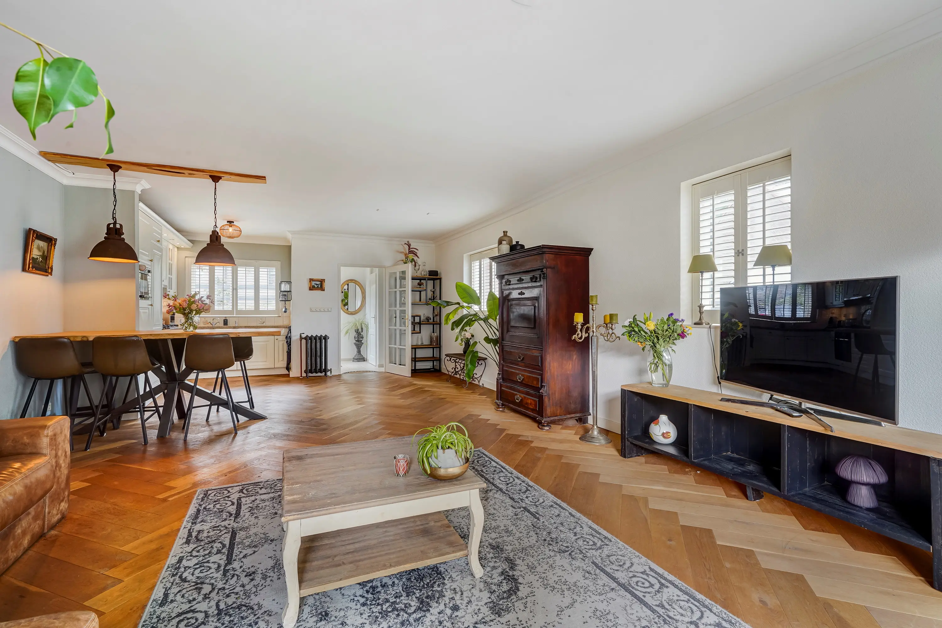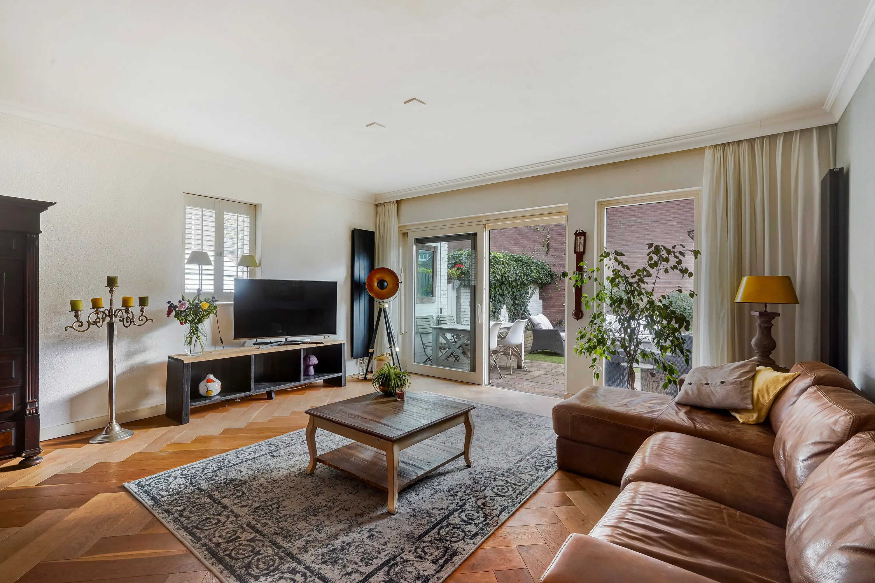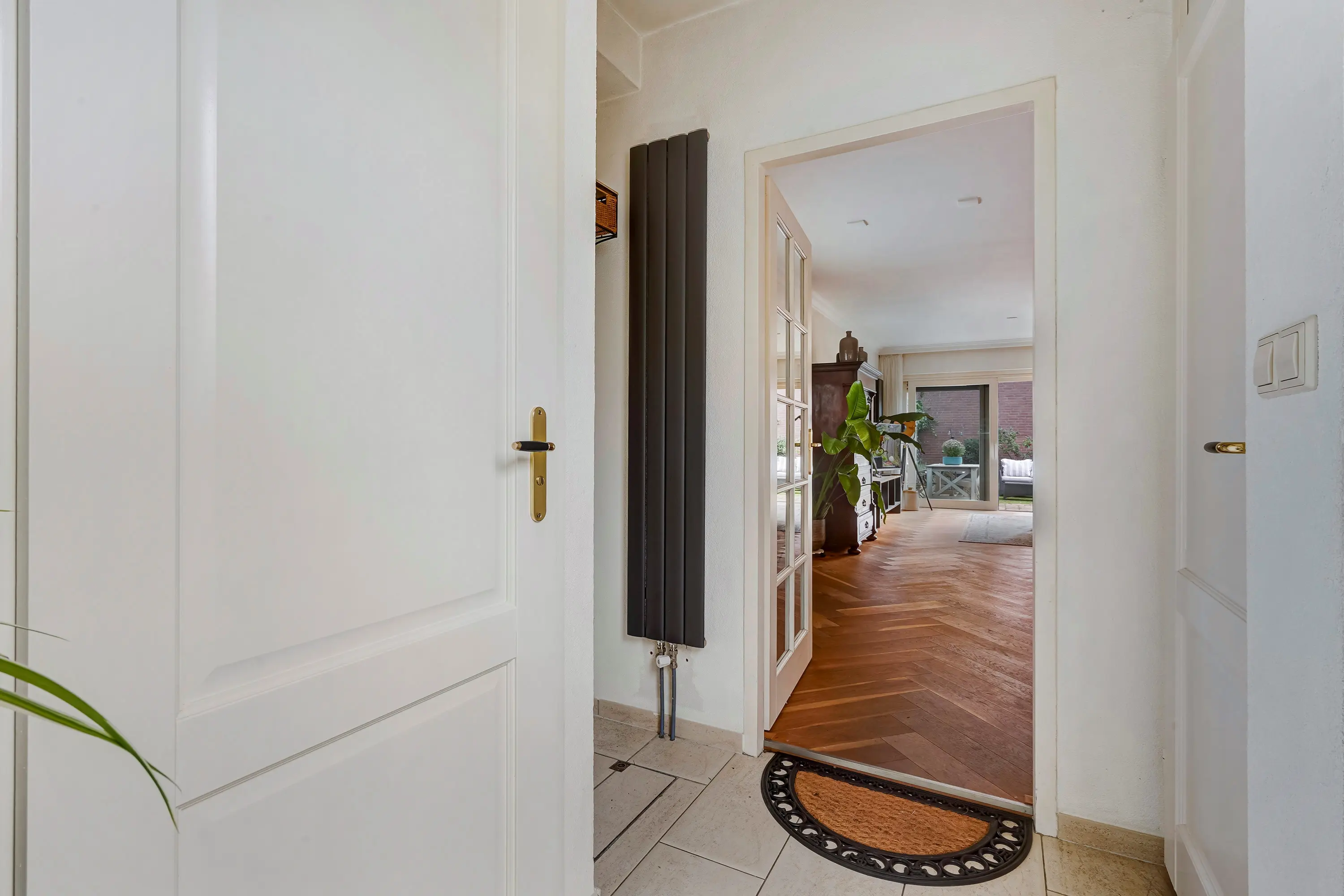 Via de eigen entree op de begane grond komt u in de hal met meterkast en een net toilet met fontein. De ruime en lichte woonkamer is voorzien van een eikenhouten vloer (2017), designradiatoren en een schuifpui naar de tuin. De open keuken is compleet uitgerust met een 4-pits gaskookplaat, magnetron, koel-/vriescombinatie (2024) en vaatwasser (2024).