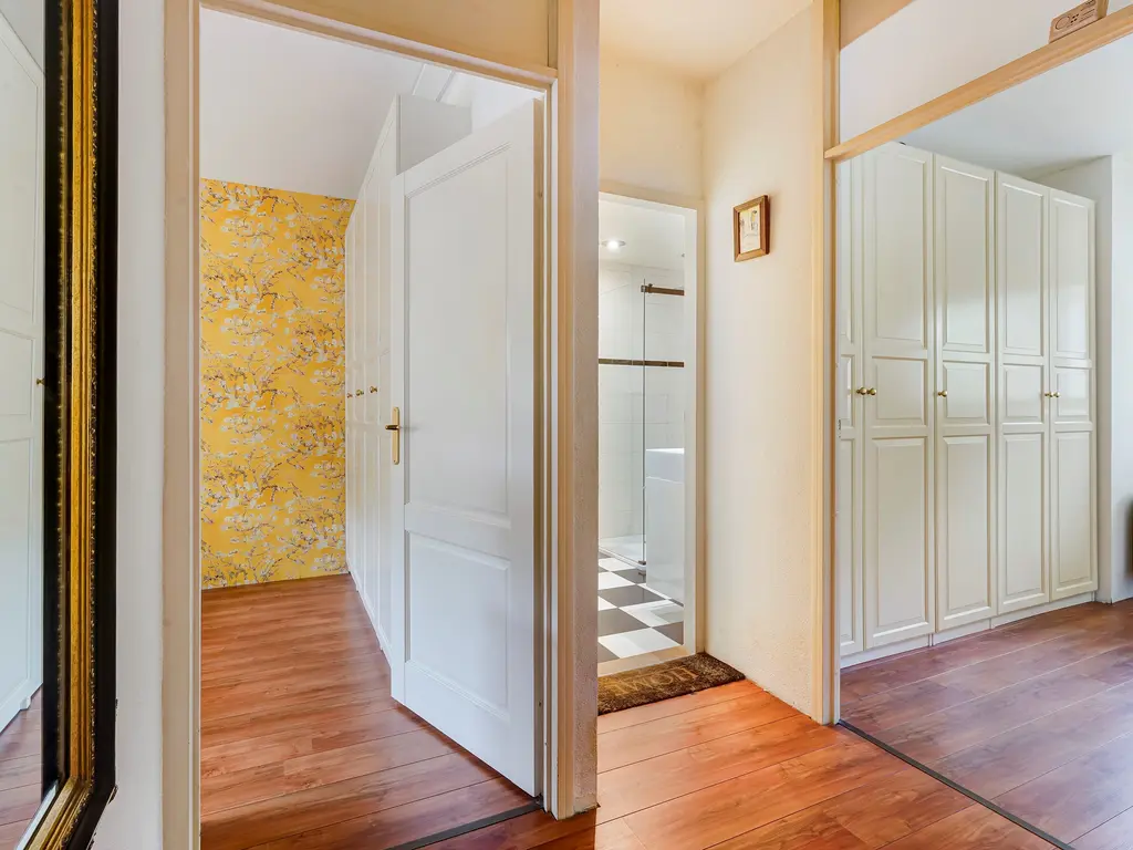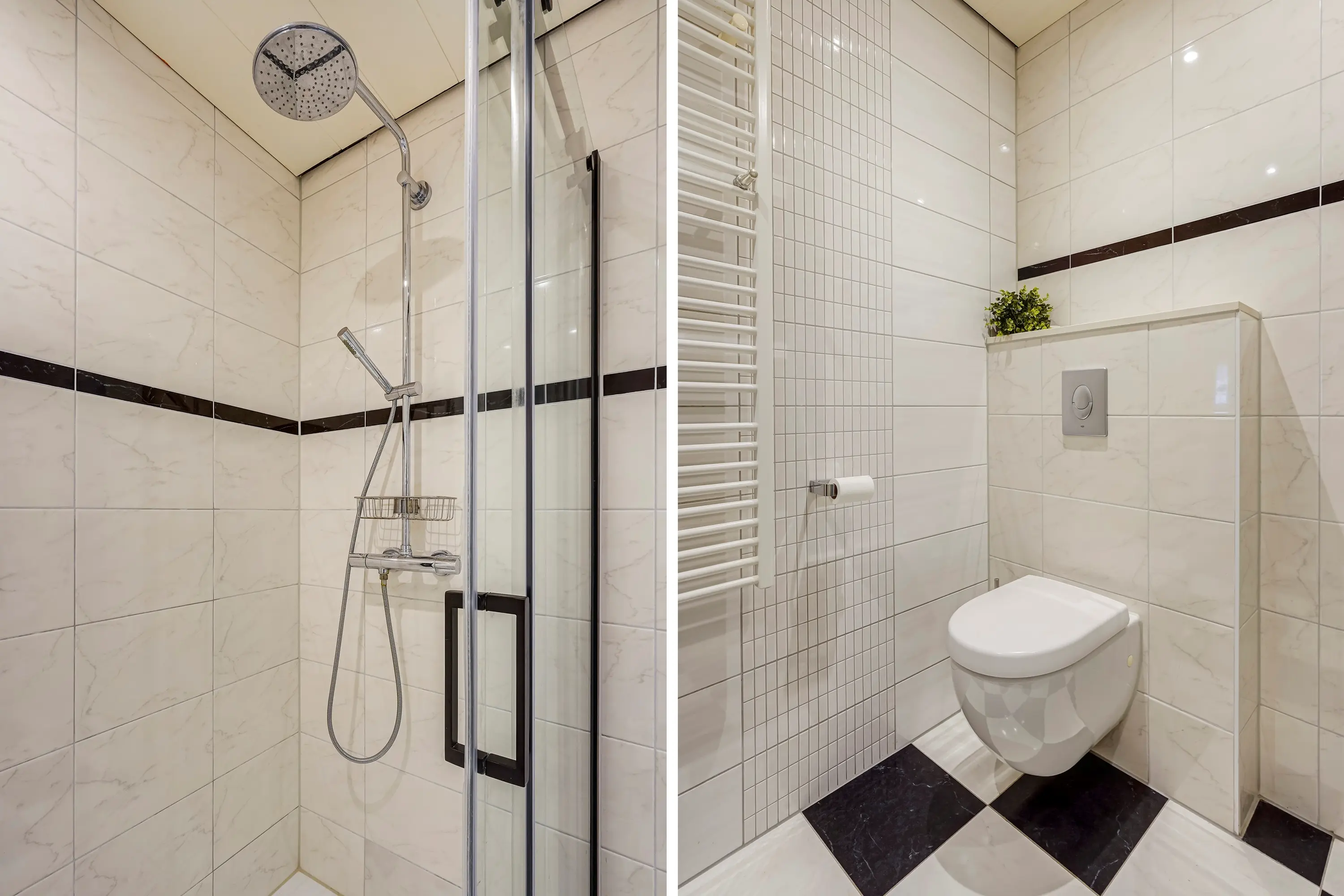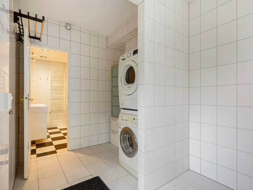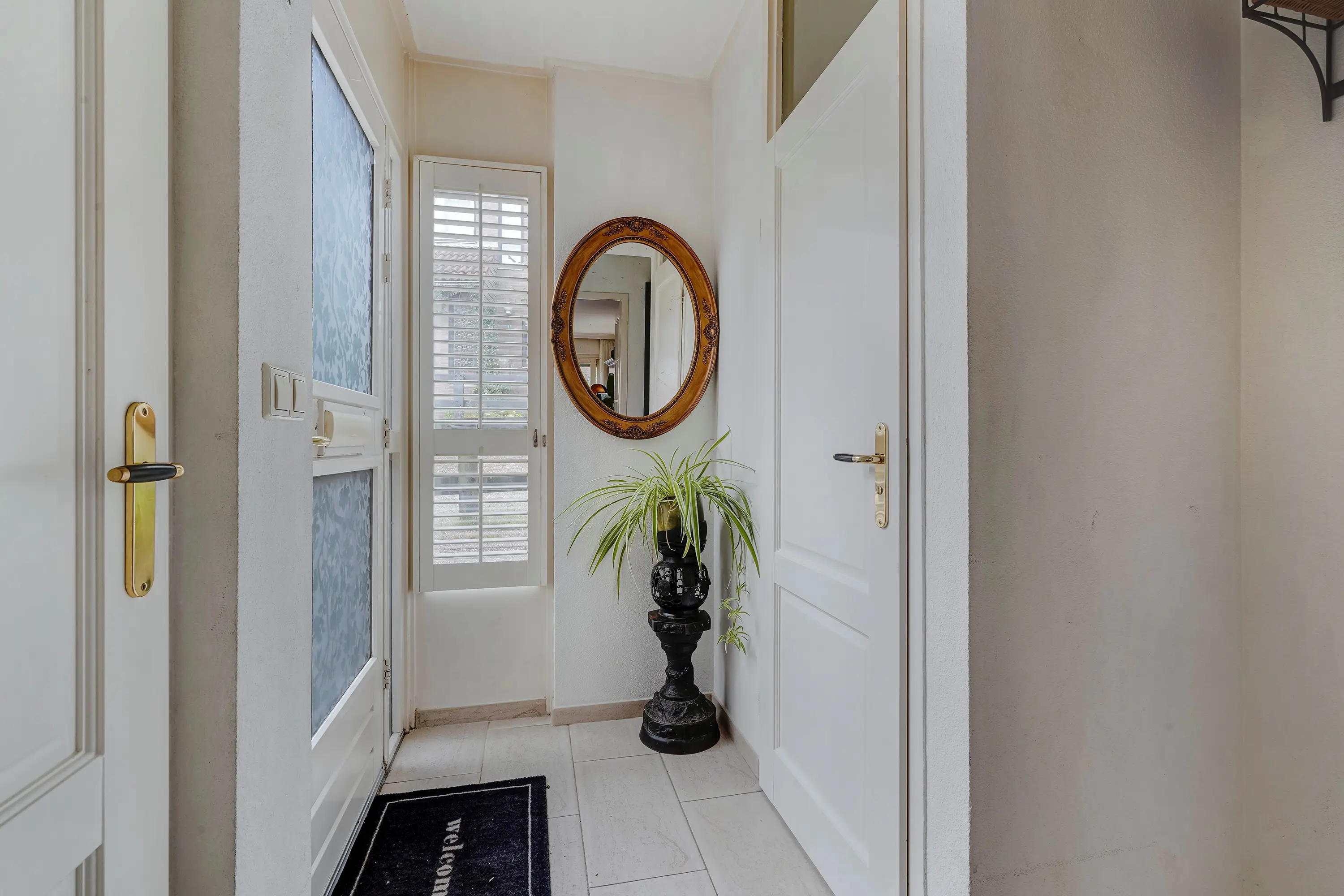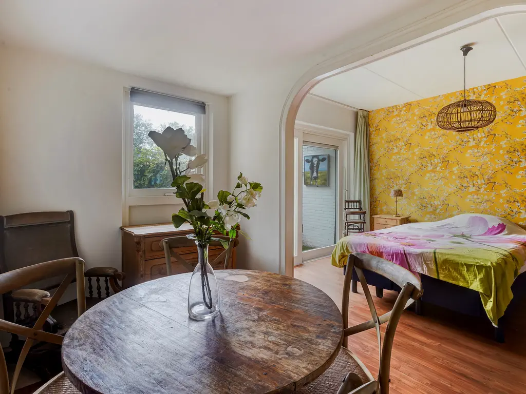 De eerste slaapkamer bevindt zich aan de voorzijde van de woning. Ernaast is een royale badkamer gelegen die beschikt over een ruime inloopdouche (2022), dubbel wastafelmeubel, tweede toilet en handdoekradiator. Aansluitend bevindt zich een extra ruimte met een tweede buitendeur, waar eenvoudig een praktische wasmachine-/drogeropstelling gerealiseerd kan worden, inclusief extra bergruimte en een vliering.