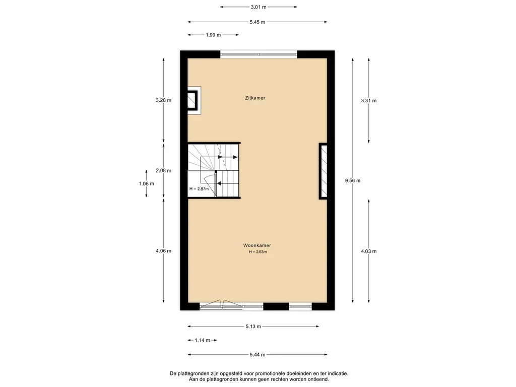 Op de eerste verdieping bevindt zich de royale doorzonwoonkamer van circa 52 m². Door de grote ramen aan beide zijden is deze verdieping bijzonder licht en voelt de ruimte open en comfortabel aan. De open haard zorgt voor extra sfeer en warmte, vooral in de wintermaanden.
