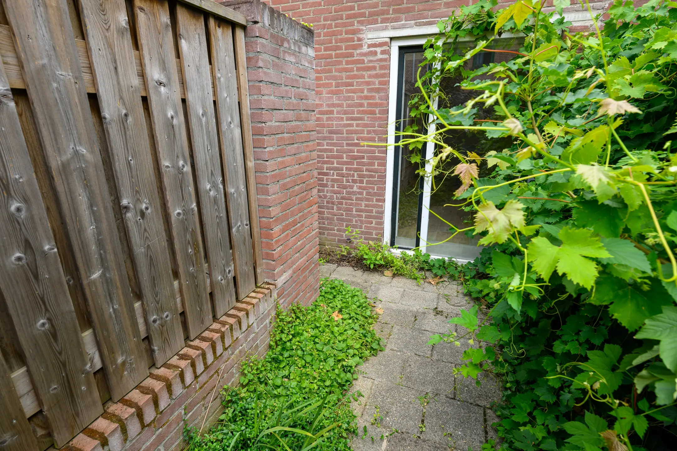 De tuin van circa 26 m² ligt op het zuiden en biedt volop zon en privacy. Ideaal om te ontspannen, of buiten te eten — een waardevolle buitenruimte in de binnenstad van Leiden.