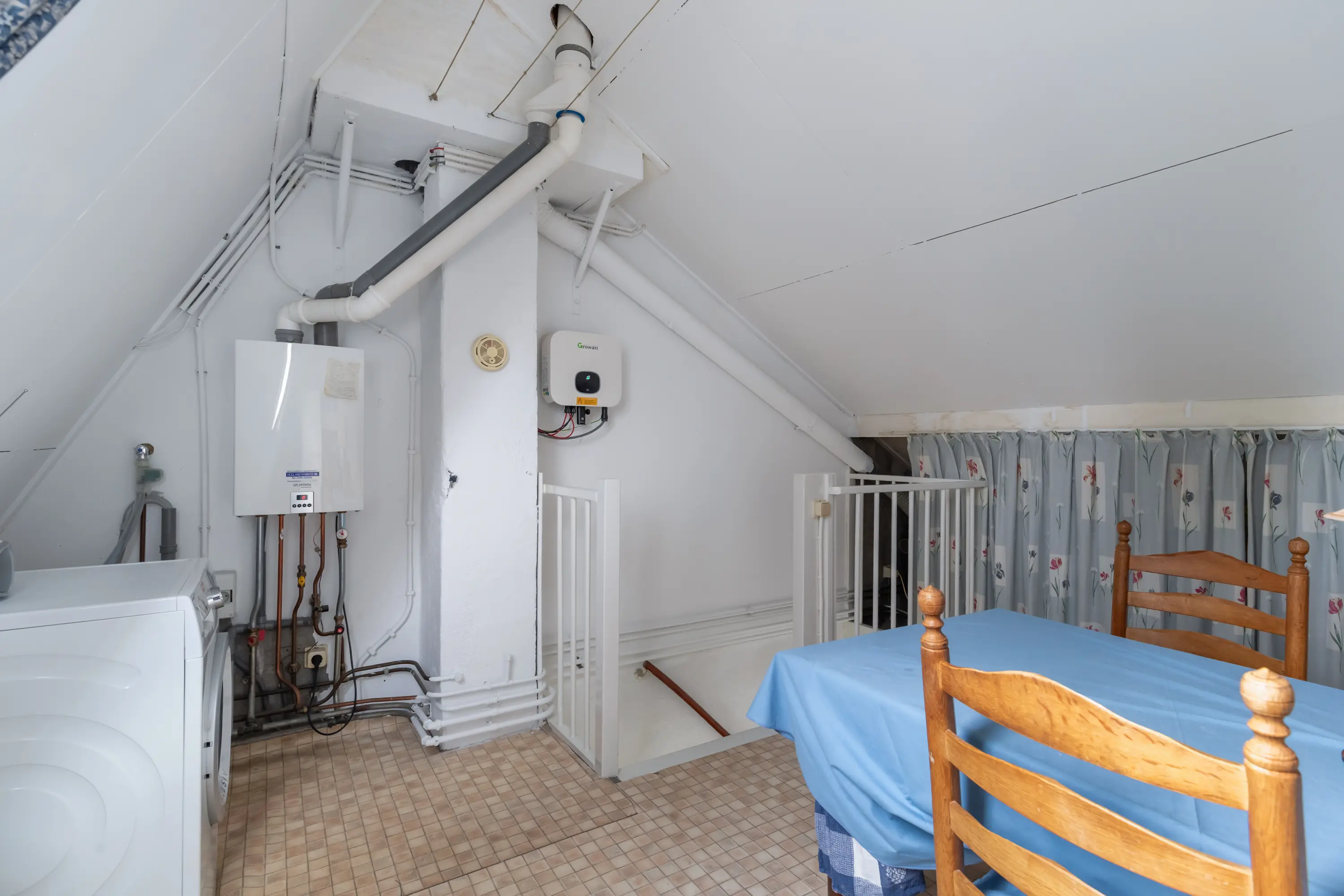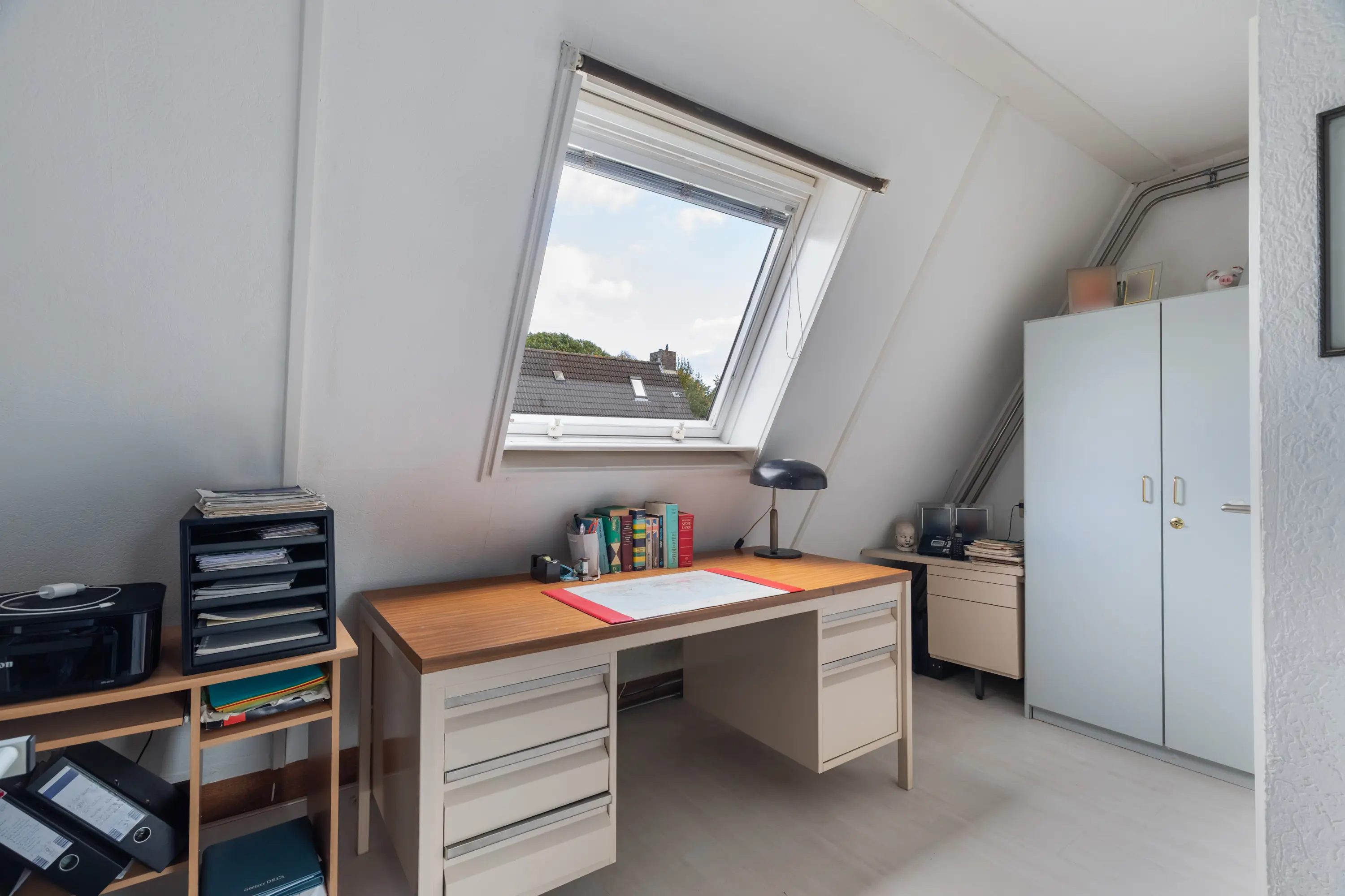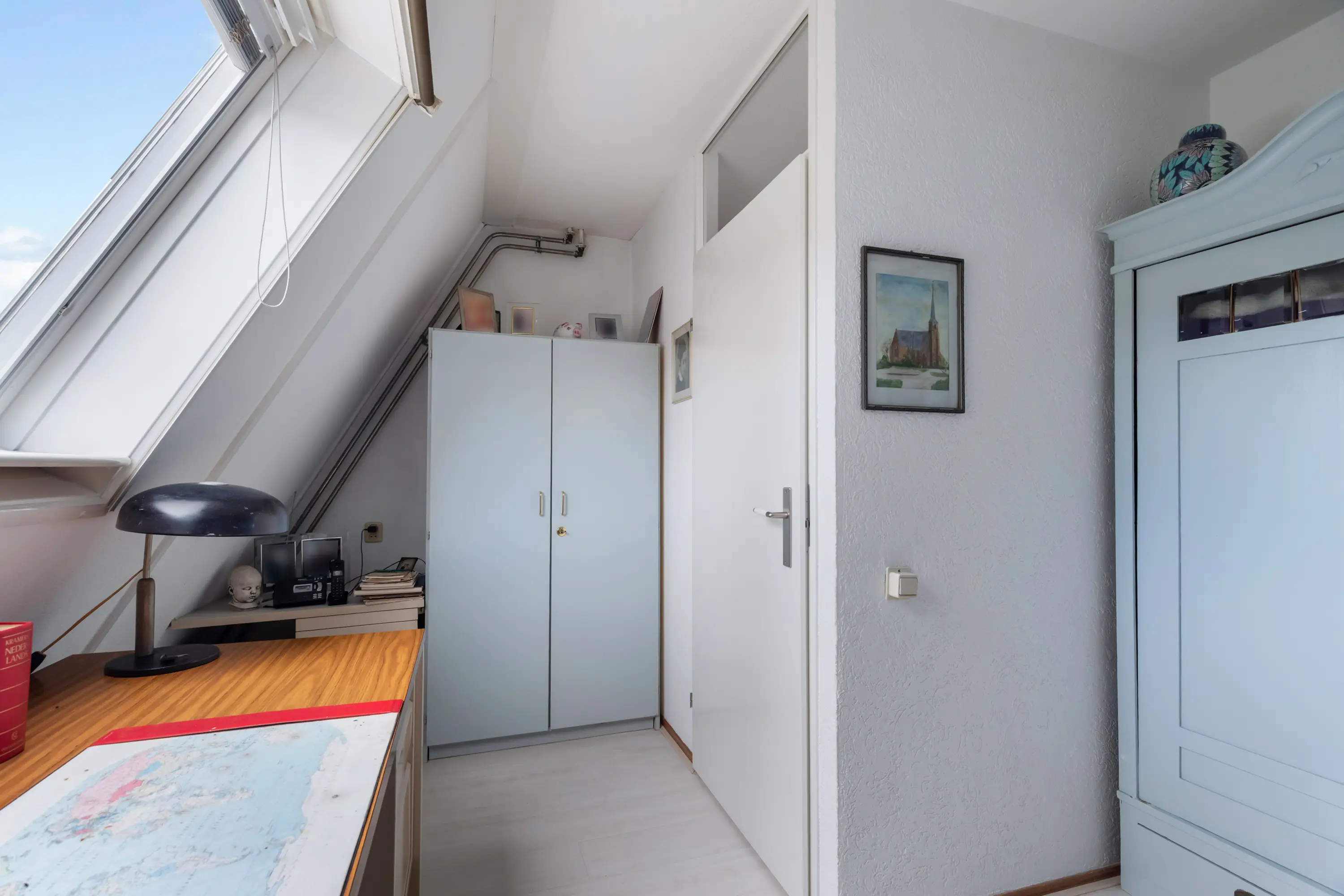 Via een vaste trap bereik je de zolderverdieping, waar een vierde slaapkamer is gecreëerd. Ook hier zorgen de dakramen voor veel licht, waardoor de ruimte perfect inzetbaar is als slaapkamer, werkplek of hobbykamer.