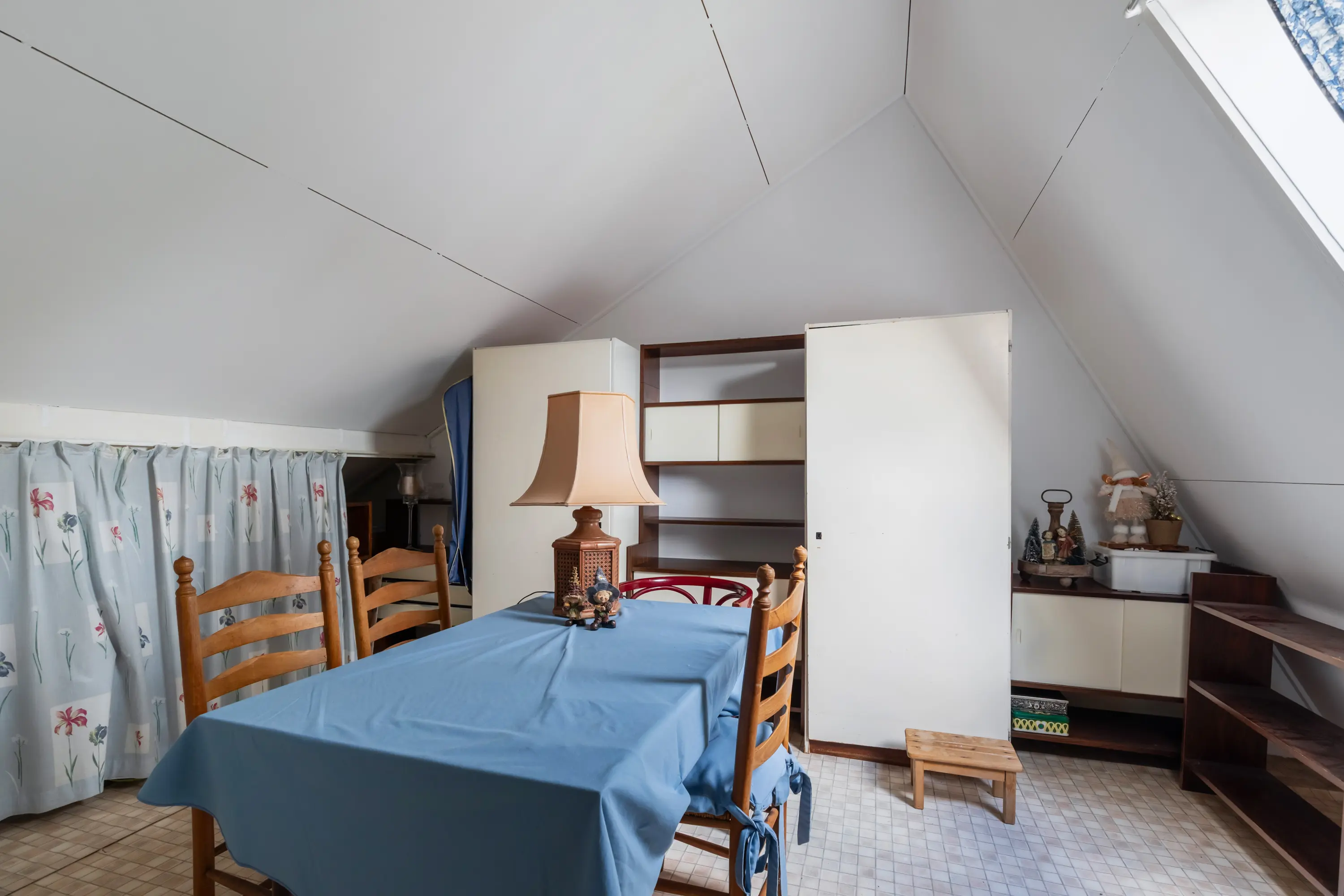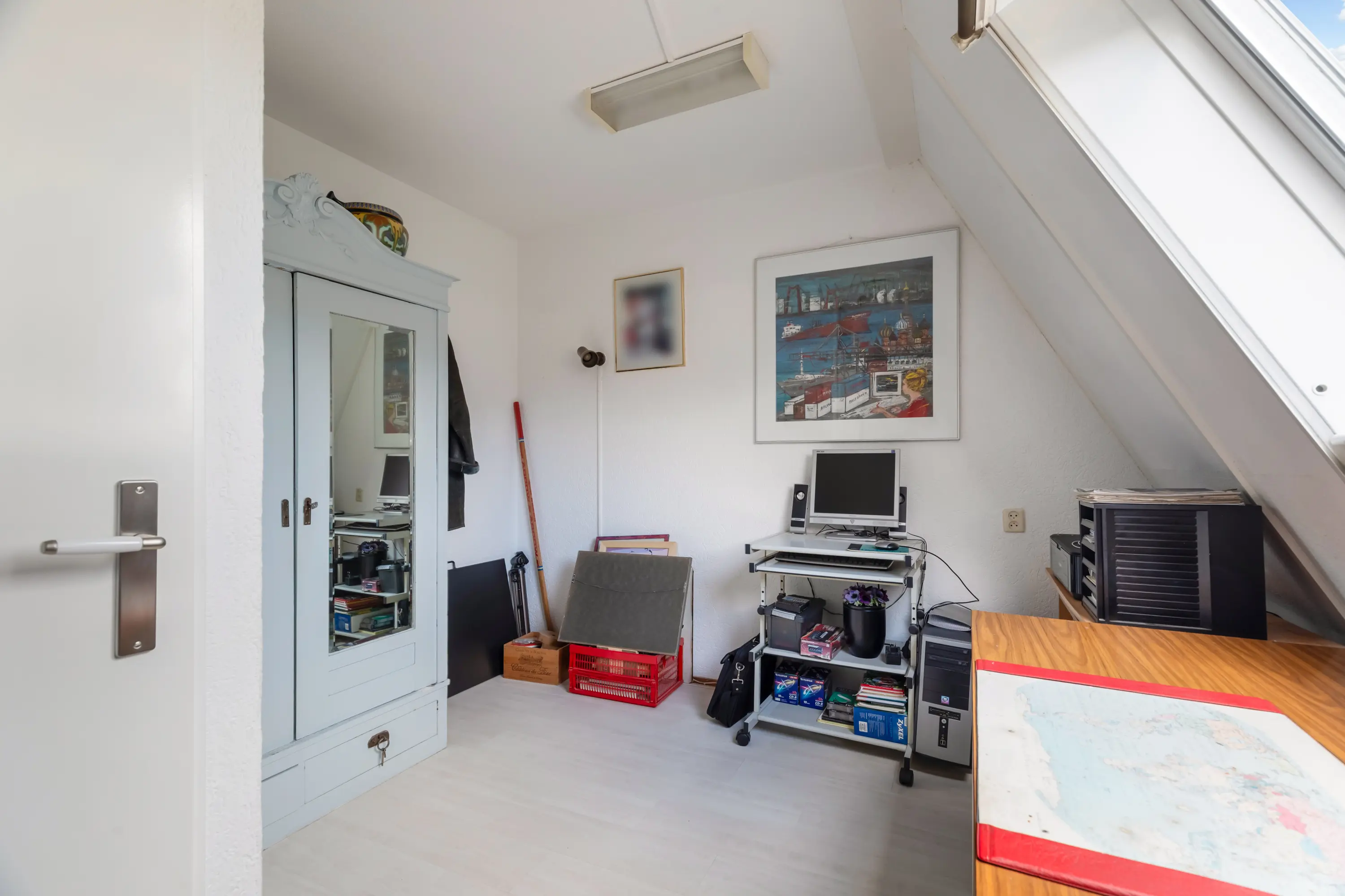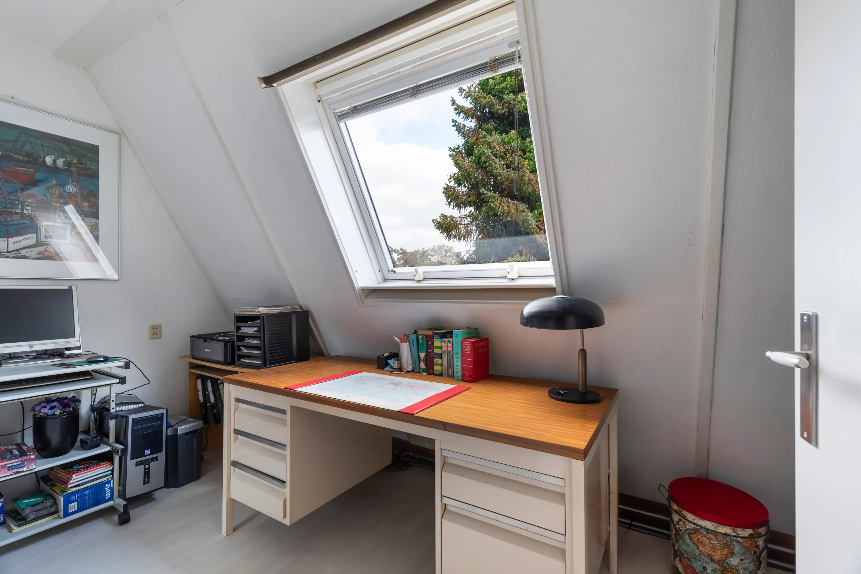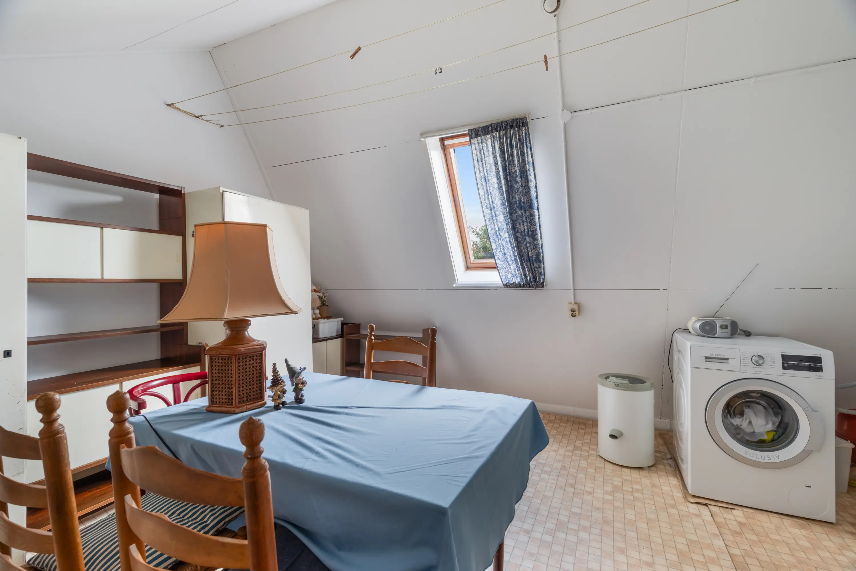 Via een vaste trap bereik je de zolderverdieping, waar een vierde slaapkamer is gecreëerd. Ook hier zorgen de dakramen voor veel licht, waardoor de ruimte perfect inzetbaar is als slaapkamer, werkplek of hobbykamer.