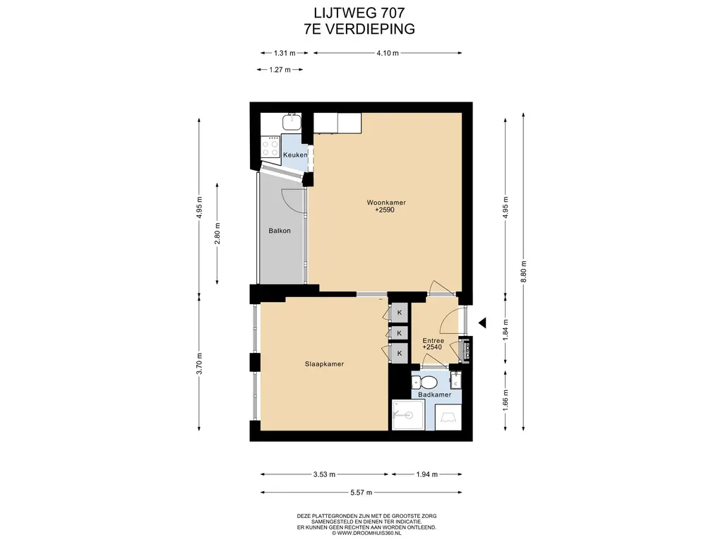 Upon entering the apartment there is a closet in the hall with facilities for a washer/dryer and wardrobe space. The hall also gives access to the modern luxurious bathroom with rain shower, toilet and washbasin. The living room has a light laminate floor and an access door to the covered west-facing balcony. The modern kitchen is equipped with an induction hob with extractor hood, a combination oven with microwave and a fridge-freezer combination.