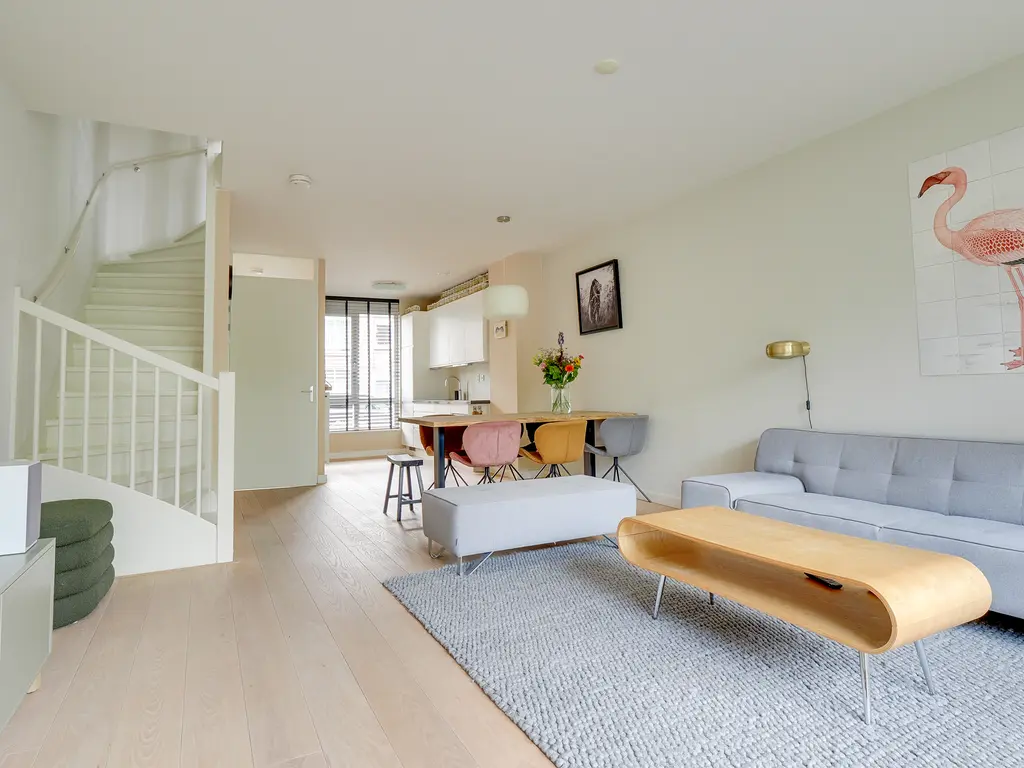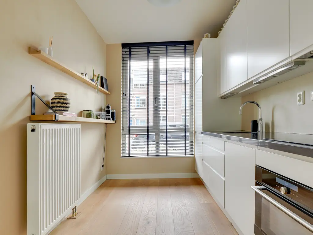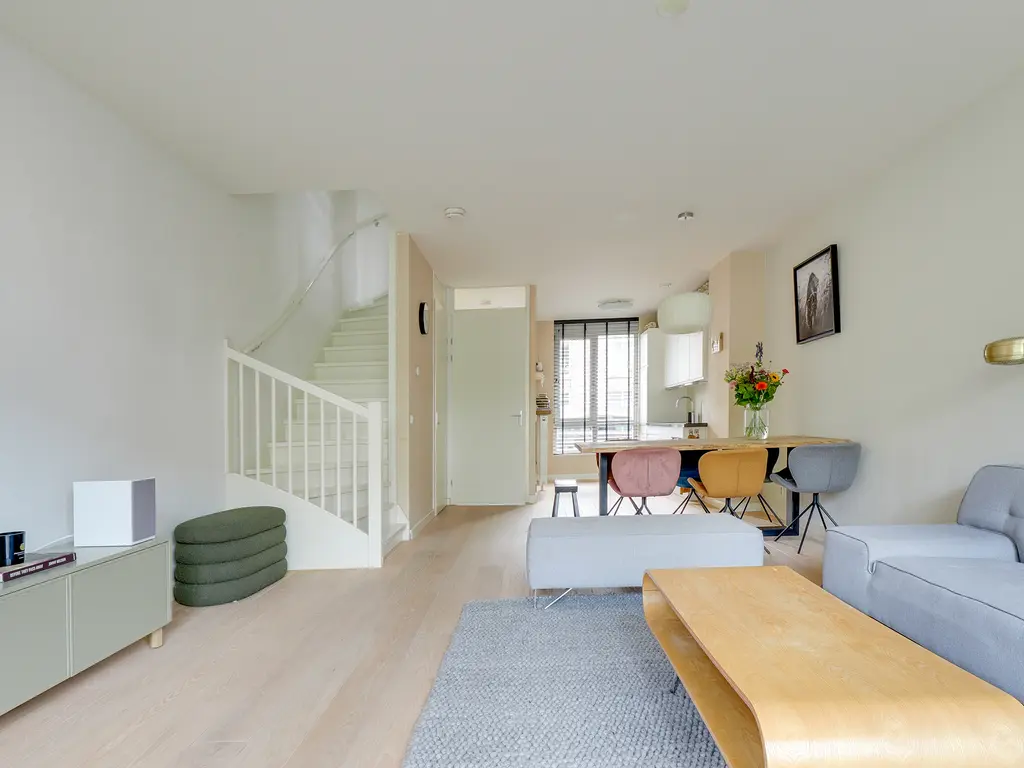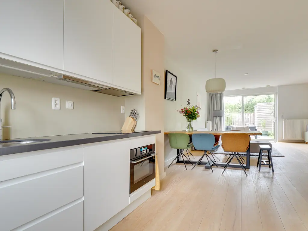 De lichte woonkamer van ca. 31 m² is voorzien van een open trap en grote raampartijen, waardoor er veel daglicht binnenvalt. De open keuken met inbouwapparatuur vormt het hart van de woning. De keuken (uit 2010) is in de afgelopen jaren gemoderniseerd met een nieuwe kookplaat (2025), koelkast (2023), Quooker (2020) en combi-oven (2019) en vaatwasser. Hier kook je met plezier in een eigentijdse, goed uitgeruste ruimte.