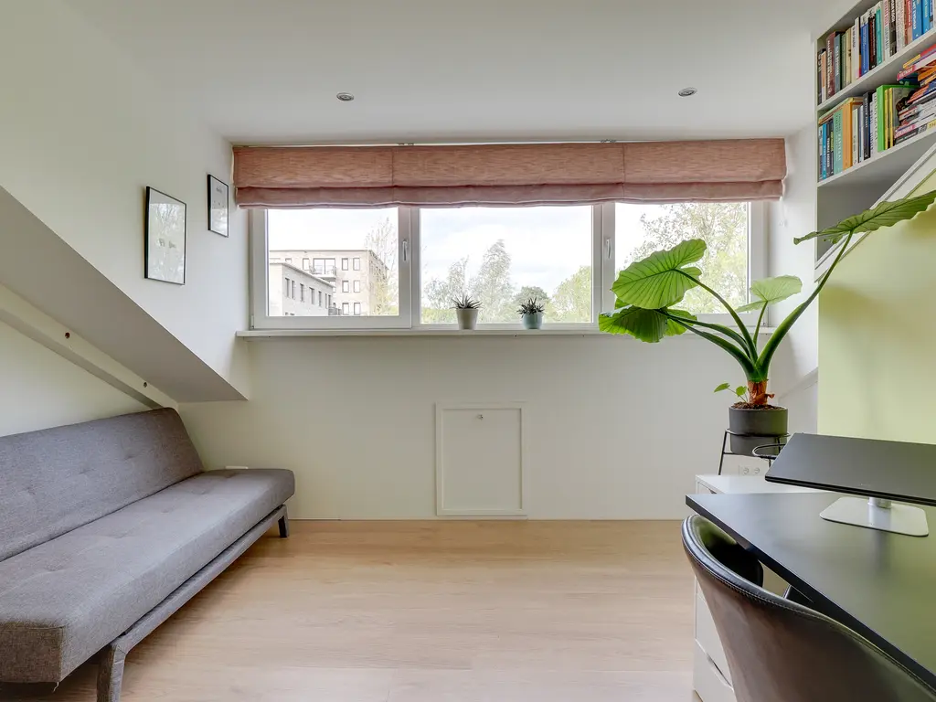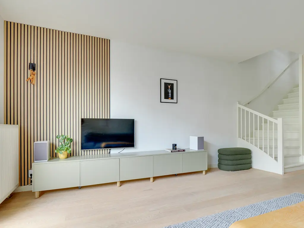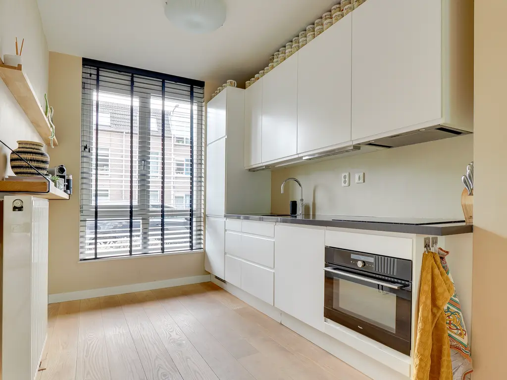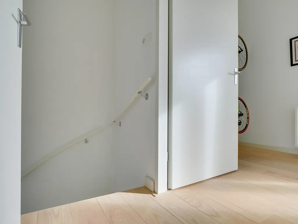 De lichte woonkamer van ca. 31 m² is voorzien van een open trap en grote raampartijen, waardoor er veel daglicht binnenvalt. De open keuken met inbouwapparatuur vormt het hart van de woning. De keuken (uit 2010) is in de afgelopen jaren gemoderniseerd met een nieuwe kookplaat (2025), koelkast (2023), Quooker (2020) en combi-oven (2019) en vaatwasser. Hier kook je met plezier in een eigentijdse, goed uitgeruste ruimte.