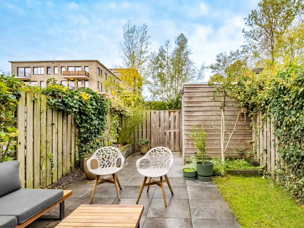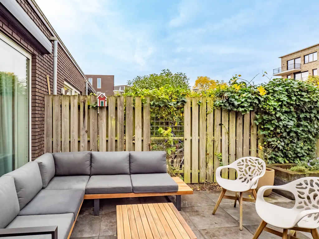 Achter de woning ligt een verzorgde achtertuin van circa 37 m² op het noordwesten, met een handige achterom. In de tuin staat een vrijstaande houten berging, ideaal voor het opbergen van fietsen en tuingereedschap. In 2021 is de tuin vernieuwd met een terras van keramische tegels, plantenbakken en een duurzaam sedumdak.