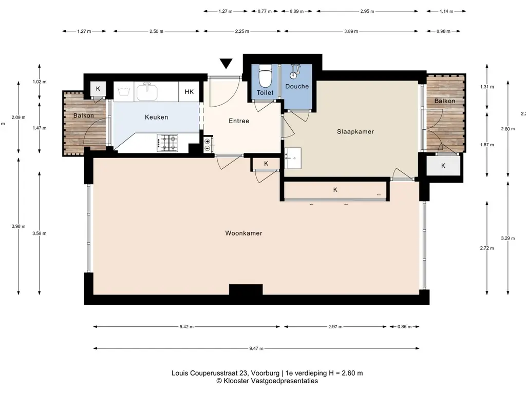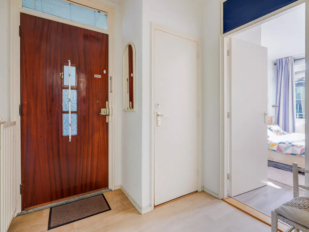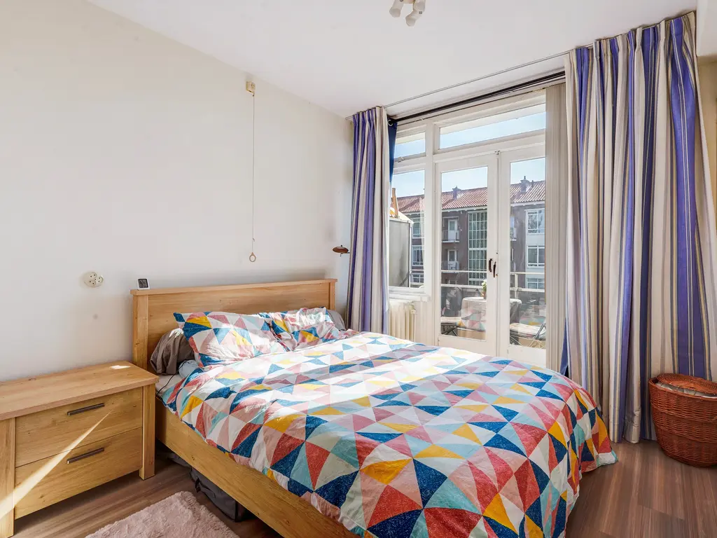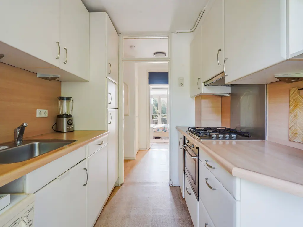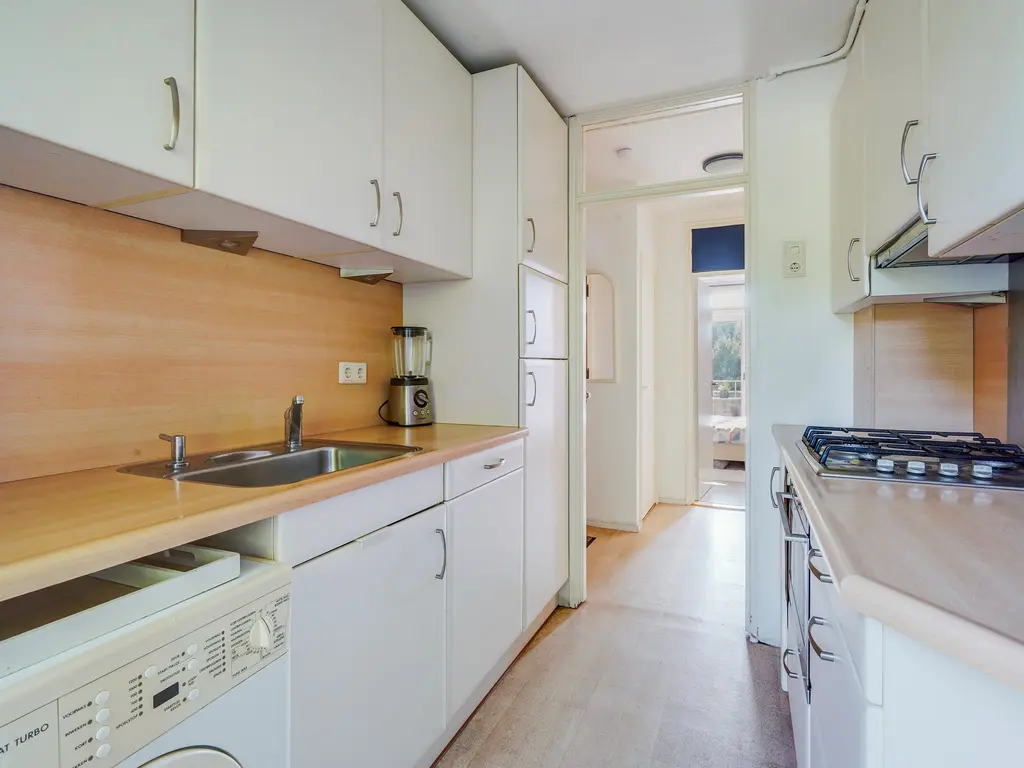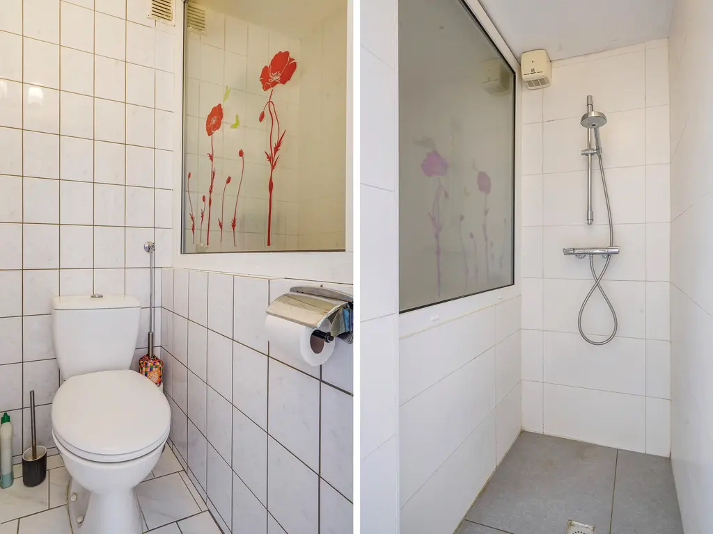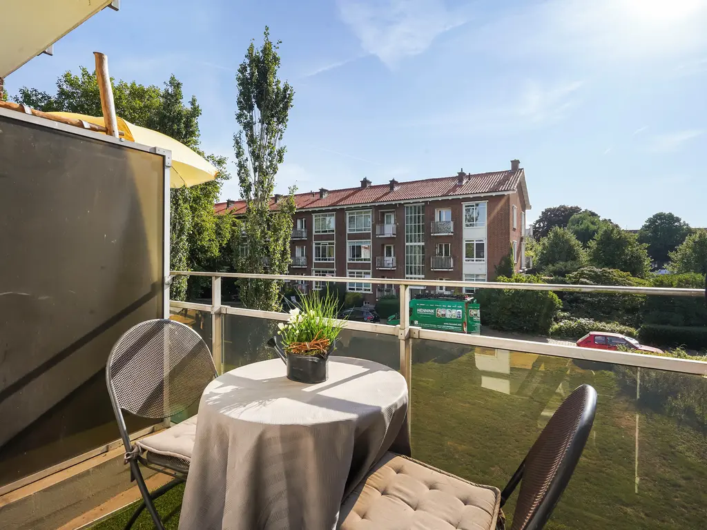 Afgesloten portiek met trapopgang naar de eerste verdieping. Entree van het appartement via een ruime hal met meterkast en toilet. Vanuit de hal kom je in de royale woon-/eetkamer, waar eventueel een extra slaapkamer van te maken is. De woonkamer beschikt over een prettige werkplek en handige inbouwkasten. De naastgelegen keuken is eenvoudig maar netjes en voorzien van een 4-pits gaskookplaat, afzuigkap, vaatwasser en koelkast met vriesvak. Vanuit de woonkamer heb je toegang tot het eerste balkon. De slaapkamer is ruim opgezet en beschikt over een wastafel, toegang tot de douche en het tweede, zonnige balkon. Daarnaast is er nog een handige berging op de begane grond voor bijvoorbeeld je fiets.