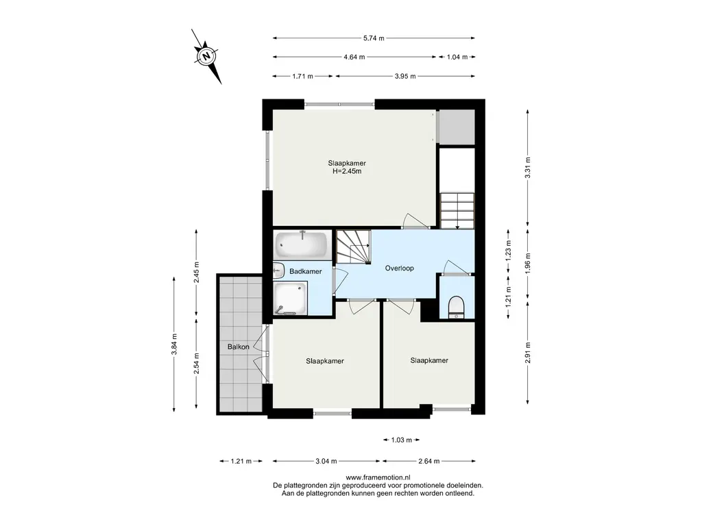 De overloop biedt toegang tot drie slaapkamers, de badkamer en een apart toilet.