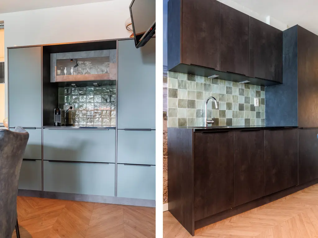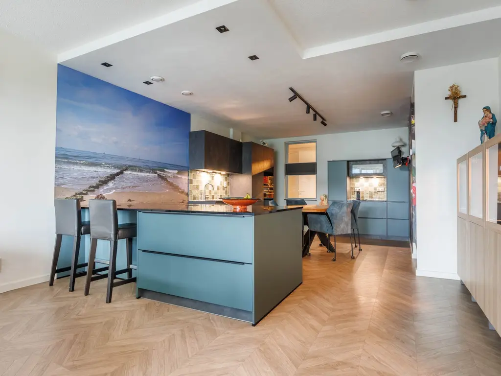 Ruime hal met een gezellige nis met zitje en toegang tot alle ruimtes. De ruime woonkamer heeft een open grote luxe woonkeuken met kook(schier)eiland met zitje en diverse inbouwapparatuur zoals o.a. een inductiekookplaat met ingebouwde afzuiging, oven, magnetron, vaatwasser en grote koelkast. De sfeervolle keuken bestaat uit drie delen, een kookeiland, een deel met spoelbak en een deel met een gezellige koffiecorner. Meer dan voldoende werk- en opbergruimte dus!