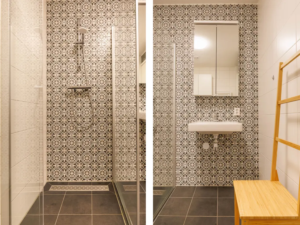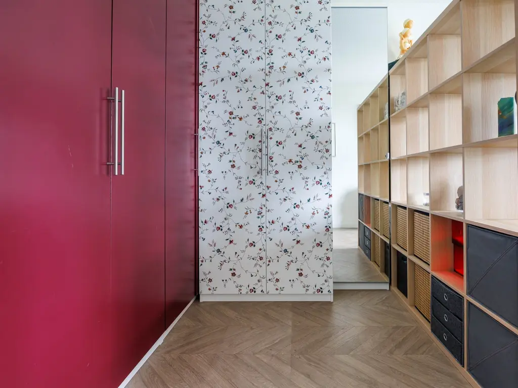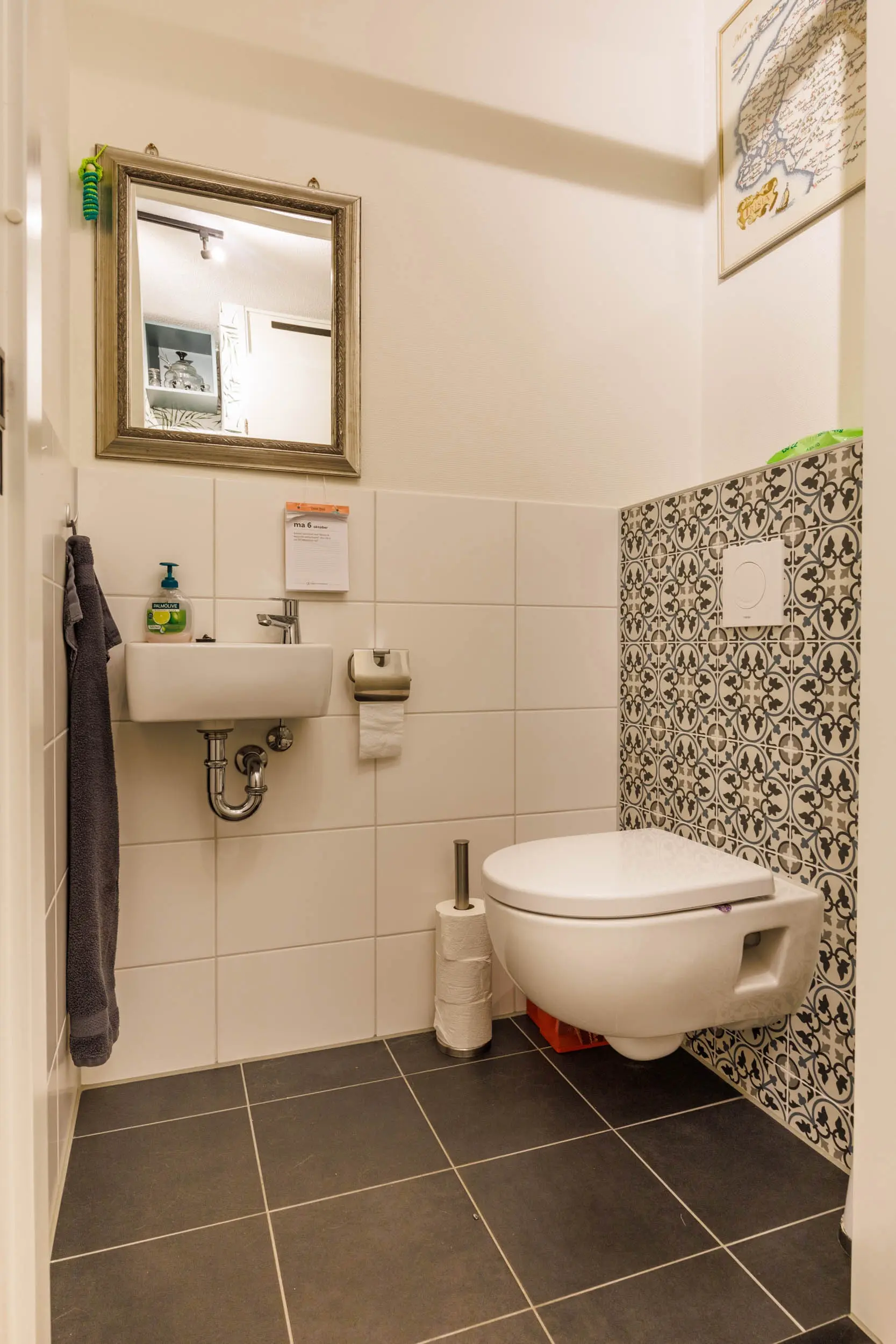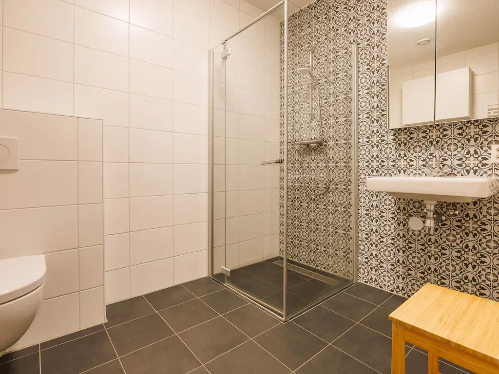 The spacious three-room apartment (formerly four-room) is located on the sixth floor with beautiful views and features a luxurious kitchen, a modern bathroom, a loggia, two toilets, an internal storage room, and a stunning laminate floor with underfloor heating and cooling. In addition, the apartment includes an external storage space directly opposite the front door, an extra (rented) storage unit on the ground floor, and a private spot in the bicycle storage for two bikes. The entire complex is completely gas-free, equipped with an energy-efficient heat pump system (WTW), and built with sustainability in mind.