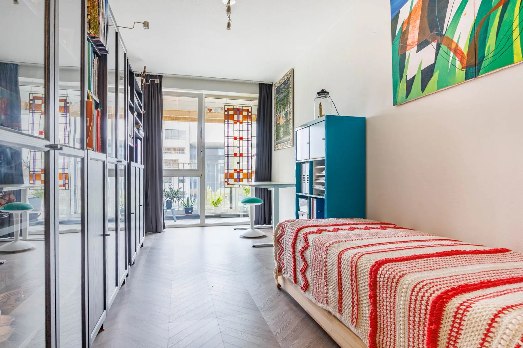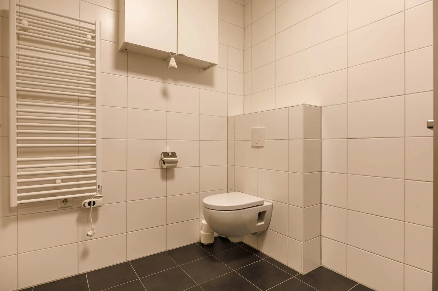 Vanuit de woonkamer is het gezellige balkon/loggia bereikbaar. Daarnaast bevinden zich de twee royale slaapkamers waarvan er één zo ruim is dat daar, naast het slaapgedeelte, bijvoorbeeld ook nog een werkplek of kleedruimte kan worden gecreëerd. De ruime moderne badkamer beschikt over een inloopdouche, een wastafel/spiegel, mechanische ventilatie, een toilet en een designradiator. In de hal bevindt zich nog een separaat toilet met fonteintje. Ook is er nog een inpandige berging/technische ruimte waarin, naast extra bergruimte, de technische installatie zich bevindt voor de WTW en de wasopstelling.