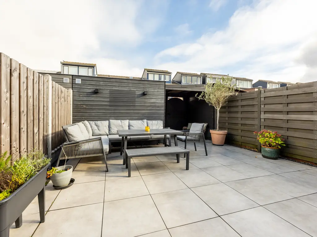 Via de schuifpui stap je direct de verzorgde achtertuin welke is vernieuwd in 2021 in, gelegen op het noordoosten. De tuin is onderhoudsvriendelijk aangelegd, biedt veel privacy en beschikt over een achterom en een ruime berging.