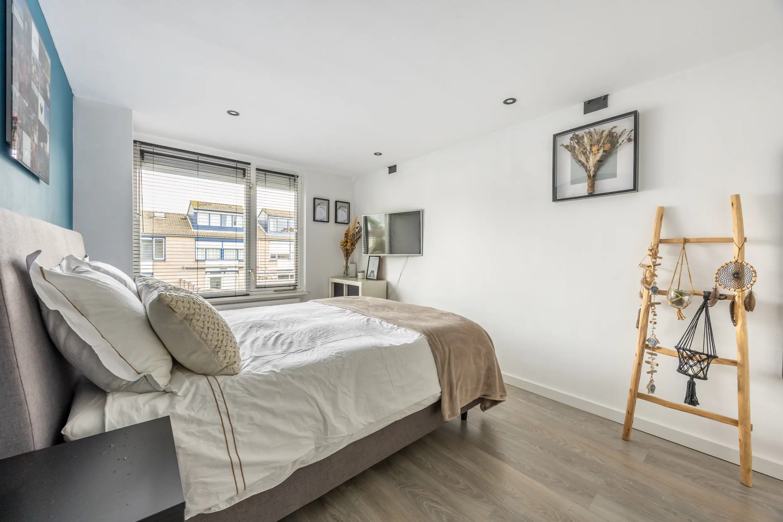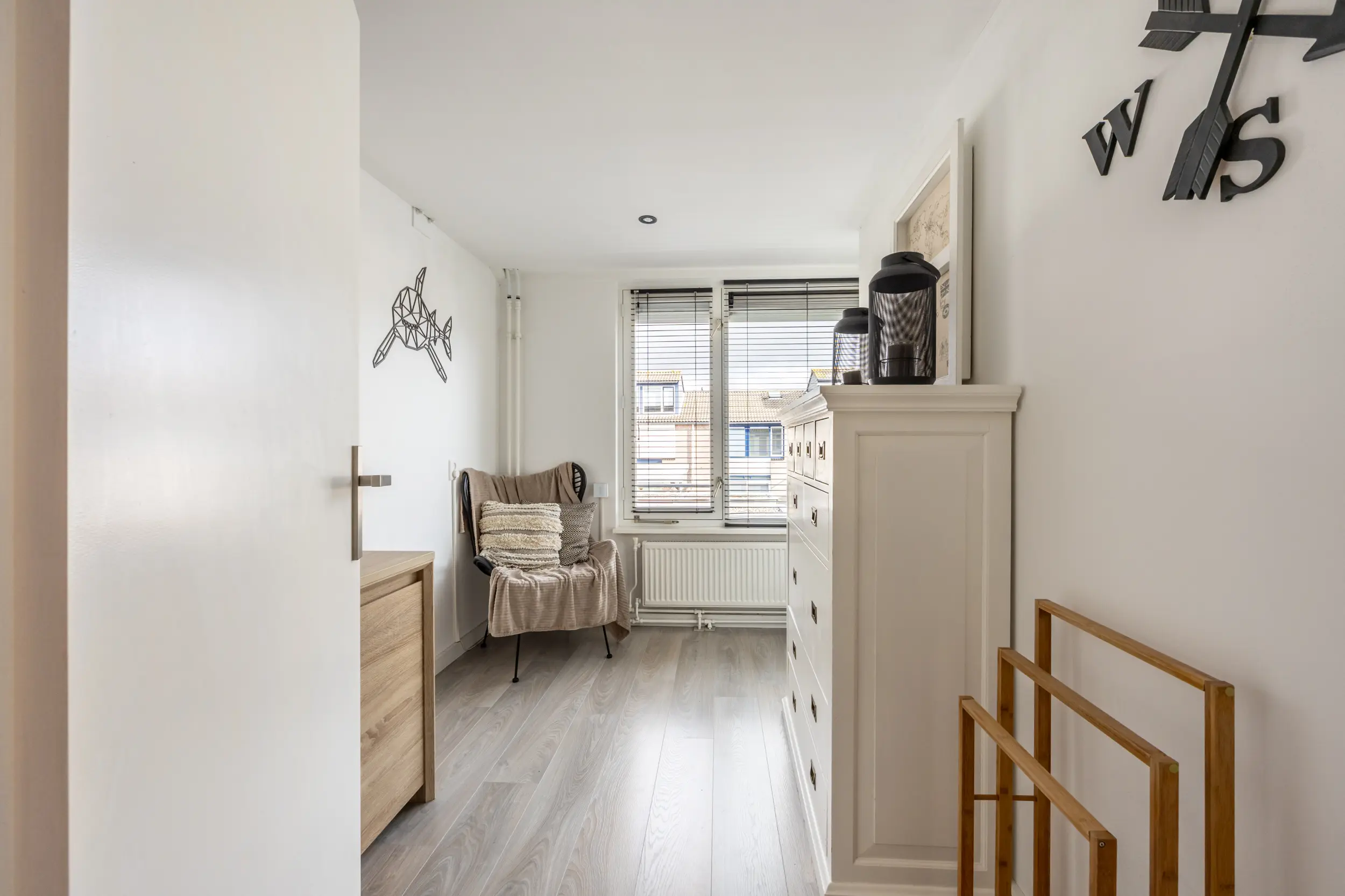 Ook de eerste verdieping is smaakvol afgewerkt. Via de overloop zijn drie slaapkamers en de badkamer bereikbaar. De kamers zijn voorzien van een laminaatvloer en gestucte wanden, wat zorgt voor een rustige en verzorgde uitstraling.