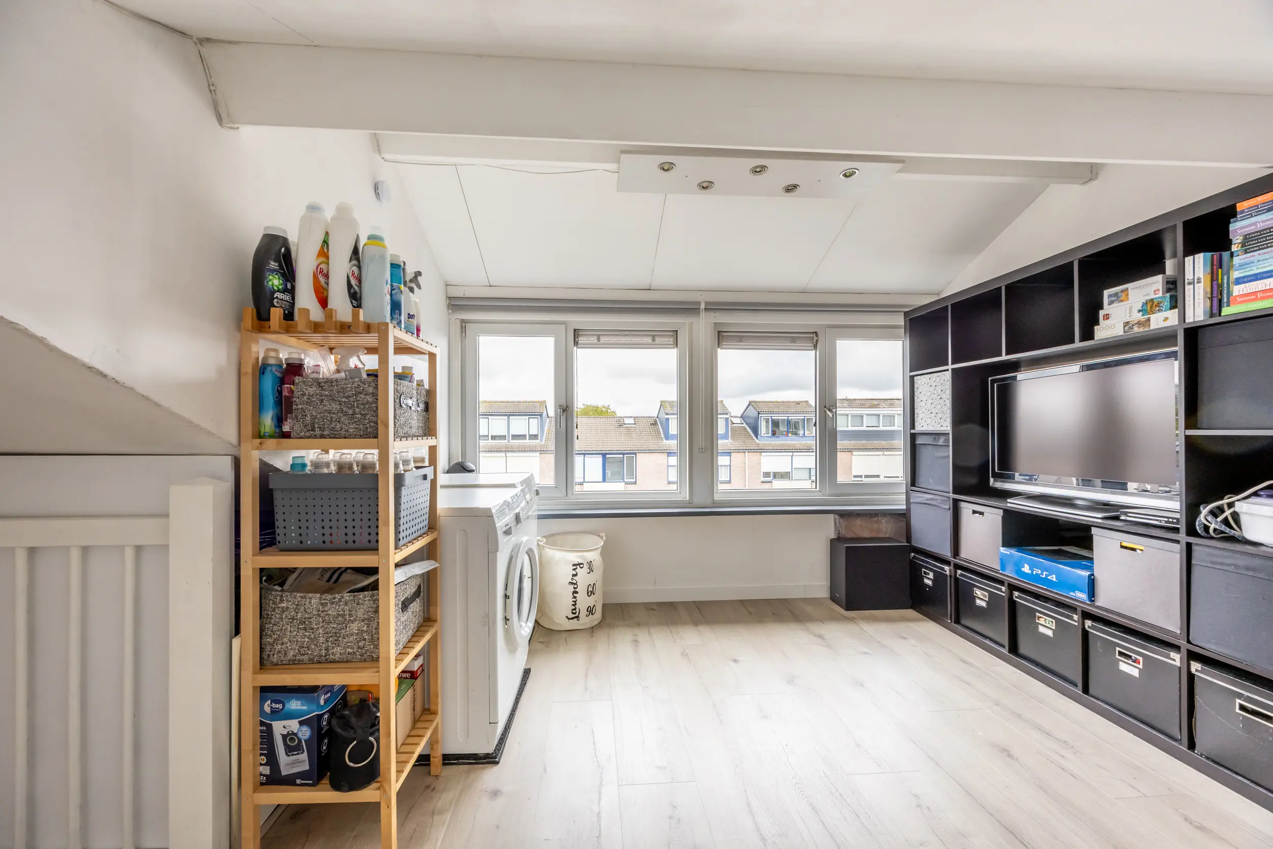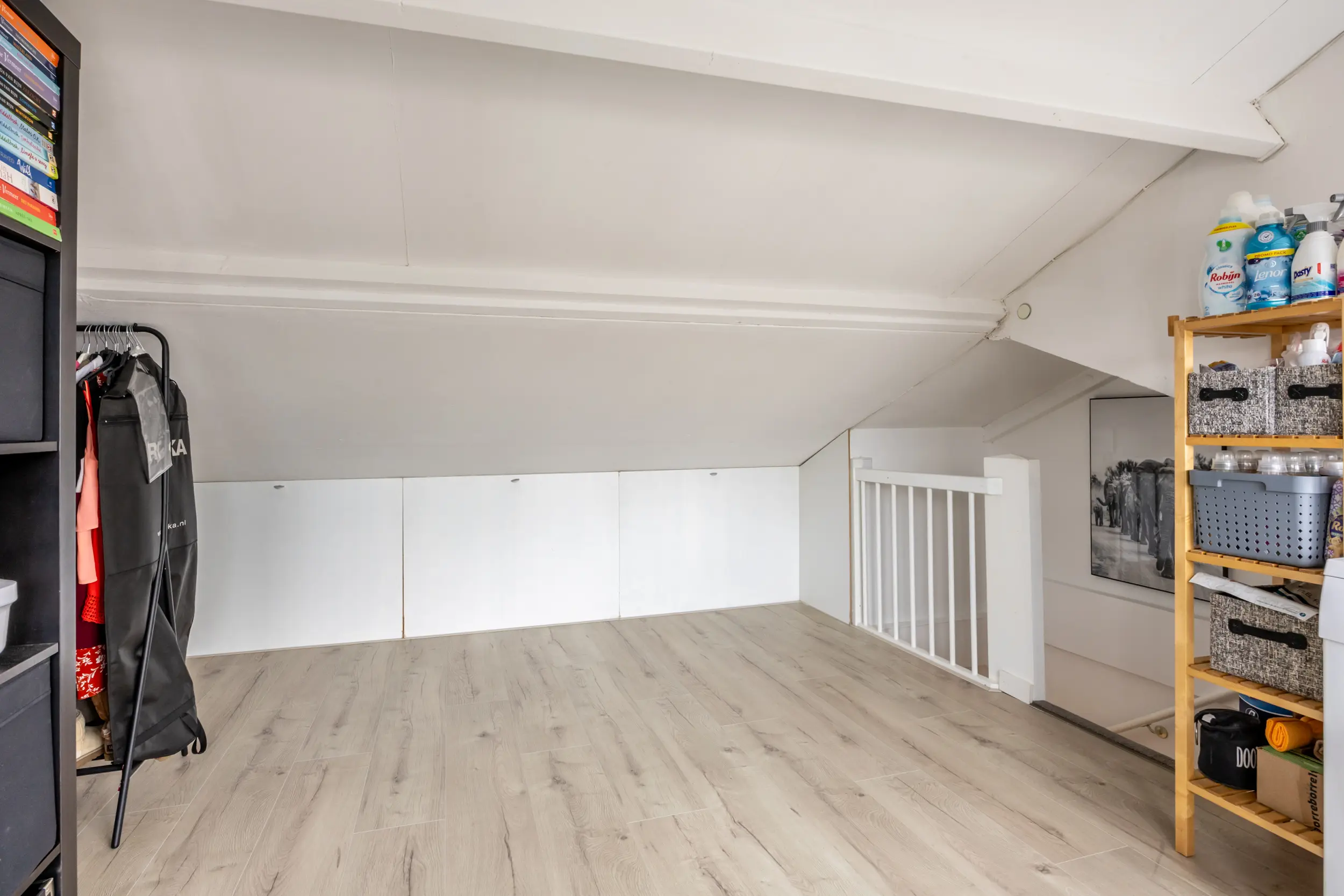Via een vaste trap bereik je de tweede verdieping, waar zich een ruime zolder bevindt met volop mogelijkheden. Deze ruimte is ideaal als vierde slaapkamer, werkkamer of hobbyruimte. Daarnaast is er ruimte voor de wasmachine en droger. Een praktische en flexibele verdieping die je eenvoudig kunt aanpassen aan je eigen wensen.
