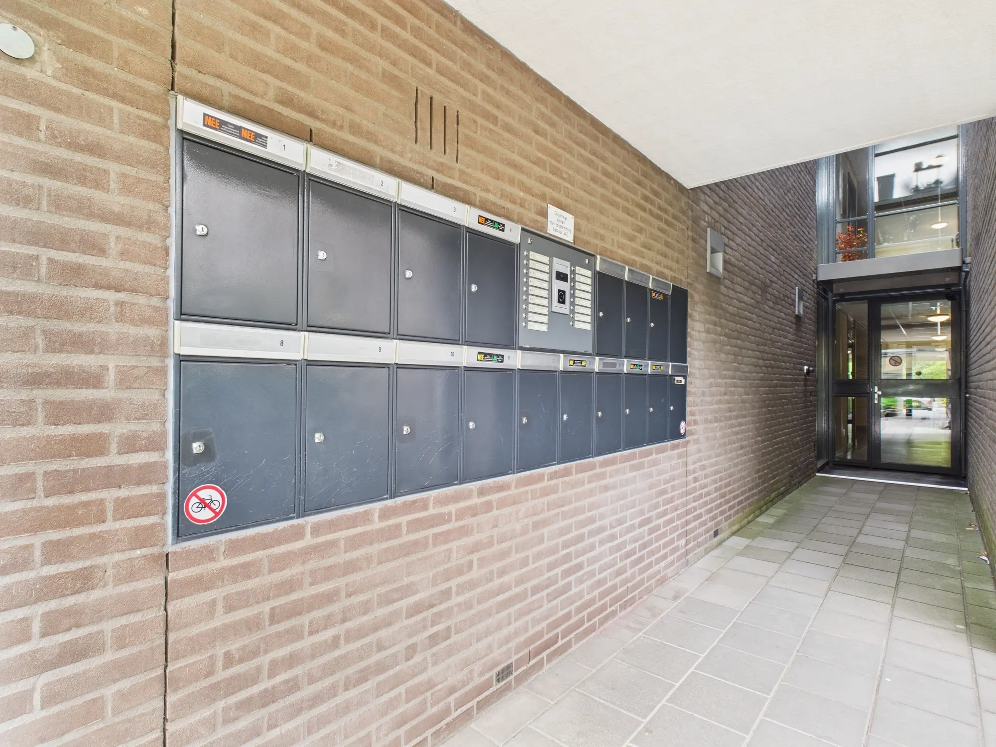 De entree aan de voorzijde van het complex biedt middels een elektrische deur met een recent vernieuwd video-/intercomsysteem toegang tot het gebouw. Vanuit hier kunt u met de lift of het trappenhuis ook naar de bovengelegen verdiepingen. Tevens kunt u vanuit de entree naar de eigen berging. Het parkeerterrein is afgesloten door middel van een slagboom welke met uw eigen afstandsbediening geopend kan worden.