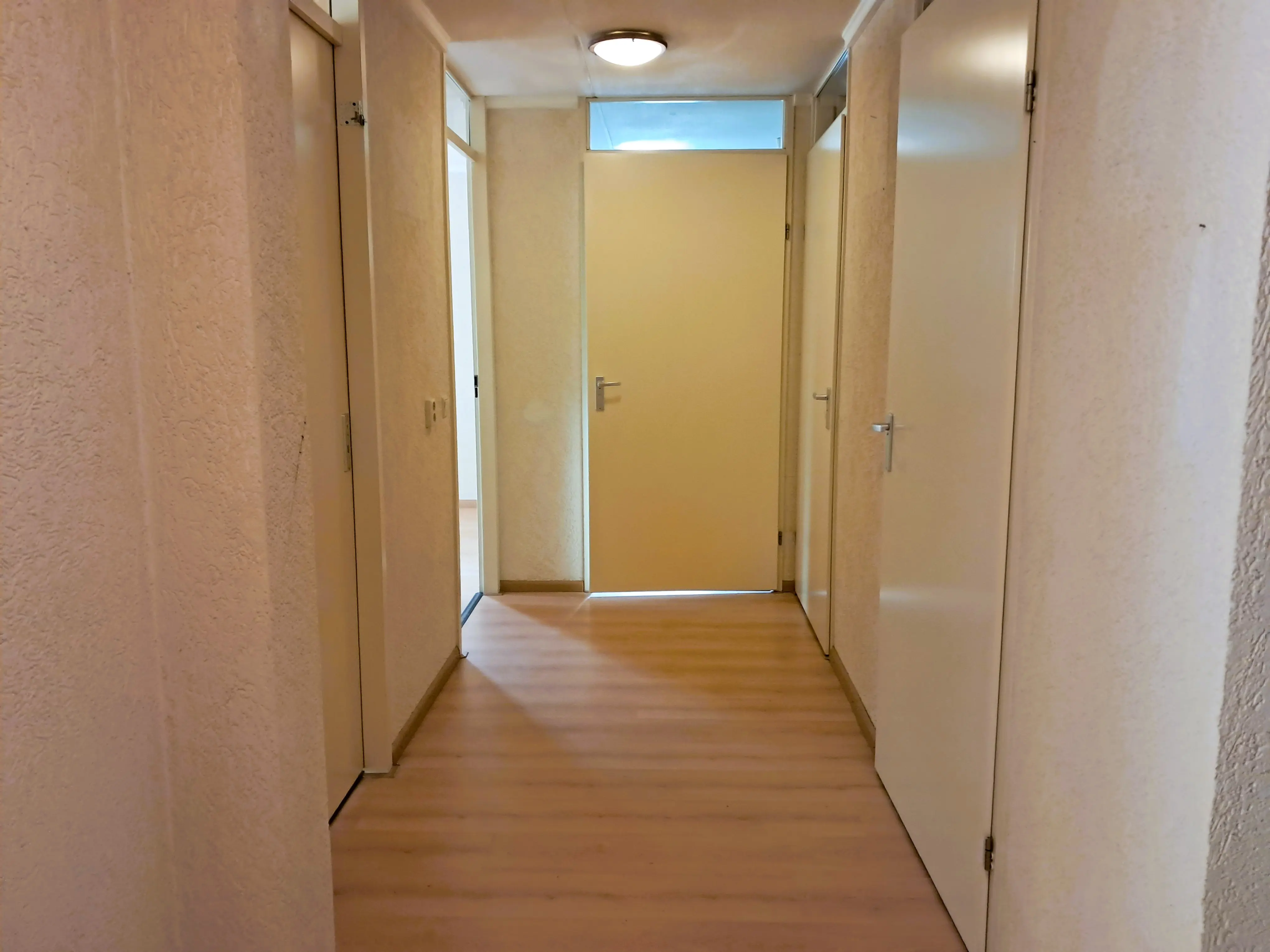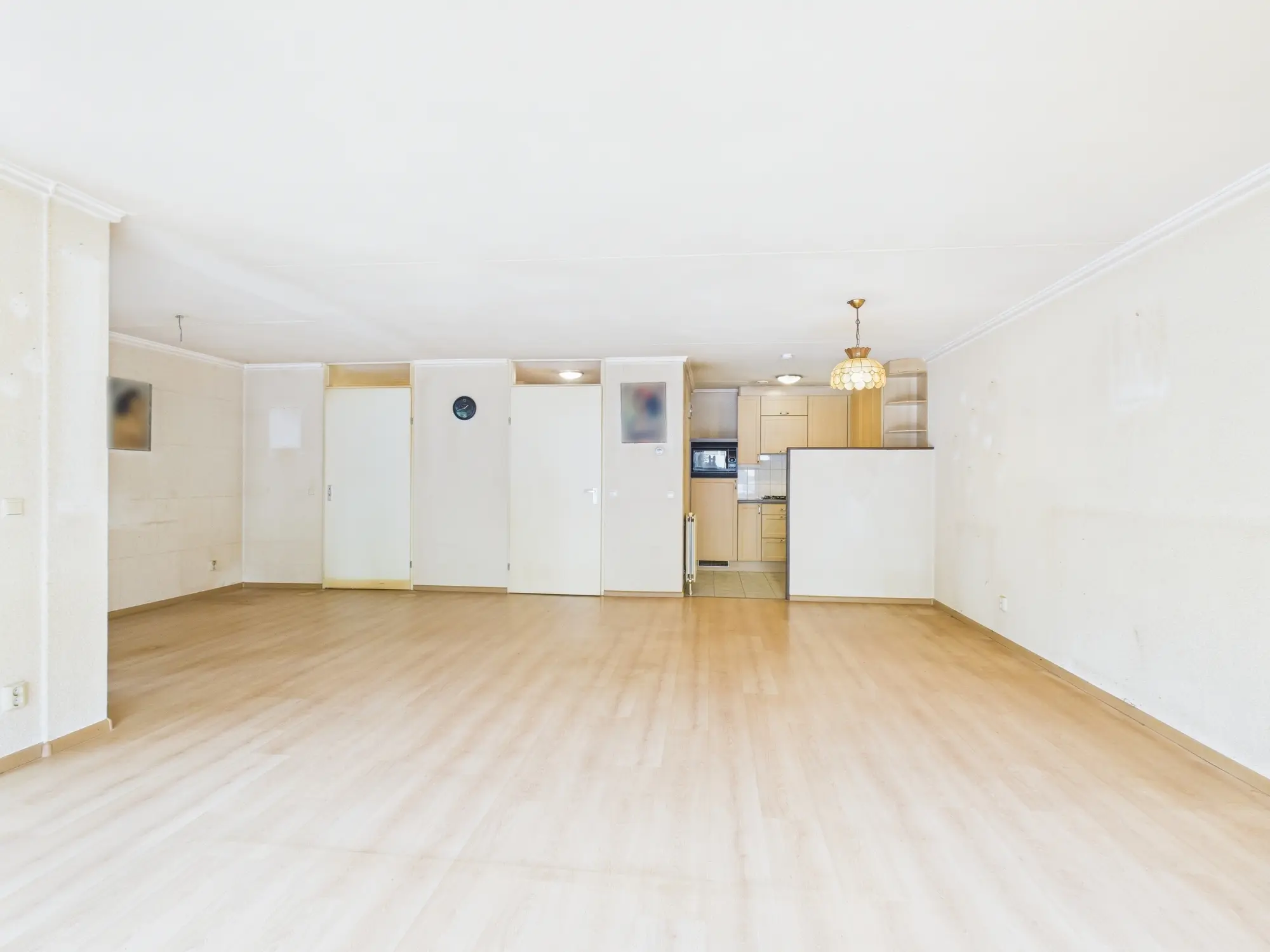 Bij binnenkomst van de hal is de eerste deur aan de rechterzijde de toegang tot het appartement. Een royale hal geeft toegang tot alle ruimtes. De woonkamer met open keuken is aan de voorzijde gelegen met een heerlijk uitzicht. Doordat er momenteel een slaapkamer bij de woonkamer getrokken is geeft dit een geweldige leefruimte. Door het plaatsen van een wand is de slaapkamer weer eenvoudig terug te brengen.