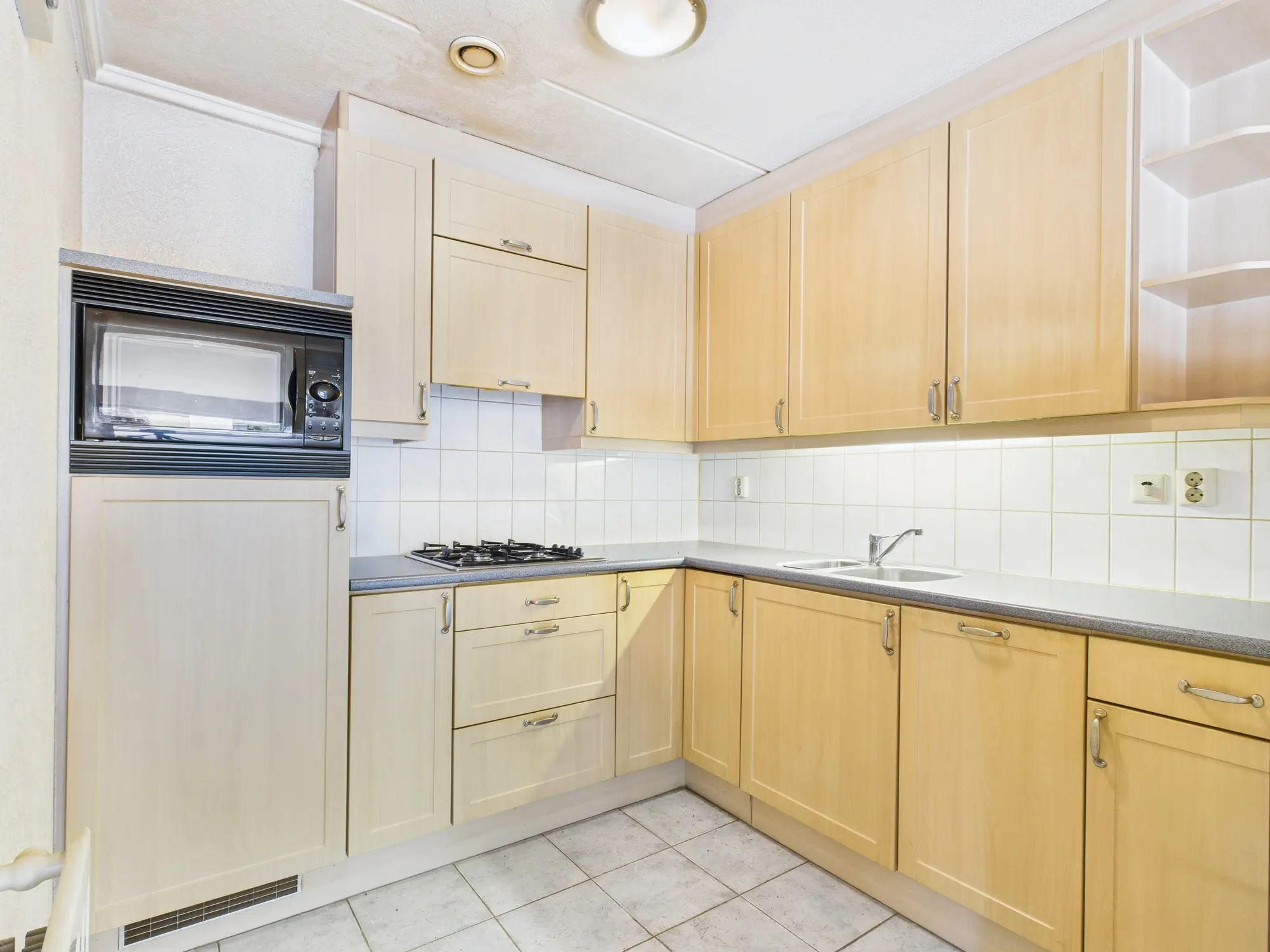 Vanuit de woonkamer stapt u via een schuifpui op het grote overdekte terras van maar liefst 17 m²! Het overdekte terras is gelegen op het Zuiden waardoor er van de ochtend tot de avond van de zon genoten kan worden. De halfopen keuken is voorzien van een L-vormige inrichting voorzien van diverse apparatuur zoals een combi-oven/magnetron, een 4-pits gaskookplaat met afzuigkap, koelkast en vaatwasser.
