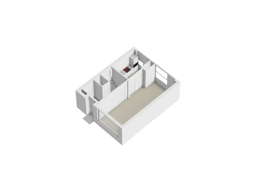 Momenteel ontbreekt één rood keukenkastje; dit kastje is aanwezig en zal vóór de oplevering worden gemonteerd.