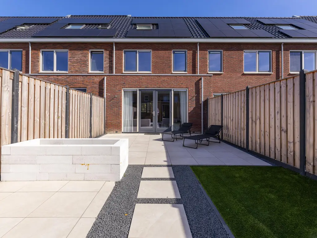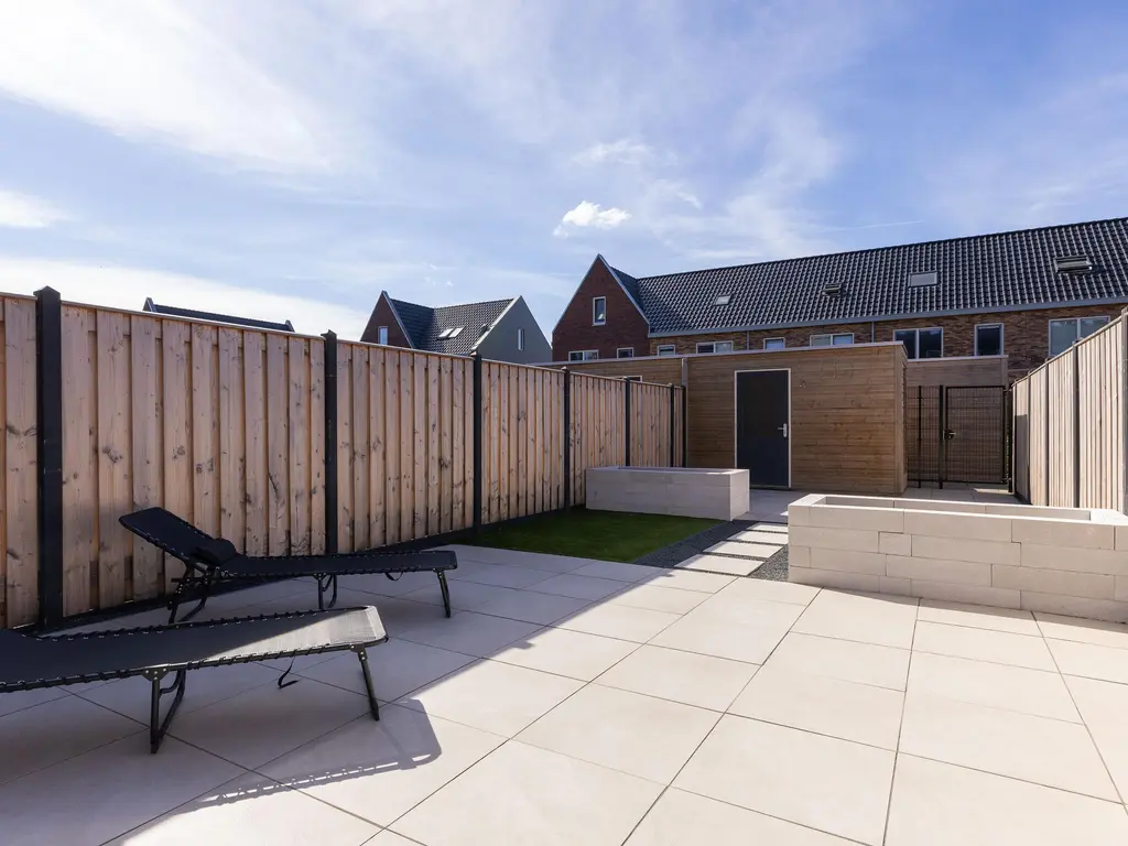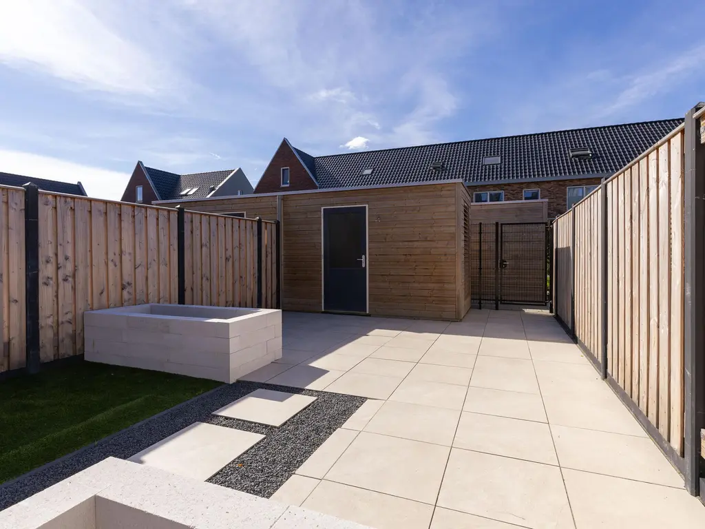 De moderne tuin is volledig aangelegd, gelegen op het zonnige zuidwesten en voorzien van een achterom en een vrijstaande houten berging. Hier geniet je van de middag- en avondzon, privacy en comfort.