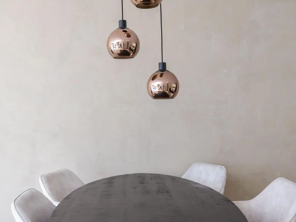 De woonkamer is heerlijk licht en ruim, mede dankzij de uitbouw aan de achterzijde. De lichte visgraatvloer en de zachte tinten op de wanden zorgen voor een rustige, moderne uitstraling. De grote raampartijen met openslaande deuren geven een mooie verbinding met de tuin en de ruime trapkast zorgt voor de nodige bergruimte.
