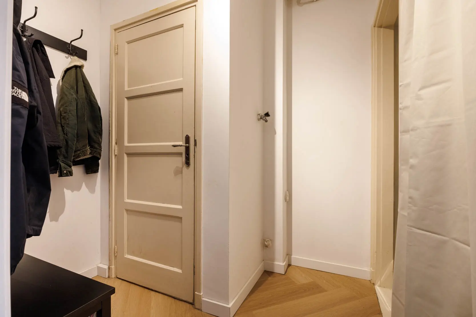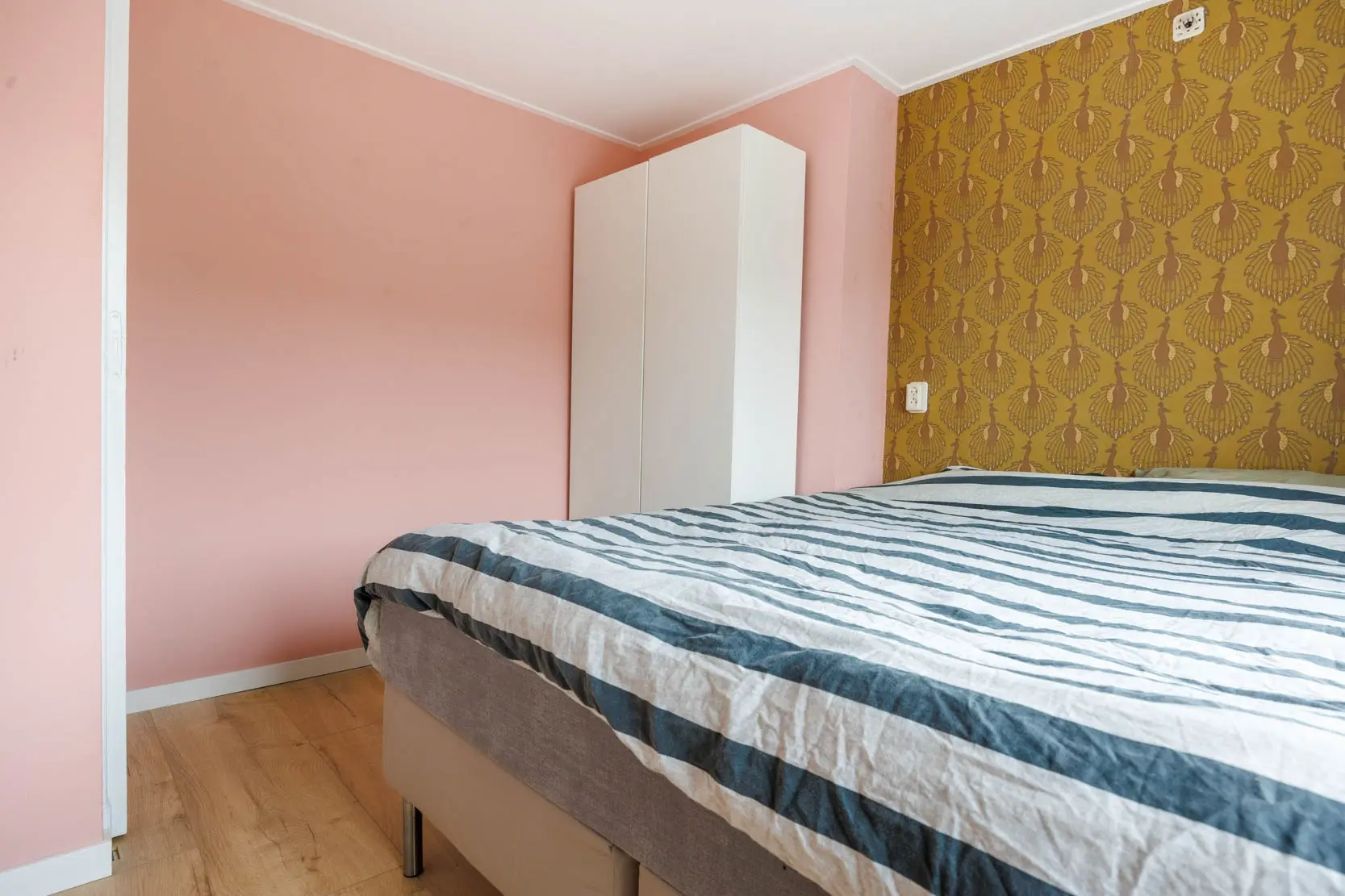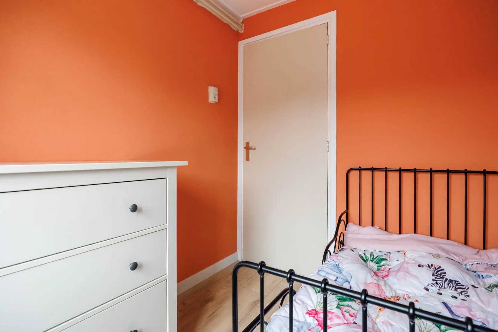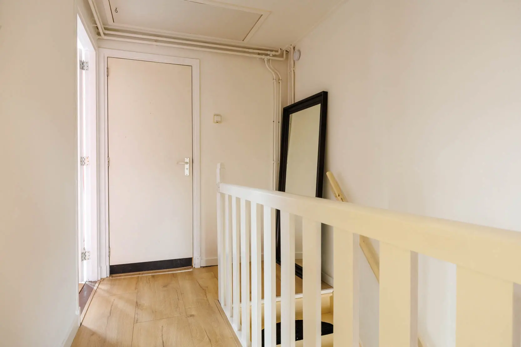 Overloop met toegang tot drie slaapkamers en de badkamer. Aan de voorzijde van de woning treft men twee slaapkamers waarvan één slaapkamer is voorzien van een handige inbouwkast. De derde slaapkamer bevindt zich aan de achterzijde van de woning en is tevens voorzien van een inbouwkast. De moderne badkamer uit 2022 is voorzien van een inloopdouche, een wastafelmeubel en een handdoekradiator.