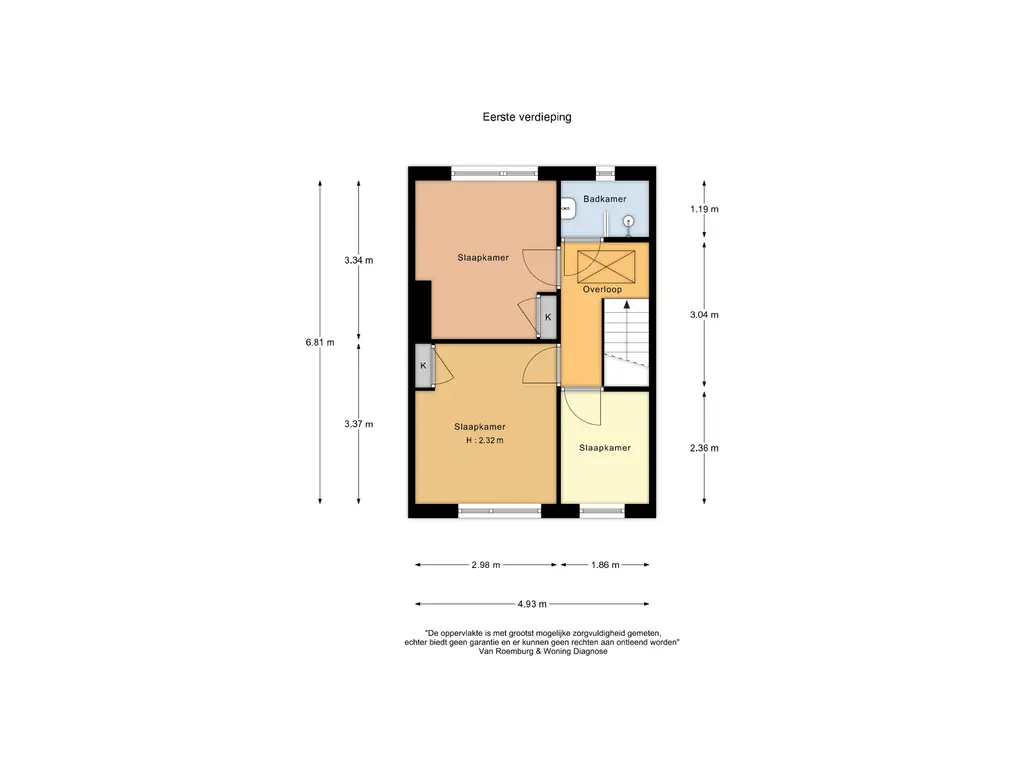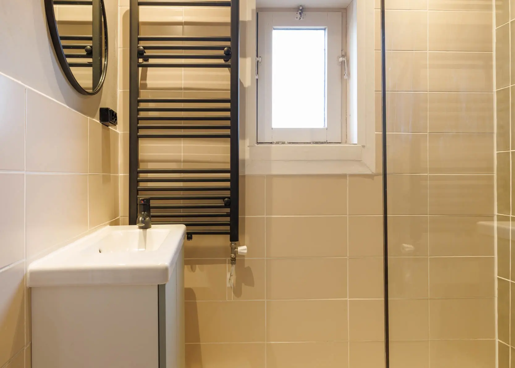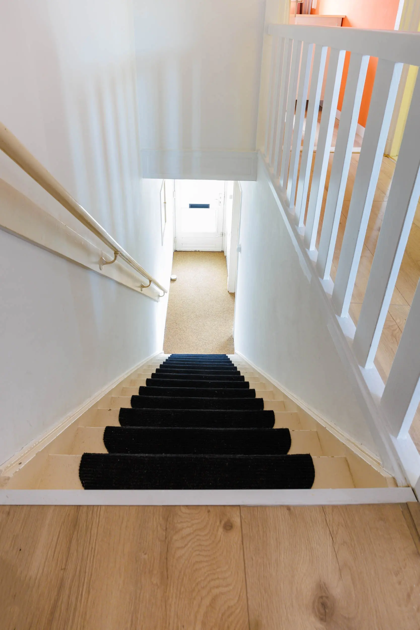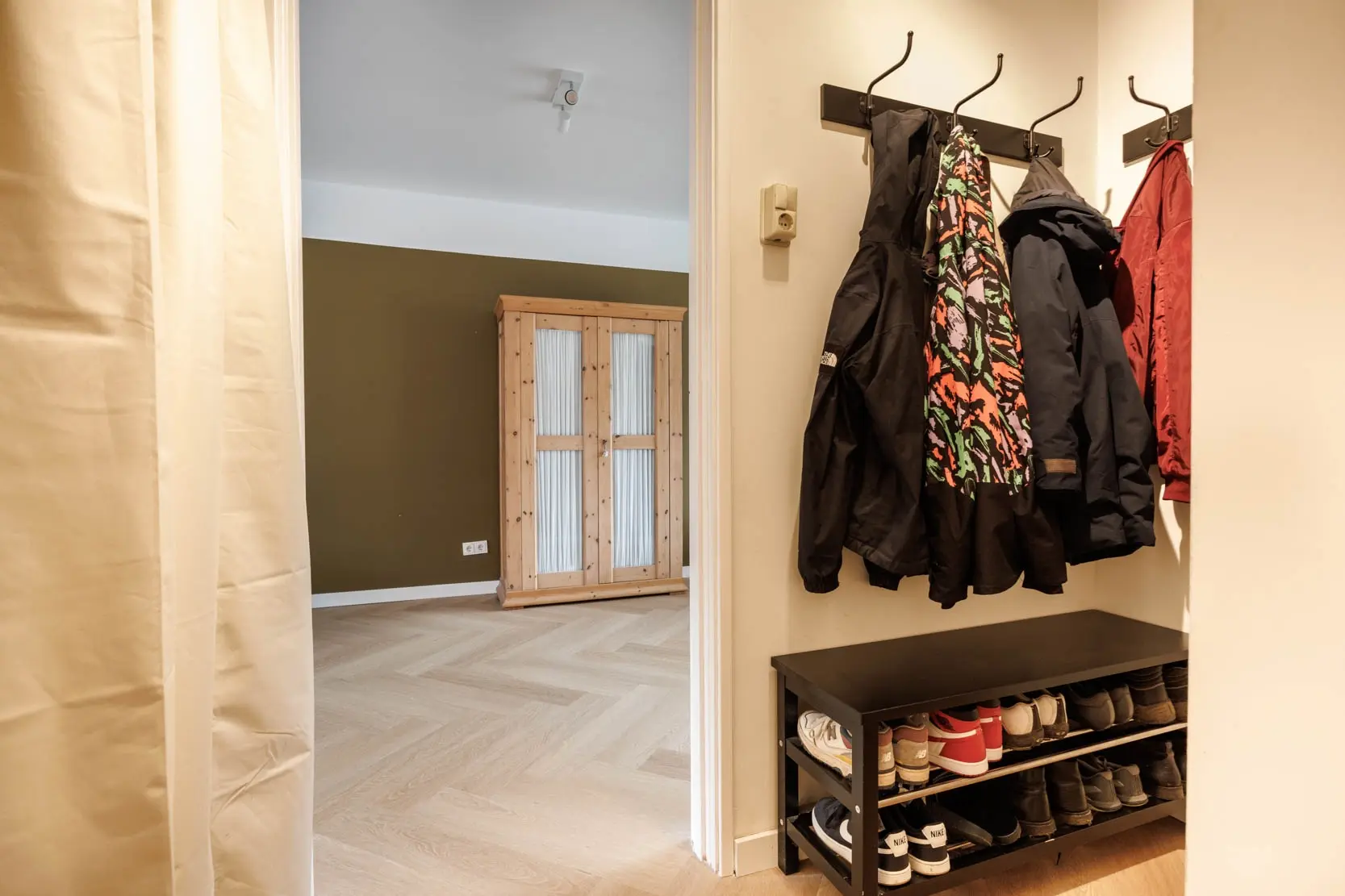 Overloop met toegang tot drie slaapkamers en de badkamer. Aan de voorzijde van de woning treft men twee slaapkamers waarvan één slaapkamer is voorzien van een handige inbouwkast. De derde slaapkamer bevindt zich aan de achterzijde van de woning en is tevens voorzien van een inbouwkast. De moderne badkamer uit 2022 is voorzien van een inloopdouche, een wastafelmeubel en een handdoekradiator.