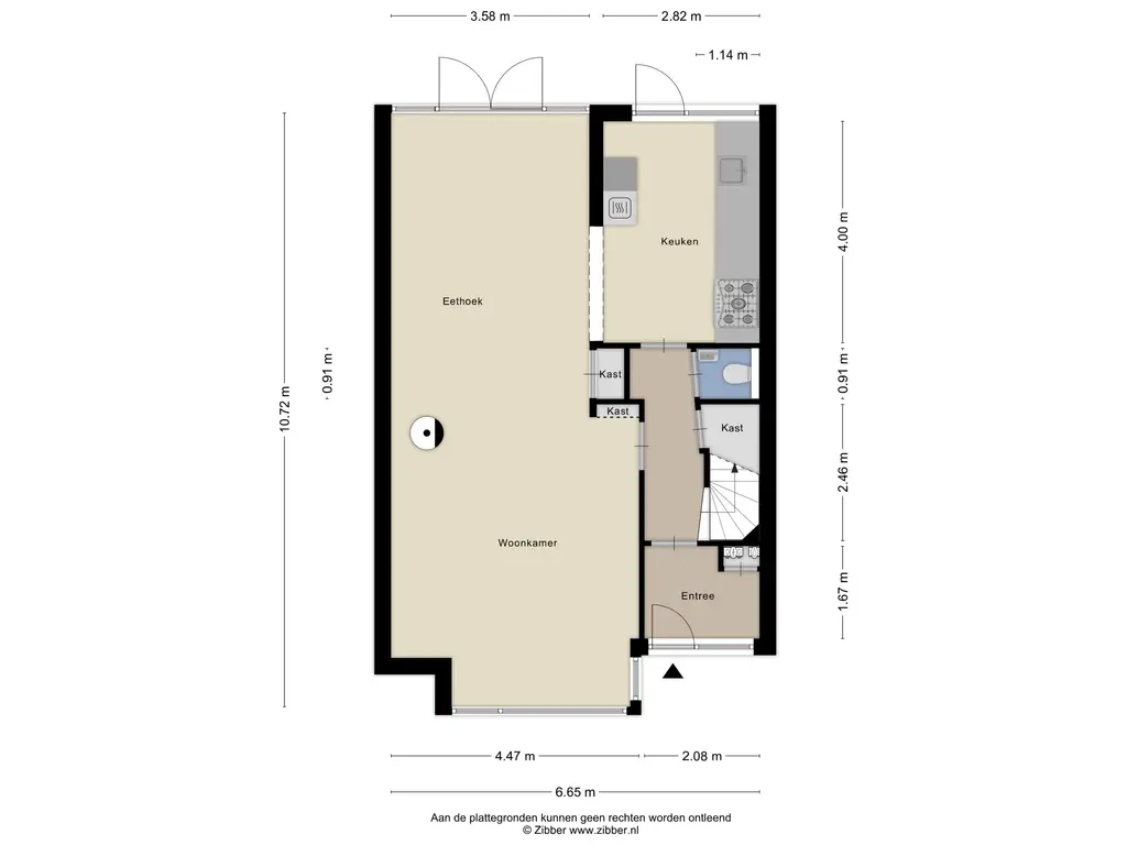 Attractive front garden and a stylish entrance. Through the vestibule with meter cupboard you enter the hallway, which provides access to the living room, the modern toilet with washbasin, the kitchen, a storage cupboard under the stairs, and the staircase to the first floor.
