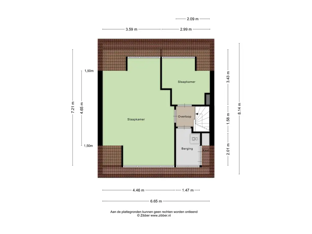 Op de tweede verdieping zorgen grote dakkapellen aan zowel de voor- als achterzijde voor twee ruime en lichte kamers, waarvan één kamer zich uitstrekt over de gehele lengte van de woning. Hierdoor ontstaat een bijzonder royale ruimte met veel daglicht en flexibiliteit in gebruik. Daarnaast is er een berging waarin de wasmachine- en drogeropstelling is geplaatst. Desgewenst kan hier eventueel een tweede badkamer worden gerealiseerd.
