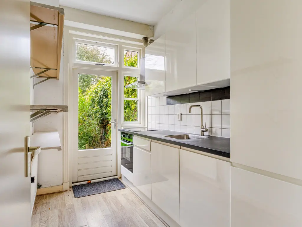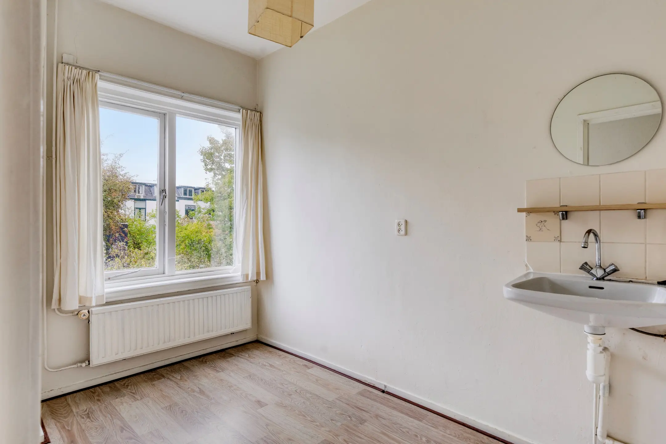 In een rustige, karakteristieke straat in de Vogelwijk van Leiden staat deze charmante jaren ’20 eengezinswoning met een woonoppervlakte van maar liefst 148 m². De woning heeft een sfeervol ingebouwd balkon aan de voorzijde. Op de begane grond zijn en suitedeuren en nog een aantal paneeldeuren aanwezig, die samen met de hoge plafonds een authentiek karakter geven aan de open ruimte. Aan de achterzijde bevindt zich een gesloten moderne keuken uit 2023. De zolderverdieping met eigen keuken en badkamer is ideaal als zelfstandig appartement, kantoor of logeerruimte.