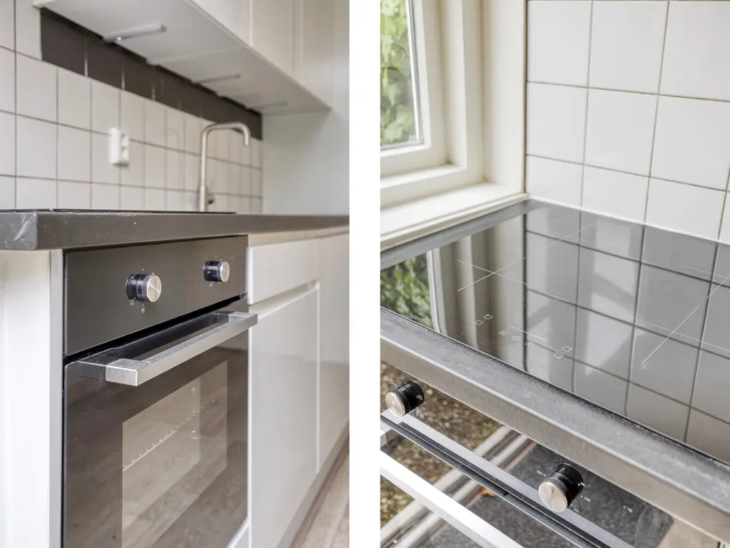 De nieuwe keuken (2023) bevindt zich aan de achterzijde en is voorzien van moderne inbouwapparatuur, voldoende kastruimte, inductie kookplaat, oven, vaatwasser en koel/vries combinatie.
